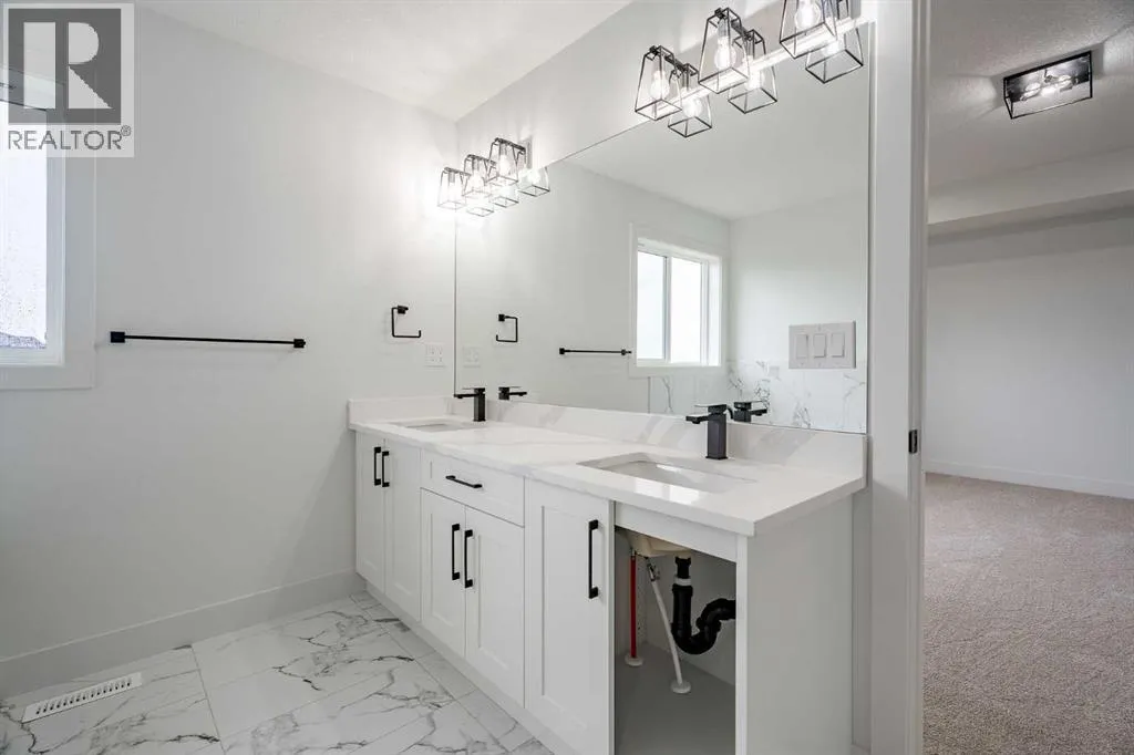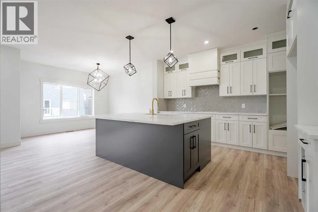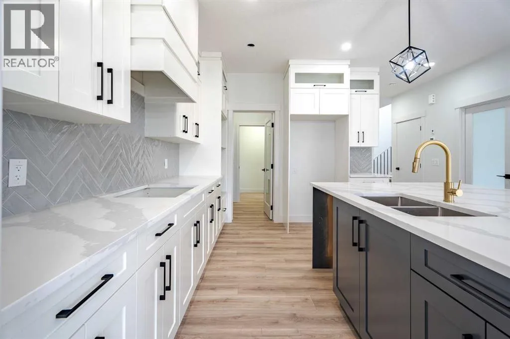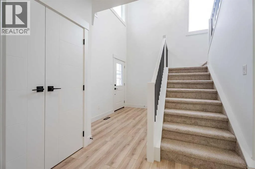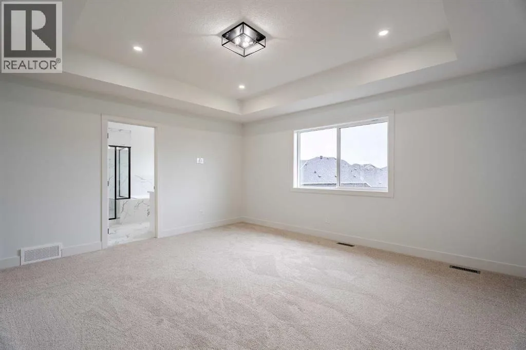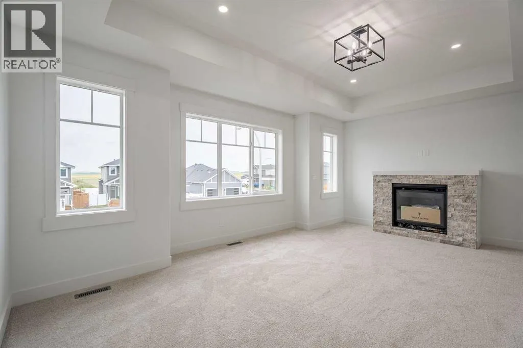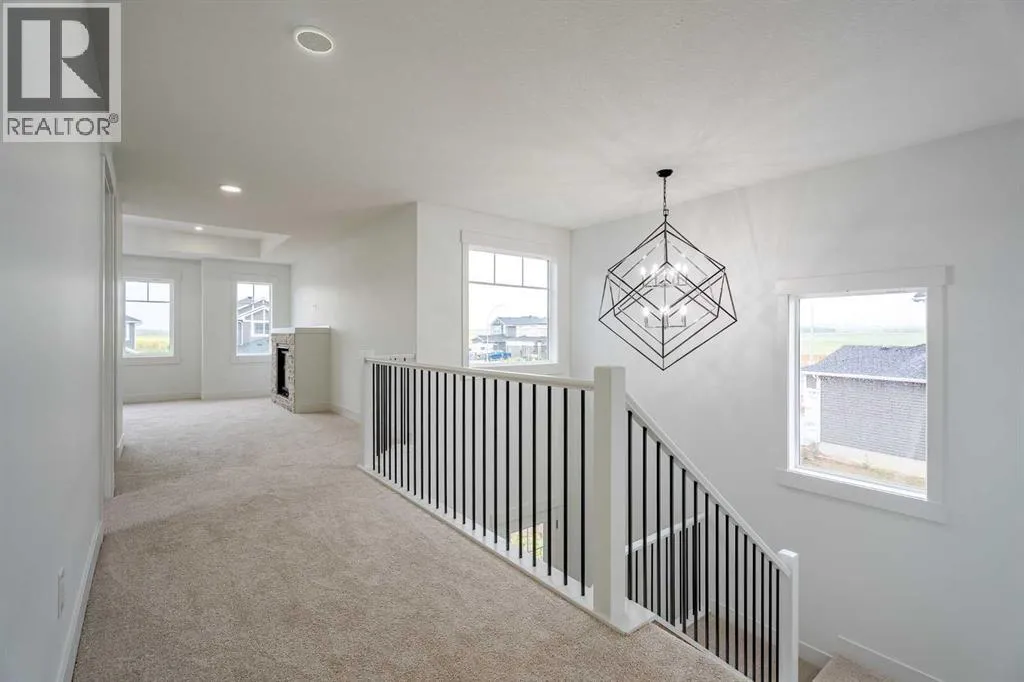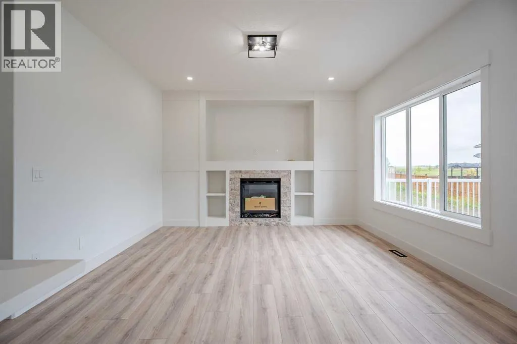 Quick Possession and Brand New with Triple Garage on a spacious lot with 51' frontage and 120' deep. Quick possession is available, and a Fall Special allows buyers to inquire about discount pricing to add a complete basement development. 2,372 sq.ft. two story with attached triple garage (28' x 23') and side access walk-up basement. Bright, open plan with spacious main level dining nook, kitchen with island and walk-through pantry (wood shelving) to spacious mud room (wood bench + shelves), family room with built-in shelves and fireplace, private Work From Home Office, two piece bath and spacious open cathedral front entry. Three bedrooms on the upper level including 15'9" x 14' Primary suite with raised tray ceiling and large walk-in closet (wood shelving), 5 piece Ensuite, bonus room with raised tray ceiling and fireplace, laundry room and 4 piece main bath. Bright undeveloped side access basement has high efficiency mechanical, roughed-in bath plumbing, and large windows for lots of natural light. Will be nicely appointed with ceiling height cabinets, quartz counter tops, upgraded lighting, vinyl plank, tile + carpet flooring, wood shelving in all closets, upgraded exterior and stonework. Includes GST (rebate to builder), new home warranty, rear deck with vinyl cover, front sod + tree, and $5,000 appliance allowance. Great family community with school, park and pond nearby, recreation facilities, and a quick commute to Airdrie, Balzac Mall, Calgary, or hospital nearby at Didsbury. A little drive, a lot of savings! (id:27476)