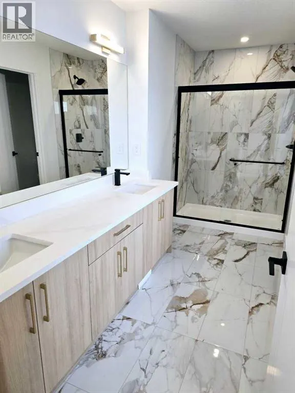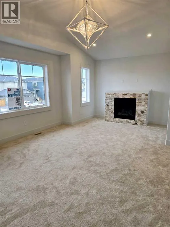BRAND NEW, built in 2025, this stunning two-storey offers 2,413 sq.ft. of living space, a triple garage (28' x 26'6"), and a spacious 135â south-backing lot with 44â frontage. Quick possession is available, and a Fall Special allows buyers to inquire about discount pricing to add a complete basement development. The bright, open main floor features a dining nook, modern kitchen with island, walk-through pantry (wood shelving), and a spacious mud room with bench and shelves. The family room includes built-in shelving and a cozy fireplace, while a private work-from-home office, two-piece bath, and open cathedral entry complete the main level. Upstairs hosts three bedrooms, including a generous 15' x 13'6" primary suite with tray ceiling, large walk-in closet (wood shelving), and a luxurious 5-piece ensuite with double vanity. A vaulted bonus room with fireplace, laundry room, and 4-piece main bath provide extra convenience. The bright, side-access walk-up basement is undeveloped with high-efficiency mechanical, roughed-in bath plumbing, and large windows for natural light. Quality finishes include ceiling-height cabinets, quartz countertops, upgraded lighting, vinyl plank, tile and carpet flooring, wood shelving in closets, and exterior stonework. Added value includes GST (rebate to seller), new home warranty, a rear deck (8' x 16') with vinyl cover, front sod and tree, and a $5,000 appliance allowance. Located in the family-friendly Scarlett Ranch community, just steps from schools, parks, and a pond, with quick access to Airdrie, Calgary, CrossIron Mills, and Didsbury Hospitalâa little drive, a lot of savings! (id:27476)