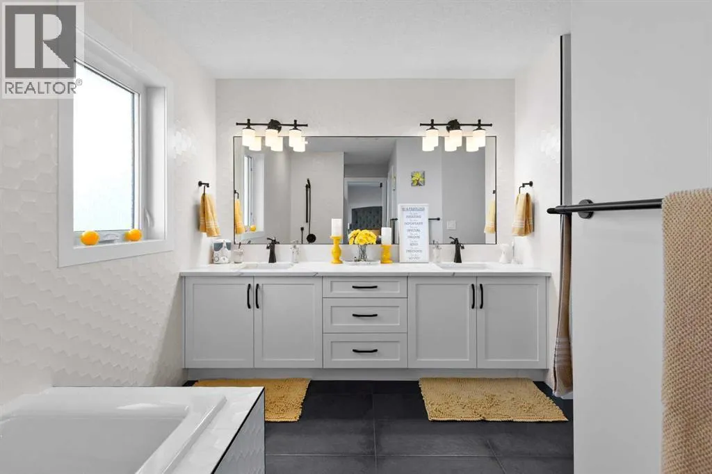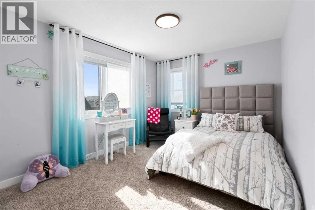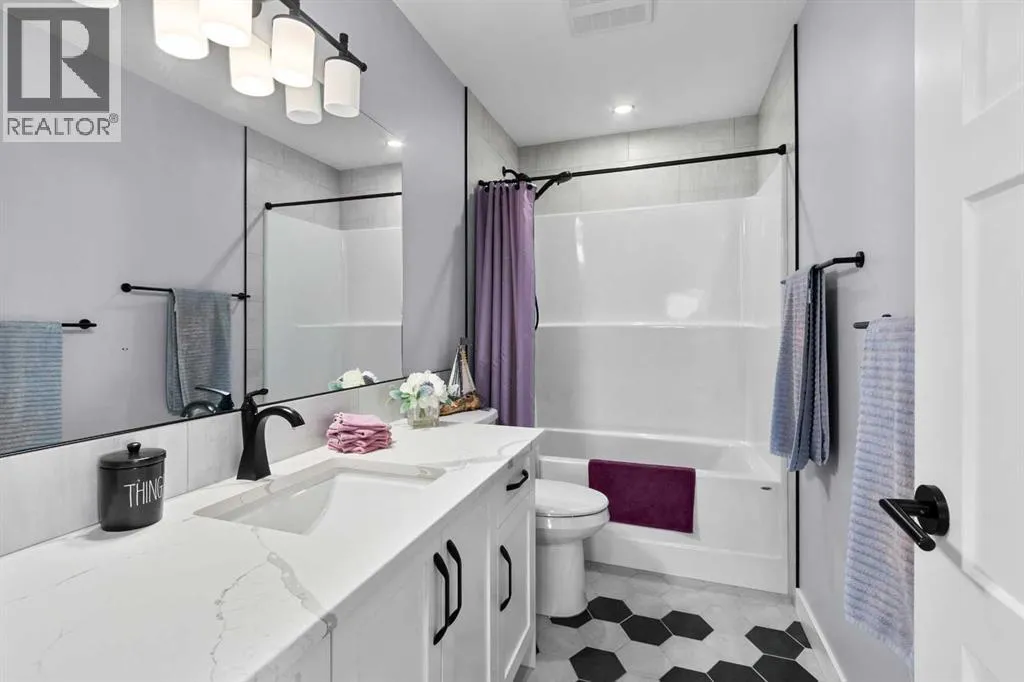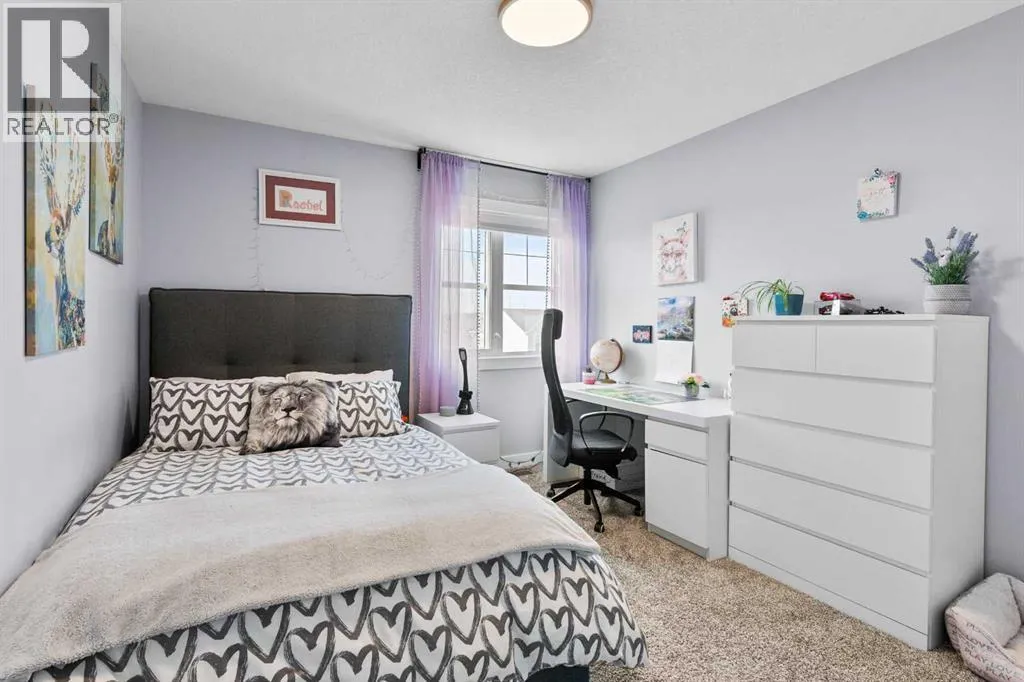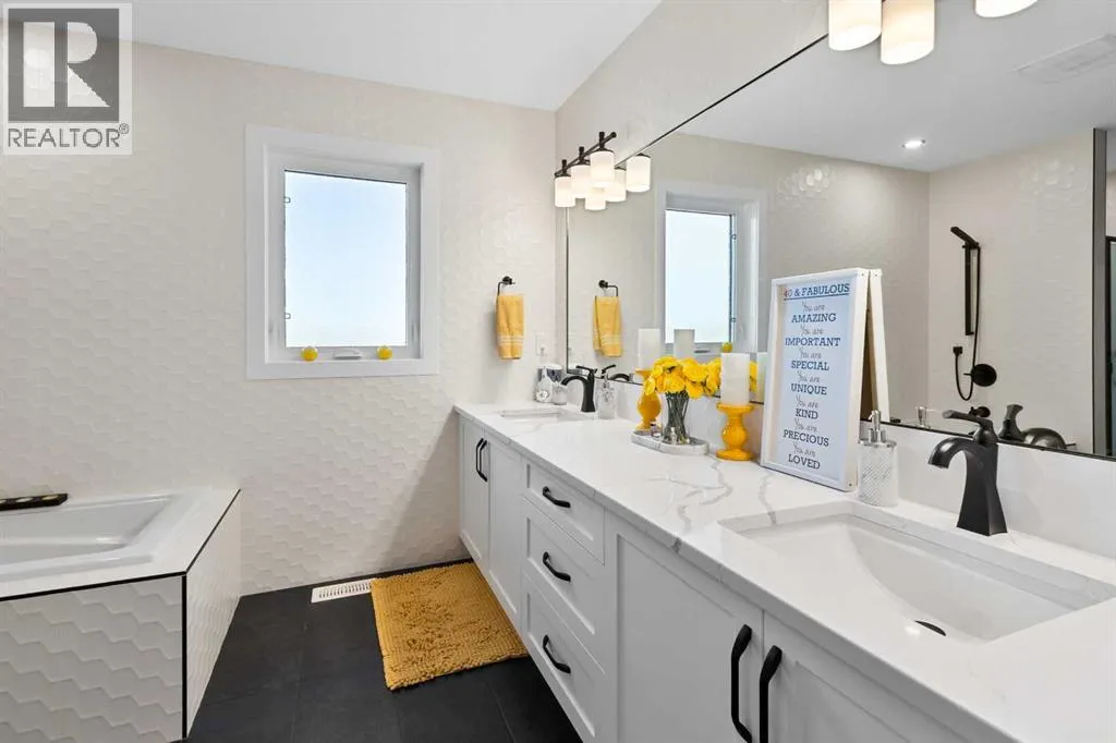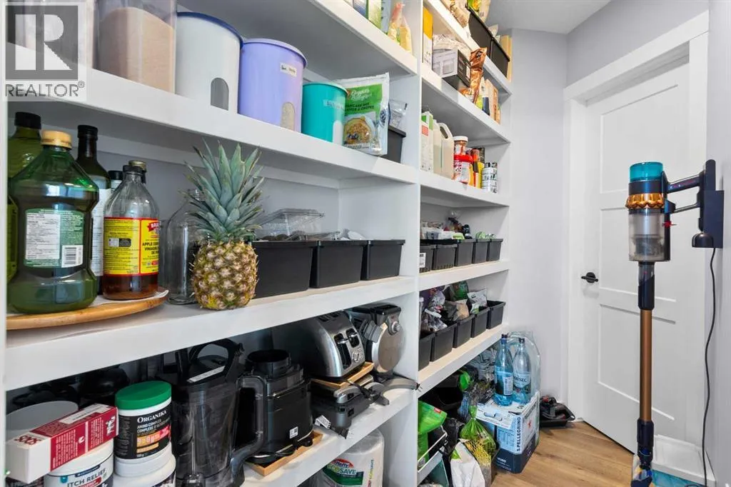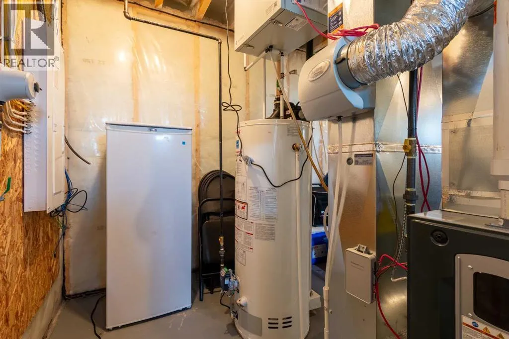This spotless home was built by a local reputable builder (Anchored Custom Homes) and it backs the Nature Space in Carstairs. It has many added features such as extra windows, special trim, oversized island, wood shelves, 9 ft basement and much more that is evident when you walk through. The front entry is spacious with its full height ceiling. Go next Into the great room which has vaulted ceilings and vinyl plank flooring. The generous sized living room has a gas fireplace with windows on each side and a brick feature wall. The bright white kitchen has a large island with quartz counters and lots of counter space and cabinets. The microwave is tucked under the counter and the pantry is a walk thru one with wood shelves. The dining room is large enough for a big table and has a big window which faces the back yard and the view of the park/nature space WITHOUT ANY NEIGHBORS BEHIND. The door from the dining area leads to the covered back deck and the partially fenced yard. There is an area with gravel that is ready for a patio level. Back inside on the main floor is the powder room with quartz counter, a laundry room and the entry to the garage. The 23x24 ft garage is insulated, drywalled and painted and has an infrared heater. It easily fits 2 vehicles. Upstairs you will find a large primary bedroom with ensuite which has double vanities and a separate shower as well as soaker tub. The walk in closet is large. There are 2 more bedrooms on this level with nice windows and great closets. The main bathroom is large. The basement is ready for your development ideas with large windows and 9 ft ceilings. There is an alley on the west side of the house which makes RV parking easy. Make an appointment today to see this special home. You will not be disappointed. (id:27476)