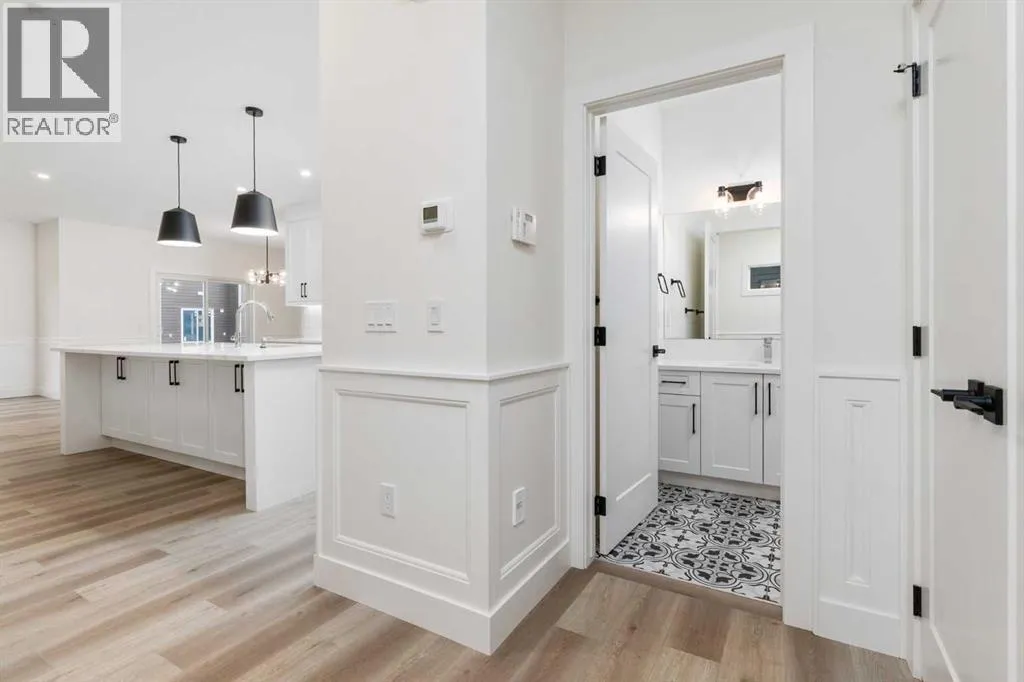 Welcome to your new home! This exceptional, brand new, detached home located in Mandalay Estates, Carstairs is situated close to downtown and recreational spaces such as the Carstairs Community Golf Course, Memorial Arena, and Campground. This stunning two-storey property is also just a short distance from Hugh Sutherland School and a future retail development . Meticulously designed by Marygold Homes, this home offers a capacious, open floor plan, with 2392 square-feet of living space, 3 bedrooms, and 2.5 bathrooms making it a flawless fit for families looking for a pleasant everyday living space. Luxury vinyl plank flooring on the main floor, and plush carpet on the upper floor, complemented by large windows that flood the space with natural light throughout give the home a thoughtful, elevated, and elegant touch. The hardie-board exterior and an attached triple car garage add practical value to the property's striking appearance. The main floor is accessible from the spacious garage via the mudroom fully equipped with custom-built storage space. The mudroom leads directly into the kitchen which features a stunning walk-in pantry, large central island with bar-style seating, stainless steel appliances, and soft-close hardware throughout. The full-height shaker cabinetry and quartz countertop combo provide both sufficient storage and an exquisitely sophisticated aesthetic. Adjoining the urbane kitchen is an inviting dining area with large patio doors that not only bring in an abundant amount of natural light, but also lead outside to the sizable treated-wood deck and backyard. A capacious and welcoming living room is adjacent to the dining room, complete with a mantle and tile-surrounded gas fireplace, perfect for family get-togethers. The in-home office space offers ample room and an elegant glass door for both privacy and productivity. The upper level features three spacious bedrooms, including the master suite complete with oversized windows and an astonishing b uilt-in walk-in closet with custom-shelving and sufficient storage space. The massive 5-pc ensuite features a glass shower, built-in corner soaker tub and vanity with dual sinks. The laundry room, conveniently located on the second floor, comes complete with custom cabinetry. Neighboring this space is a built-in display cabinet and entertainment center as well as a separate built-in desk with custom shelving, a full 4-pc bathroom, and a super-spacious bonus room, ideal for quality family time. The two secondary bedrooms, each with separate built-in closets, complete the upper-level layout. The unfinished basement has rough-ins for a future bathroom - a notable and customizable add-on to suit a growing family's needs. **GST Rebate, if any, shall go to the seller. PLEASE NOTE: Photos used of are of the same/similar layouts or previous projects and are for reference and illustrative purposes only.** (id:27476)