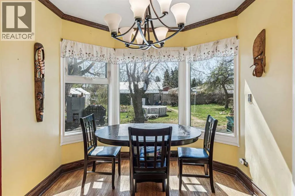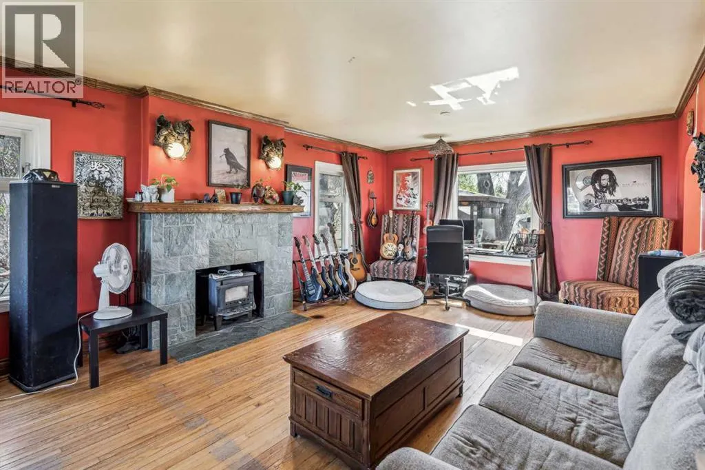 Welcome to the charming town of Carstairs, where small town warmth meets timeless character. Step into this beautifully preserved character home that radiates elegance and comfort from the moment you walk in. The main floor invites you to relax in a cozy, sun-filled living room featuring a classic wood stove - perfect for those chilly days. The spacious dining area is bathed in natural light, making every meal feel like a special occasion. The kitchen has been tastefully updated with modern appliances blending convenience with character. Take your time exploring this inviting home, where every corner tells a story and charm is found in every detail. Upstairs, you'll find two generously sized bedrooms and a large four piece bath. The fully finished basement expands your living space with a comfortable family room, a quiet den, a well equipped laundry room, and another full bathroom featuring a luxurious jetted tub for the ultimate relaxation. And just wait until you step outside - the yard is nothing short of amazing. A single attached garage and a long driveway offer plenty of parking, including space for your RV. The backyard is a private oasis: enjoy evenings around a stunning firepit, relax under a picturesque gazebo, or cultivate your dream garden. There's ample room for the children to play freely, and still plenty of space to entertain. This home truly has it all - space, character, and a peaceful lifestyle - and needs to be seen in person to appreciate. Upgrades include: new exterior paint, R40 insulation and rock work, triple glazed windows, on demand hot water, 2006 a tin roof was installed over the shingles, electrical wiring is all upgraded and there's a 60amp line going to the shop, in floor heat in downstairs bathroom, rubber lining under cork flooring, sump pump in basement, 2020 removed old cast iron drain and replaced with pvc, sewer lifting system in basement. All plumbing was put below concrete and re-slabbed. Foundation sealed befor e walls in basement were done. (id:27476)
