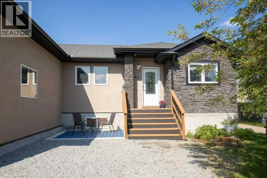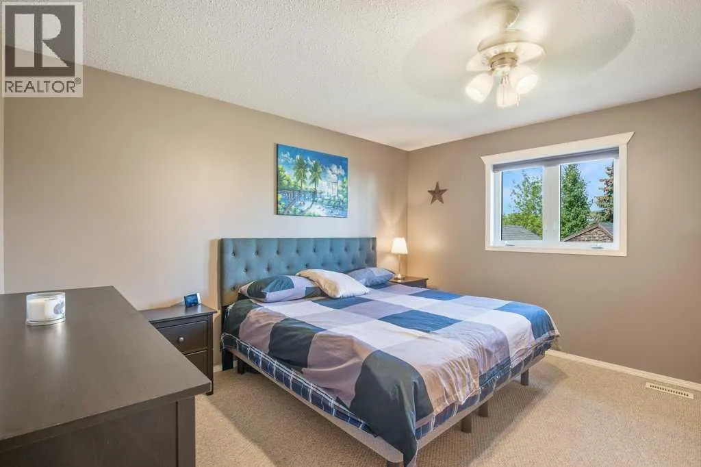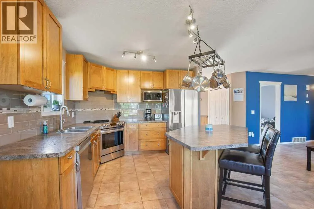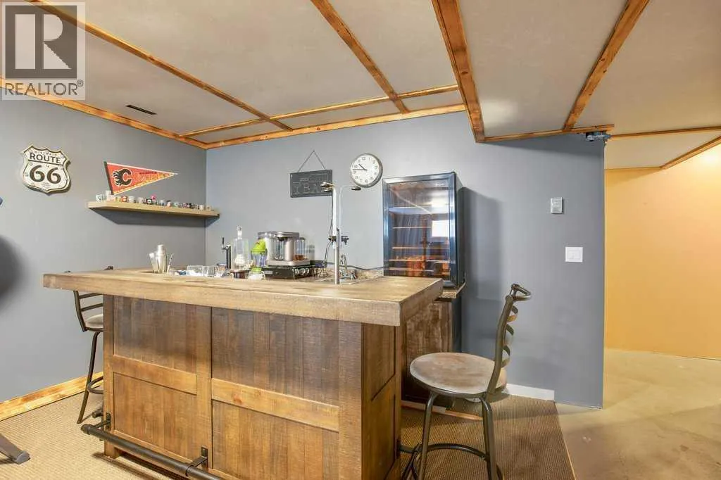 Carstairs is a lovely community offering family friendly neighborhoods and easy access to Calgary. This beautiful bungalow is nestled on a quaint and quiet street. Bordering on a walking path and backing onto a peaceful green space, and nature park close by with walking trails and fenced off leash dog park all within walking distance from the door. The handsome exterior features recently updated stucco and stonework. The double attached garage provides plenty of indoor parking with the bonus of in floor heating. Once inside, you will appreciate the open floor plan and natural light streaming thru several large windows. Cuddle up around the gas fireplace and relax in the cozy comfort of the living room, an additional upgrade of a new energy efficient boiler was installed October 2025 with full warranty transferable to the new owner upon sale. The kitchen offers a large island for additional seating, updated stainless steel appliances, and warm wood cabinetry complimented by a crisp new backsplash. Dine inside or step thru the garden door to enjoy the expansive deck. The backyard is fully fenced for the kids and pets to safely play. The spacious primary bedroom boasts a 3-piece ensuite and wonderful walk-in closet. Two more bedrooms, a 3-piece bathroom, and the luxury of main level laundry complete this floor plan. The basement is partially finished and offers the comfort of in floor heating. The family room is fantastic for entertaining, adjacent to the attractive bar area. Two additional bedrooms and a 3-piece bathroom provide a perfect space for company or older children. With room for the entire family, this home has so much to offer. Schedule your showing today! (id:27476)