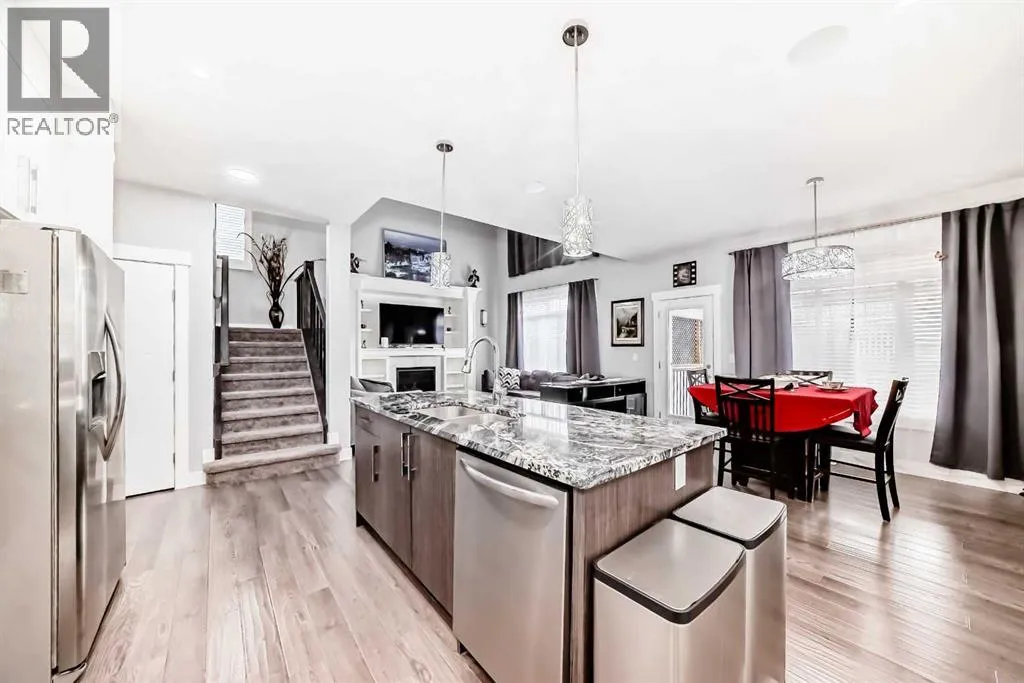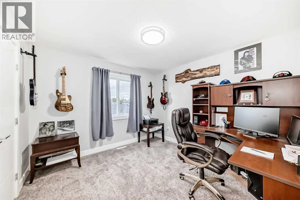 WELCOME TO YOUR DREAM HOME IN THE HEART OF CARSTAIRS! ... Move in For Christmas! This home is Tucked away in a quiet cul-de-sac. An exquisite 2-storey residence offering the perfect blend of luxury, comfort, and convenience. Just minutes from the golf course and downtown shopping. This beautifully designed home is ideal for families and professionals alike. Step inside to discover 9-foot knockdown ceilings and rich laminate flooring throughout the main level. Soaring 18-foot ceilings and expansive Low-E vinyl windows flood the space with natural light, creating an airy and inviting atmosphere. The high-end kitchen is a showstopper, featuring 42" high-gloss cabinets, granite countertops, stainless steel appliances, and a massive island, perfect for casual meals or entertaining. Enjoy cozy winter evenings by the fireplace in the spacious living room, complete with a stunning built-insurround with tile and contemporary shelving. This home boasts the addition of central air conditioning to keep you cool on all those hot summer nights. Enhanced with built-in kitchen and primary bedroom ceiling speakers roughed in for your future hidden sound system. French doors lead to a versatile main floor office/extra bedroom, offering flexibility for your lifestyle. Upstairs, the luxurious primary suite boasts a spa-like 5-piece ensuite with granite counters, a jetted tub, and a tiled shower. Two additional bedrooms, a full bathroom, and a wonderful bonus room for your extra large screen tv to provide a special space for family living, movie nights, or playtime. Step outside into your maintenance-free backyard retreat, featuring a pergola-covered deck, a separate gazebo for quiet getaways, and a cozy corner swing, all surrounded by artificial grass, decorative stones, and paving stones for easy upkeep. There's extra storage space and a dog run along the side yard and a separate entrance to the basement, offering even more flexibility. Car enthusiasts, hobbyists, or fitness l overs will be thrilled by the triple car garage, a true stunner with room for vehicles, tools, and exercise equipment. Located within walking distance to schools, parks, medical offices, the library, and Carstairs' finest restaurants. This home truly has it all. And with Calgary just 30 minutes away, you'll enjoy the perfect balance of small-town charm and city convenience. DON'T MISS YOUR CHANCE TO OWN THIS STUNNING HOME! SCHEDULE YOUR SHOWING TODAY. (id:27476)
