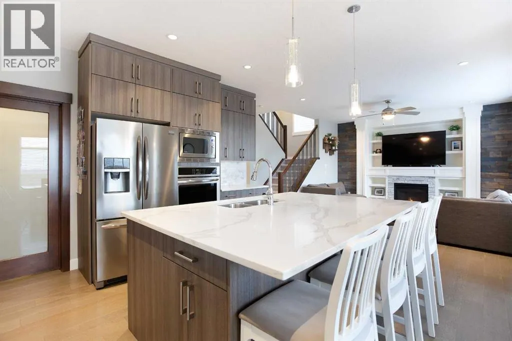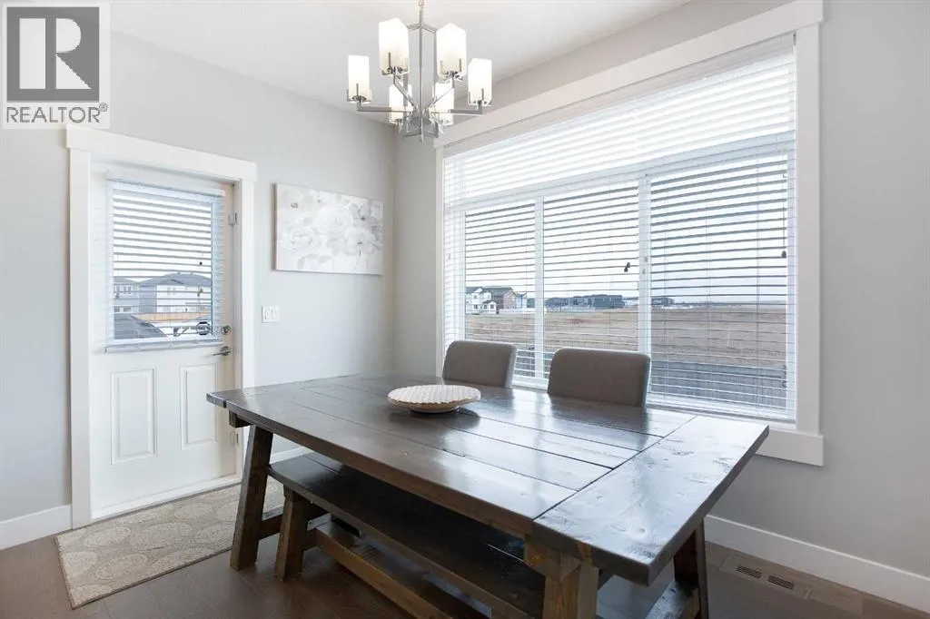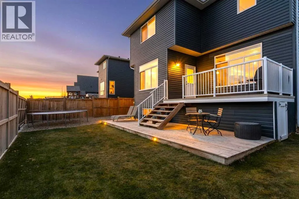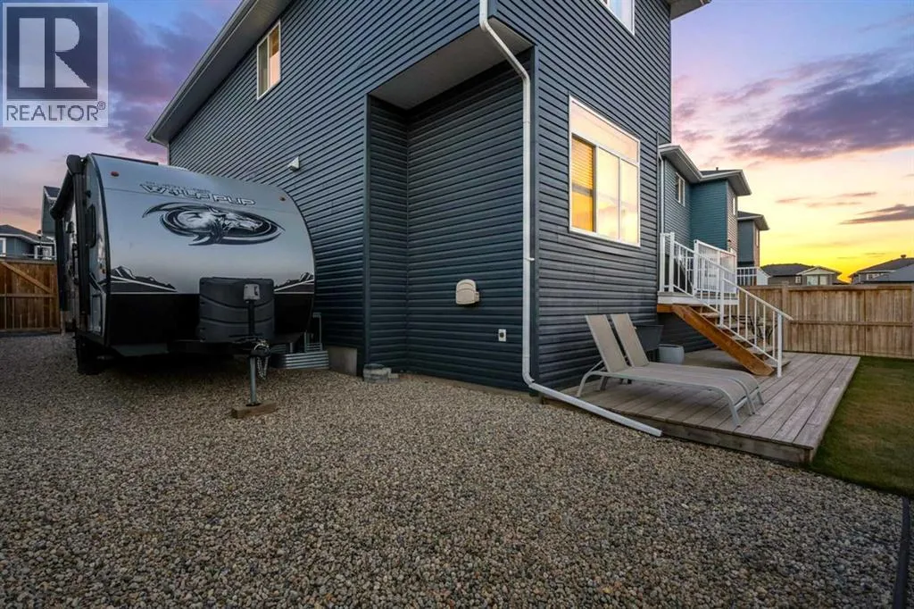 This beautifully cared-for family home blends small-town comfort with thoughtful modern design, offering the perfect mix of warmth, functionality, and space for growing families. Located on a quiet street just steps from the local elementary school and playgrounds, it provides a true sense of community while still giving you privacy and convenience.The main level is bright and inviting, featuring an open-concept layout thatâs ideal for everyday living. A spacious front office sits just off the entrance â perfect for anyone working from home or needing a quiet study area â and a convenient half bathroom adds everyday practicality. The living room feels warm and welcoming with large windows and a cozy gas fireplace that anchors the space.At the heart of the home is the stunning kitchen, complete with full-height cabinetry, granite countertops, stainless steel appliances, and a large central island that makes both meal prep and entertaining a breeze. The walk-through pantry connects directly to the mudroom and garage, making it easy to bring in groceries and keep things organized. The dining nook opens onto the rear deck, creating a natural flow between indoor and outdoor living spaces.Upstairs, youâll find three generous bedrooms, including a beautiful primary suite with a walk-in closet and elegant ensuite bathroom. The front-facing bonus room offers extra living space â perfect for family movie nights, a playroom, or a relaxing retreat away from the main floor. An additional full bathroom and upper laundry room complete this level with convenience in mind.The basement remains undeveloped, giving you the flexibility to create your own ideal space â whether thatâs a home gym, guest suite, or media room in the future.Outside, the fully fenced backyard is private and well-kept, featuring an RV gate and gravel pad for extra parking or recreational use. The rear deck provides a great spot for summer barbecues and family gatherings, while the yard offers plenty of roo m for kids or pets to play.Car lovers and hobbyists will appreciate the oversized triple car garage â finished, heated, and offering plenty of room for vehicles, tools, and storage. The extended driveway provides even more parking space for guests or larger vehicles.This home has been meticulously cared for and thoughtfully designed for modern family living. From its beautiful finishes to its practical layout, every element offers a sense of comfort and quality. With a quiet location, great curb appeal, and a backyard built for both relaxation and functionality, this property delivers the best of small-town living with all the modern comforts you could want (id:27476)