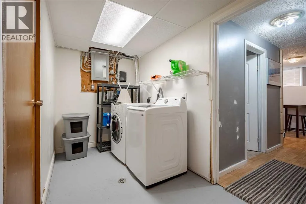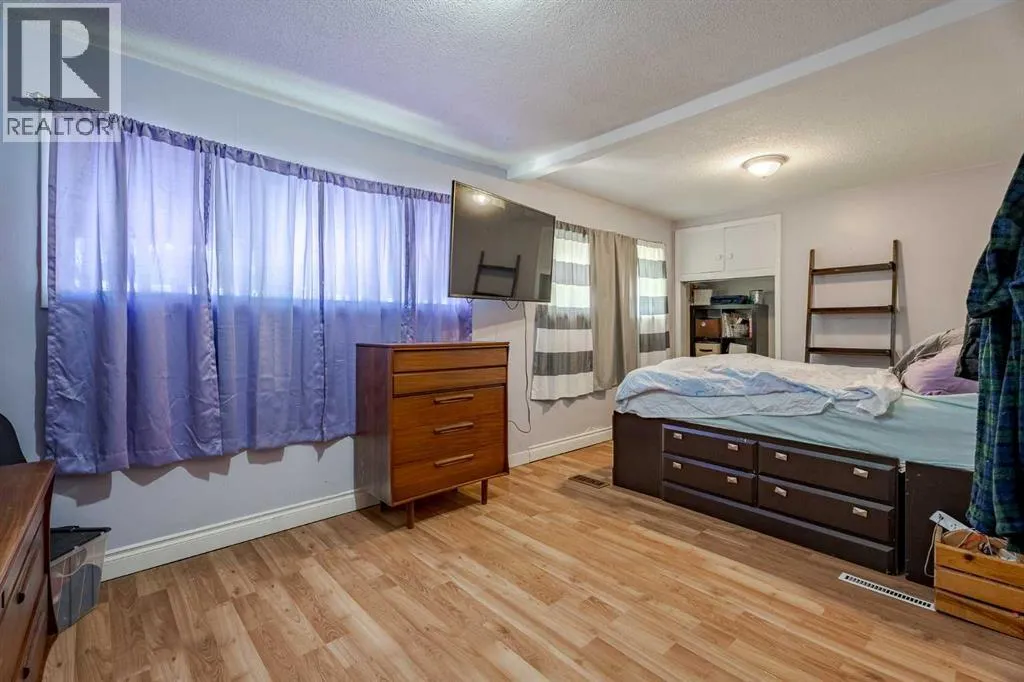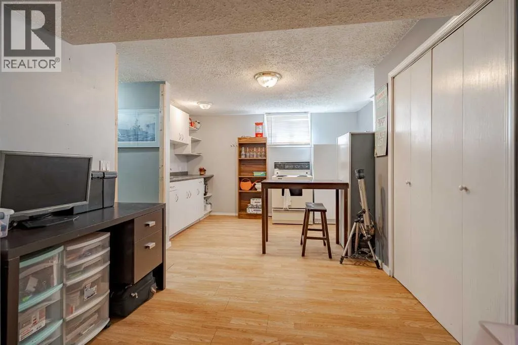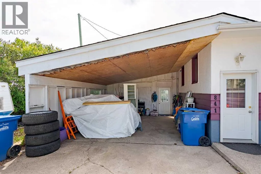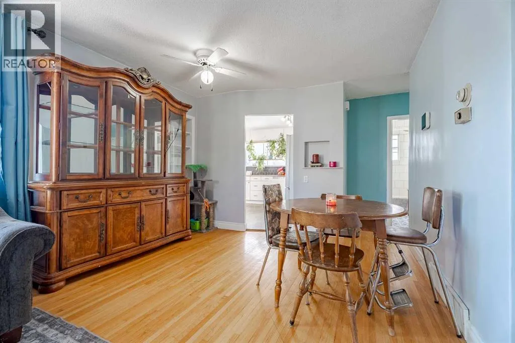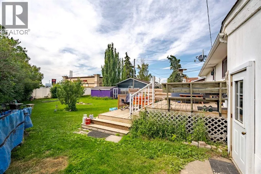 Welcome to this charming BUNGALOW on a SPACIOUS CORNER LOT â full of character and ready for new owners! Offering 3 bedrooms (can be easily converted back by the buyer to offer 4) and 2 full bathrooms with a FINISHED BASEMENT. It's a wonderful blend of character, function, and space and at a great price! Step inside to find a welcoming boot room, a bright and sunny living area, and a roomy kitchen. Downstairs, the fully developed basement offers incredible versatility ideal for extended guests or family. It includes a kitchenette, a third bedroom, another full bathroom, a spacious rec area for movie or game nights, laundry space, and even a small workshop for hobbies or storage. Youâll also love the touches of 1950s charm that still shine throughout this well-loved home. Outdoors, you'll notice the large lot at roughly 0.34 ACRES making it easy to accommodate your future plans and summer BBQs. Vehicle and toy enthusiasts will appreciate the abundant parking options â including a covered carport, side yard parking, and an oversized driveway. Location provides easy access to the 2A (potential business use?) and is close to shopping, restaurants, schools and is just a short drive to the Carstairs Golf Course. (id:27476)