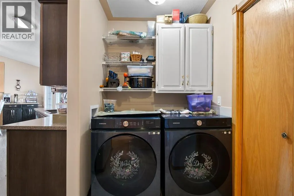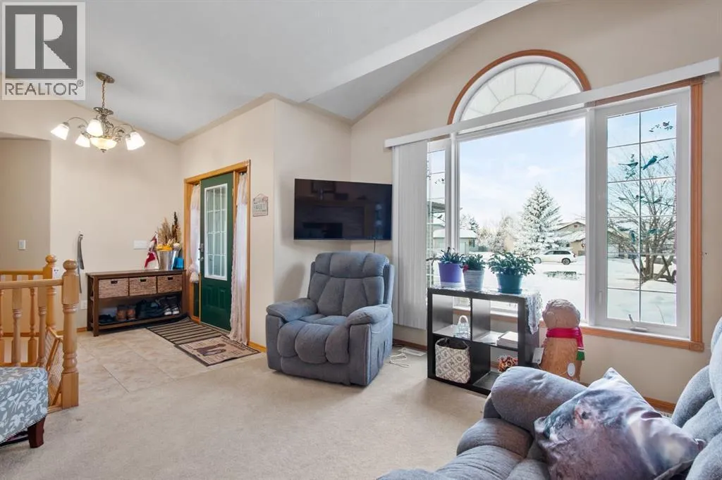 Welcome to 107 Monica Bay, a well cared for 4-bedroom bungalow tucked away on a large lot in a quiet cul de sac, complete with two garages! From the covered front porch, step into a warm and inviting living room centred around a wood burning fireplace with a maple mantle, creating a cozy focal point for everyday living.The open and functional kitchen is designed for both cooking and connection, featuring a 5-burner gas stove, a newer stainless steel dishwasher, ample cabinetry, and a full-size refrigerator. The main floor includes a spacious primary bedroom with walk-in closet and private ensuite, a second bedroom ideal for guests or a home office, a 4-piece bathroom with a walk-in tub, and the added convenience of main-floor laundry.The fully developed lower level offers a massive recreation room with built-in desks and storage, two additional bedrooms, and generous storage throughout, making it perfect for families, hobbies, or flexible work-from-home space. Additionally, the Attic insulation has been recently upgraded to R77 equivalent.Outside, the beautifully landscaped backyard is made for relaxation and entertaining, featuring a covered composite deck with gas BBQ hookup, private patio area, and plenty of room to enjoy the outdoors. Car lovers and hobbyists will appreciate the heated 20â x 35â detached garage/workshop with a separate storage room, in addition to the attached garage, offering exceptional parking, storage, and workspace options.Situated in the welcoming community of Carstairs, this home offers small-town charm with schools, parks, and amenities close by, all while being just 40 minutes from Calgary. Whether youâre raising a family, downsizing, or looking for a quieter pace without giving up city access, this property checks all the boxes. (id:27476)