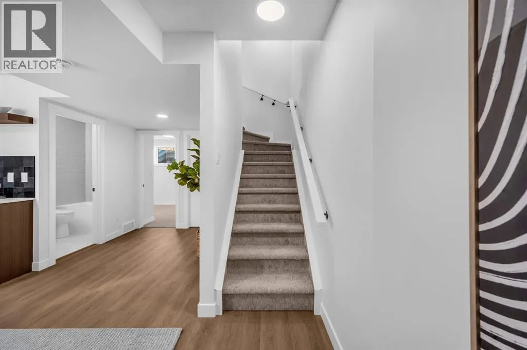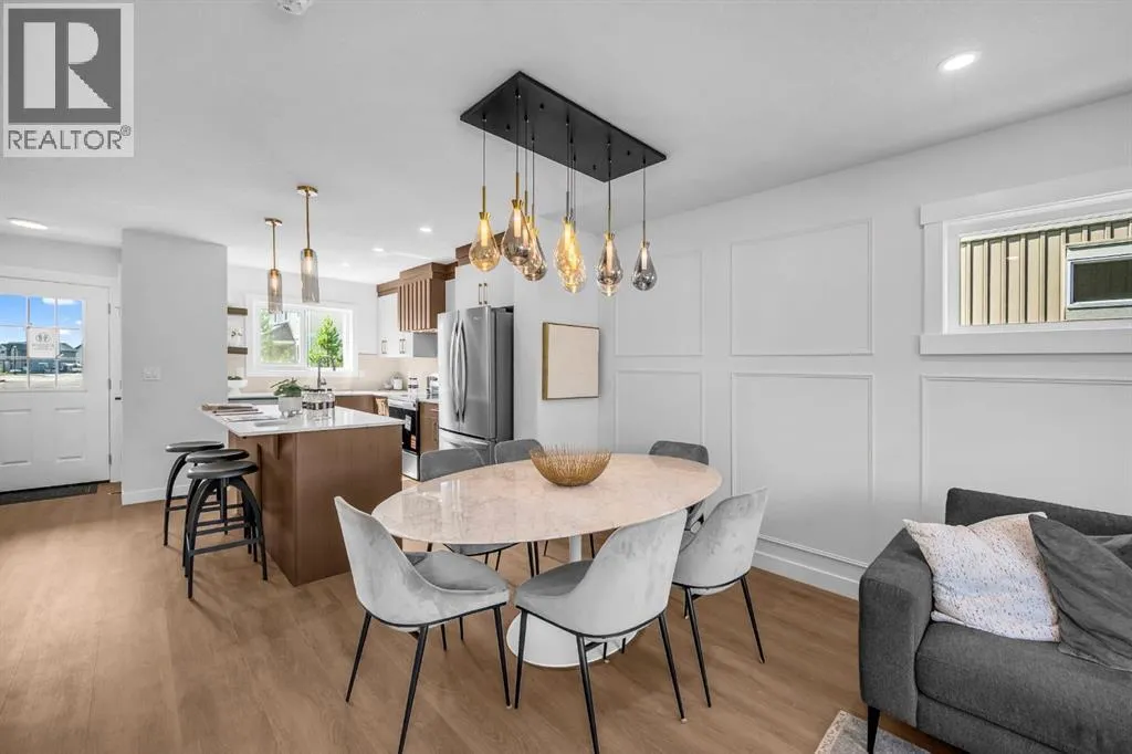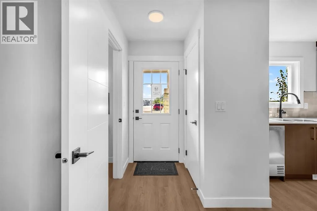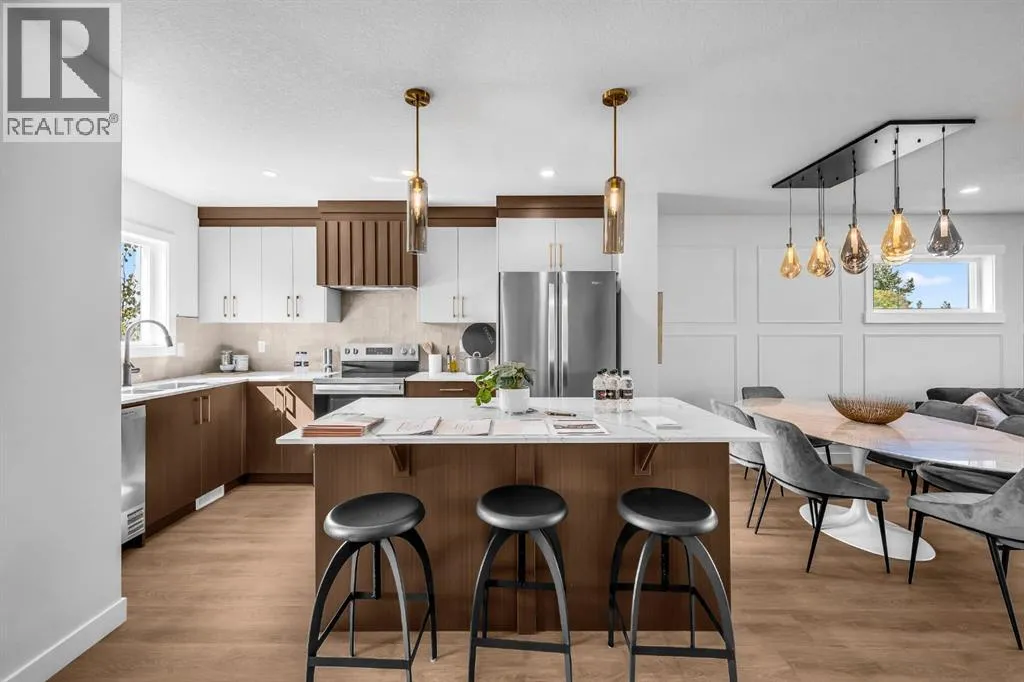 Welcome to 904 Clover Road â a newly built, fully finished END UNIT townhome that perfectly blends modern design, quality craftsmanship, and thoughtful functionality. Offering over 1575 sq ft of fully developed living space, this stunning two-storey features 4 bedrooms and 3.5 bathrooms, making it ideal for young professionals, investors or families seeking extra space and comfort. Step inside and youâll be greeted by 9-foot ceilings, a bright and open layout, and stylish finishes throughout. The main floor features LVP flooring, numerous LED pot lights, fireplace and a beautiful kitchen with quartz countertops, high-gloss cabinetry, subway tile backsplash, and Whirlpool stainless steel appliances. The under mount sink with a pull-spray faucet and a convenient water line to the fridge add both elegance and practicality. Upstairs, youâll find a spacious primary suite complete with its own 3 pc en suite and walk in closet, 2 additional bedrooms, a main 4-piece bathroom, and stacked laundry room for added convenience. All bathrooms feature quartz counters, under mount sinks, ceramic tile floors and walls, and comfort-height toilets. The fully finished basement expands your living space with a cozy recreation area, a custom dry bar with space for a mini bar fridge, an additional bedroom, and a full bathroomâperfect for guests, entertaining, or a home office setup. Additional highlights include a high-efficiency furnace and 50-gallon hot water tank. Outside, the home showcases Smartboard siding, and a decorative fiberglass front entry door. Large private concrete patio equipped with a gas line rough-in for easy summer BBQs This home also includes two assigned parking stalls, and a low-maintenance lifestyle with monthly condo fees of $305.89. This move-in-ready home combines modern design, energy efficiency, and functional living in a peaceful Carstairs community â the perfect place to call home. (id:27476)