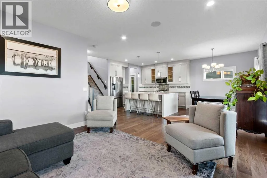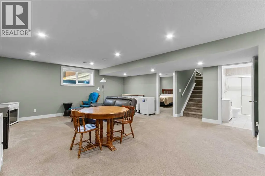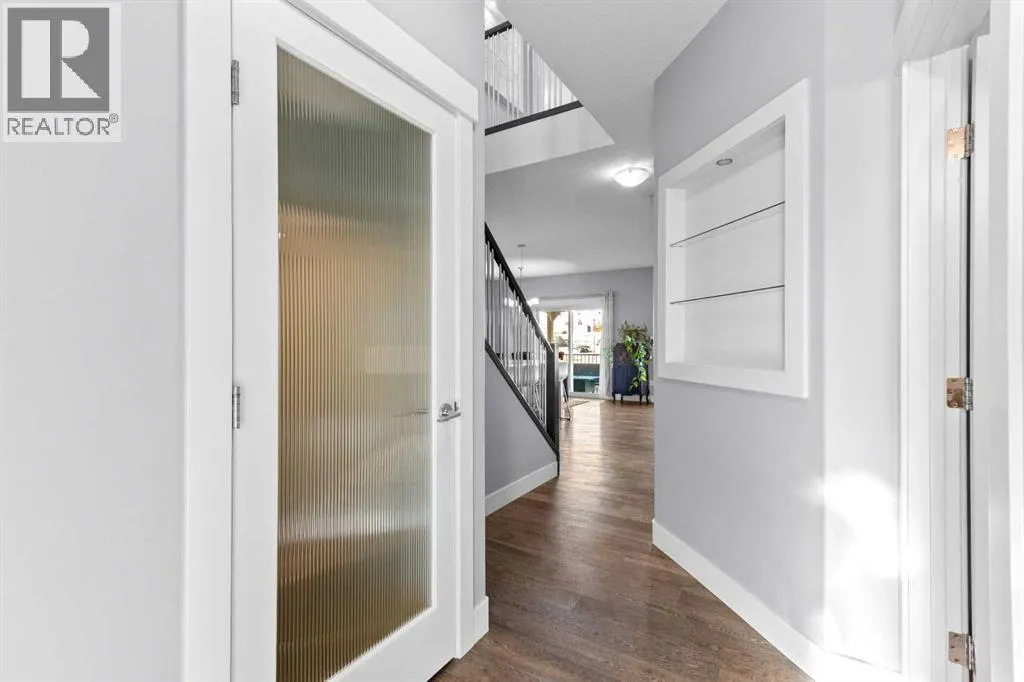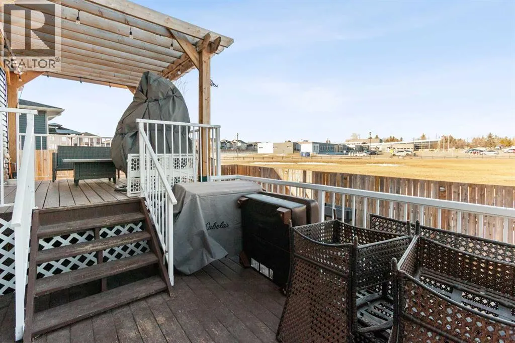 BACK ON THE MARKET DUE TO FINANCING. Welcome to this fully developed, 4 bedroom home backing onto a greenspace, located in the family-friendly community of Carstairs, known for its small-town charm, great schools, and easy access to everyday amenities. A large front porch invites you inside to a spacious foyer, leading into a bright, open-concept main floor. The large living room with a gas fireplace and engineered hardwood floors creates a warm, welcoming space for relaxing or entertaining. The chefâs kitchen offers a generous island with ample storage, gas stove, and a walk-through pantry that connects seamlessly to a large mudroom. The spacious dining area opens onto a private deck where you can enjoy peaceful views of the greenspace behind. A main floor office and 2-piece powder room complete this level. The upper level offers 3 generously sized bedrooms, including 2 large secondary bedrooms perfect for a growing family. You will also appreciate the convenience of upstairs laundry and a spacious bonus room complete with a second gas fireplace. The primary suite is a true retreat, featuring a 5-pc ensuite with a makeup area and a large walk-in closet. The fully developed basement adds even more living space with a very large bedroom, generous family room, and an additional bathroom, ideal for guests or teens. Central air conditioning will ensure summer comfort. Set in a welcoming community and backing onto greenspace, this is a home you will enjoy for years to come. (id:27476)