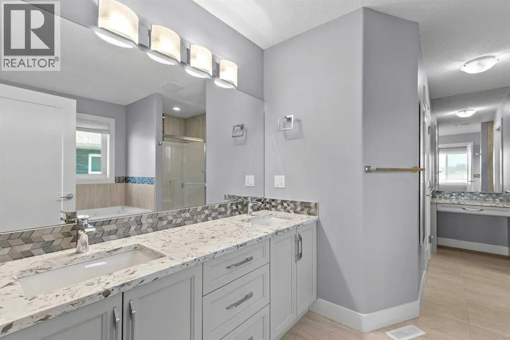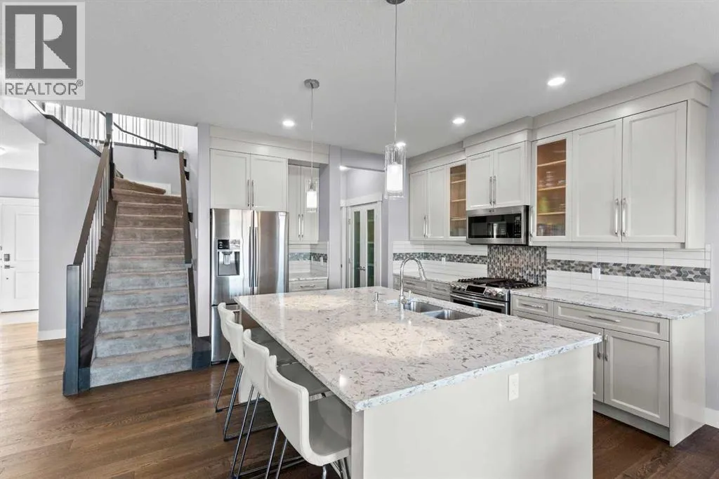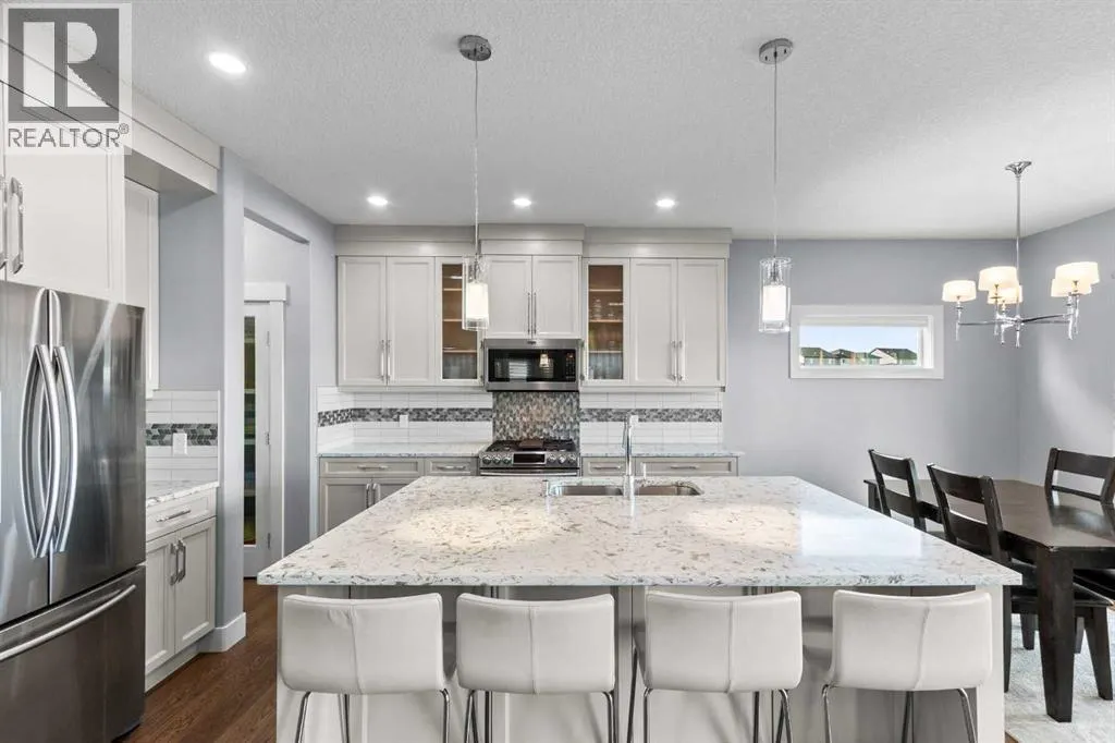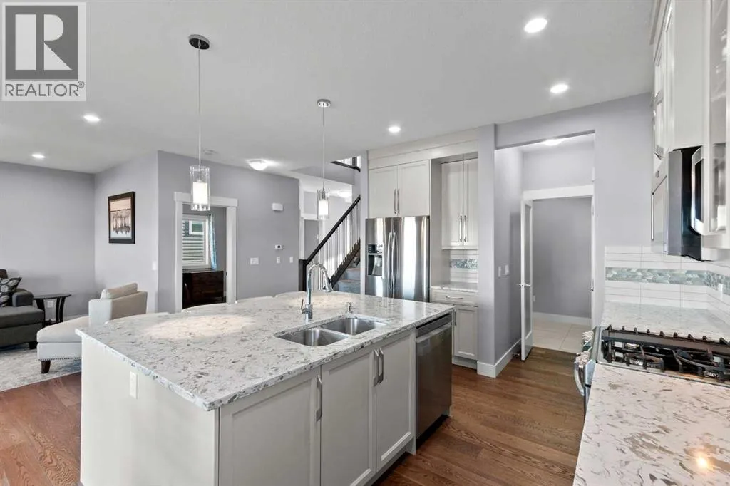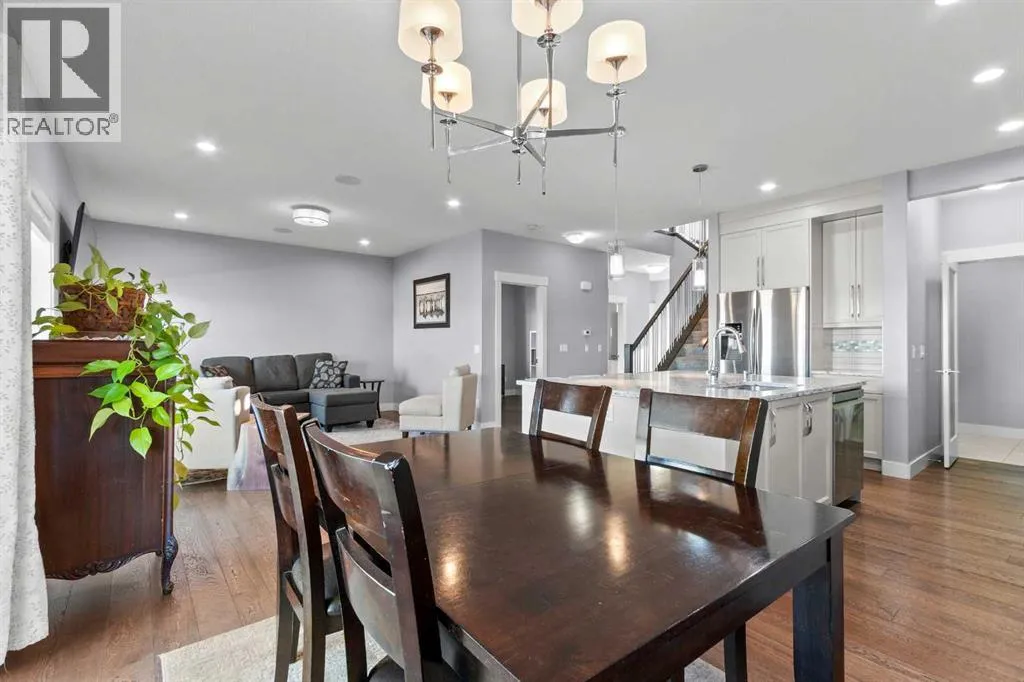 BACK ON THE MARKET DUE TO FINANCING. Welcome to this fully developed, 4 bedroom home backing onto a greenspace, located in the family-friendly community of Carstairs, known for its small-town charm, great schools, and easy access to everyday amenities. A large front porch invites you inside to a spacious foyer, leading into a bright, open-concept main floor. The large living room with a gas fireplace and engineered hardwood floors creates a warm, welcoming space for relaxing or entertaining. The chefâs kitchen offers a generous island with ample storage, gas stove, and a walk-through pantry that connects seamlessly to a large mudroom. The spacious dining area opens onto a private deck where you can enjoy peaceful views of the greenspace behind. A main floor office and 2-piece powder room complete this level. The upper level offers 3 generously sized bedrooms, including 2 large secondary bedrooms perfect for a growing family. You will also appreciate the convenience of upstairs laundry and a spacious bonus room complete with a second gas fireplace. The primary suite is a true retreat, featuring a 5-pc ensuite with a makeup area and a large walk-in closet. The fully developed basement adds even more living space with a very large bedroom, generous family room, and an additional bathroom, ideal for guests or teens. Central air conditioning will ensure summer comfort. Set in a welcoming community and backing onto greenspace, this is a home you will enjoy for years to come. (id:27476)