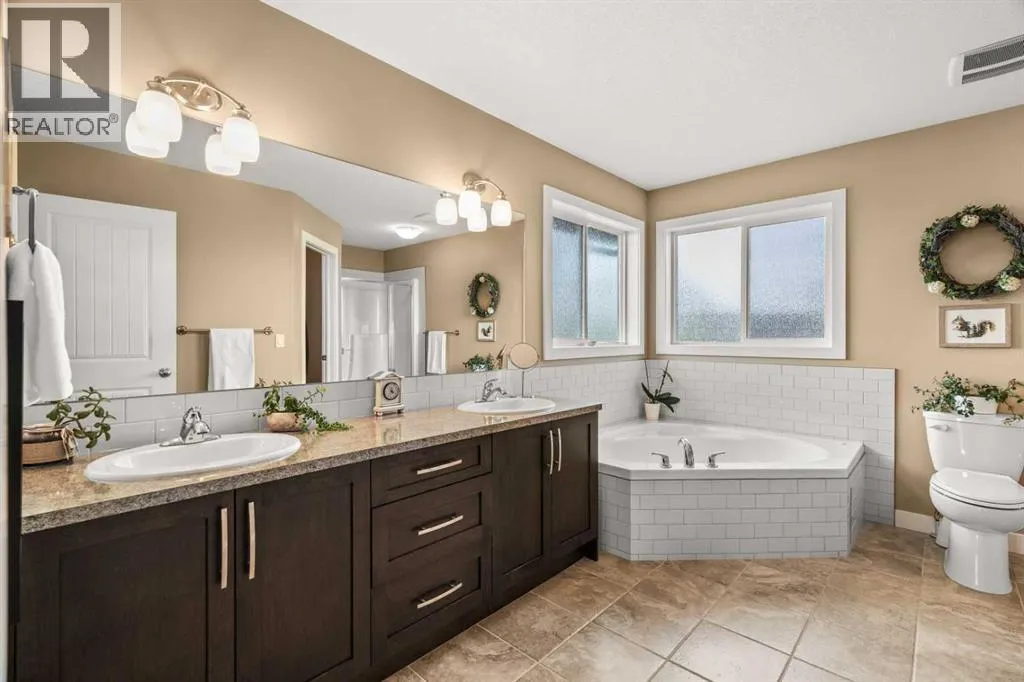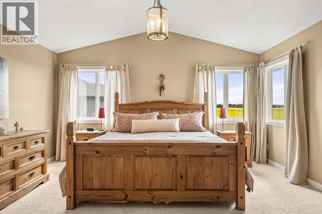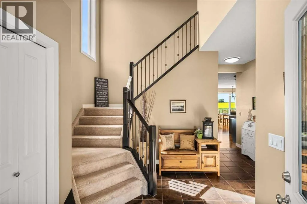 REAR WEST-FACING PROPERTY SITTING ON OVER 1/4 ACRE! The property spans an impressive 0.299 acres and features established fruit trees, raised garden beds and vegetable plots, offering ample opportunities for gardening enthusiasts or those passionate about homegrown produce and canning. Additionally, the lot provides plenty of space for further cultivation, sustainable urban farming or expansive landscaping, making it an ideal choice for the dedicated grower and even the opportunity to build your additional shop/garage if you desire! Nestled in the charming and peaceful community of Carstairs, Alberta, this meticulously maintained, two-story home offers a rare combination of modern elegance, thoughtful design, and serene surroundings. Proudly owned and cared for by its original owner, the home looks and feels brand new, ready to welcome its next family. Situated on one of the largest, beautifully landscaped, pie-shaped lots in this prestigious community, the property boasts a west-facing rear yard with breathtaking views of a picturesque farmerâs field and tranquil pond. Whether youâre enjoying the stunning sunsets from the covered rear deck or relaxing on the welcoming front porch, this home is perfectly positioned to capture the beauty of its surroundings. Inside, the grand foyer impresses with soaring vaulted ceilings and an abundance of natural light, creating a warm and inviting atmosphere throughout. The thoughtful layout includes a walk-through pantry that connects the spacious kitchen directly to the garage, making everyday tasks like grocery trips a breeze. The living room features a cozy gas fireplace, perfect for relaxing evenings with family or friends. Upstairs, the spacious, elegant primary bedroom serves as a luxurious retreat, complete with a spa-inspired five piece ensuite featuring a jetted tub, dual sinks, and a separate shower for ultimate comfort and convenience. Second level laundry and two more bedrooms with a four piece bath complete the upper level. The outdoor space is equally impressive, with a large landscaped yard that provides ample room for outdoor activities and relaxation. The unobstructed views of the Alberta's prairie landscape create a peaceful, park-like setting, perfect for entertaining or enjoying quiet moments in nature. From the deck, one can enjoy the sight of a wide variety of migratory birds, while the expansive open sky provides the perfect backdrop for stargazing. Located just a short drive from Calgary, Carstairs offers the charm of small-town living with the convenience of city amenities close by. This exceptional property is a rare gem, combining modern features, meticulous upkeep, and unbeatable views. Donât miss your chance to make it your new homeâschedule your private showing today! (id:27476)