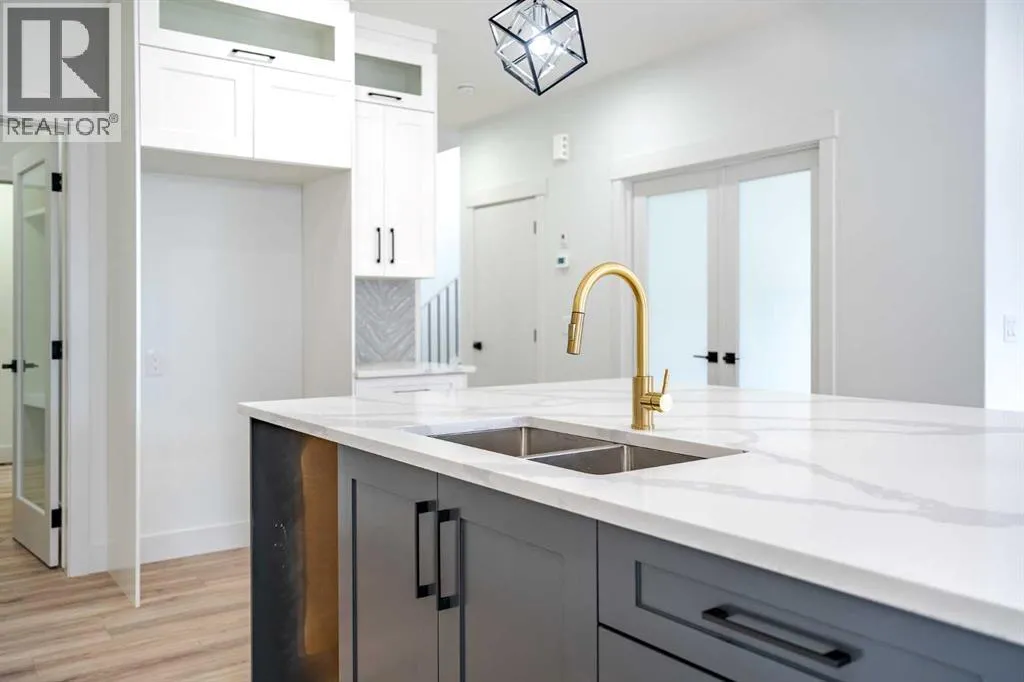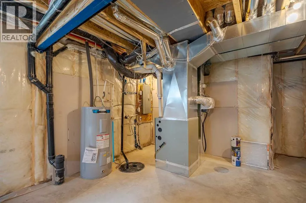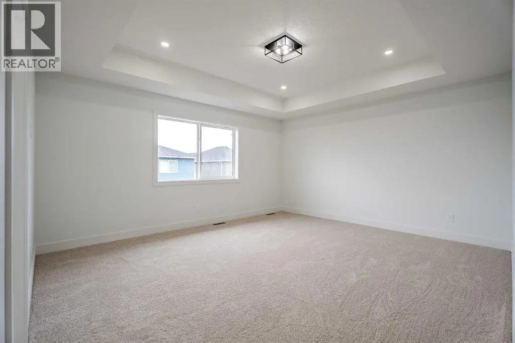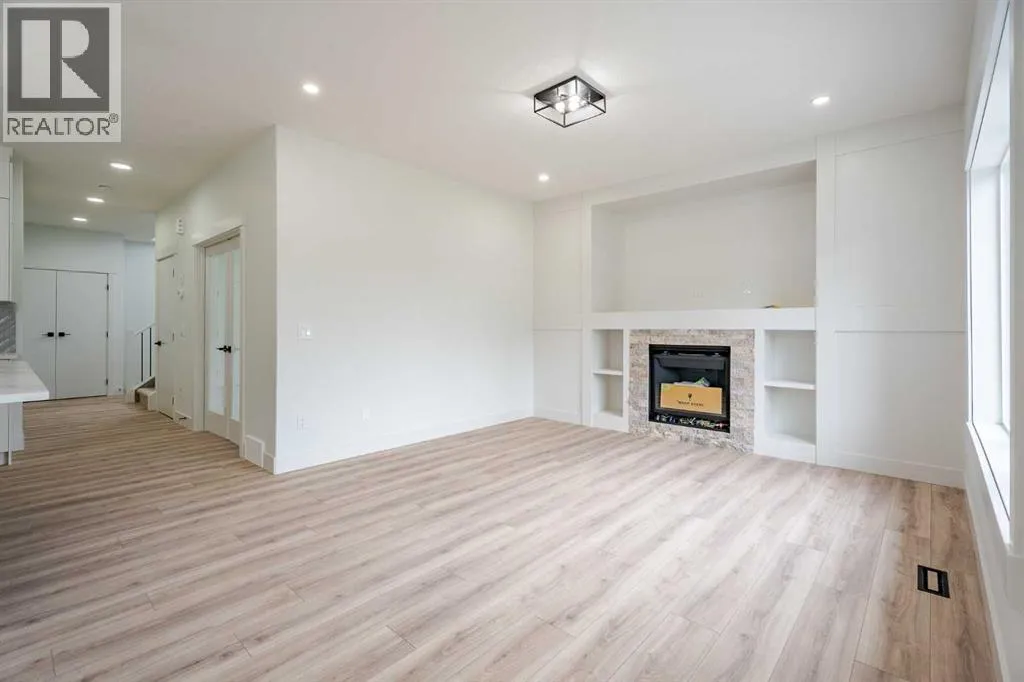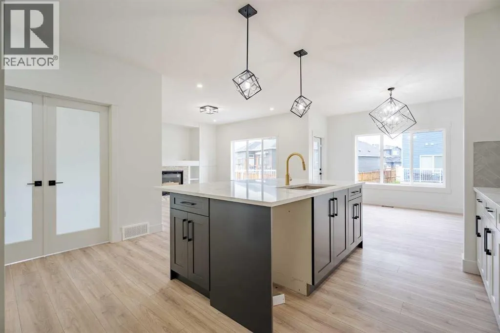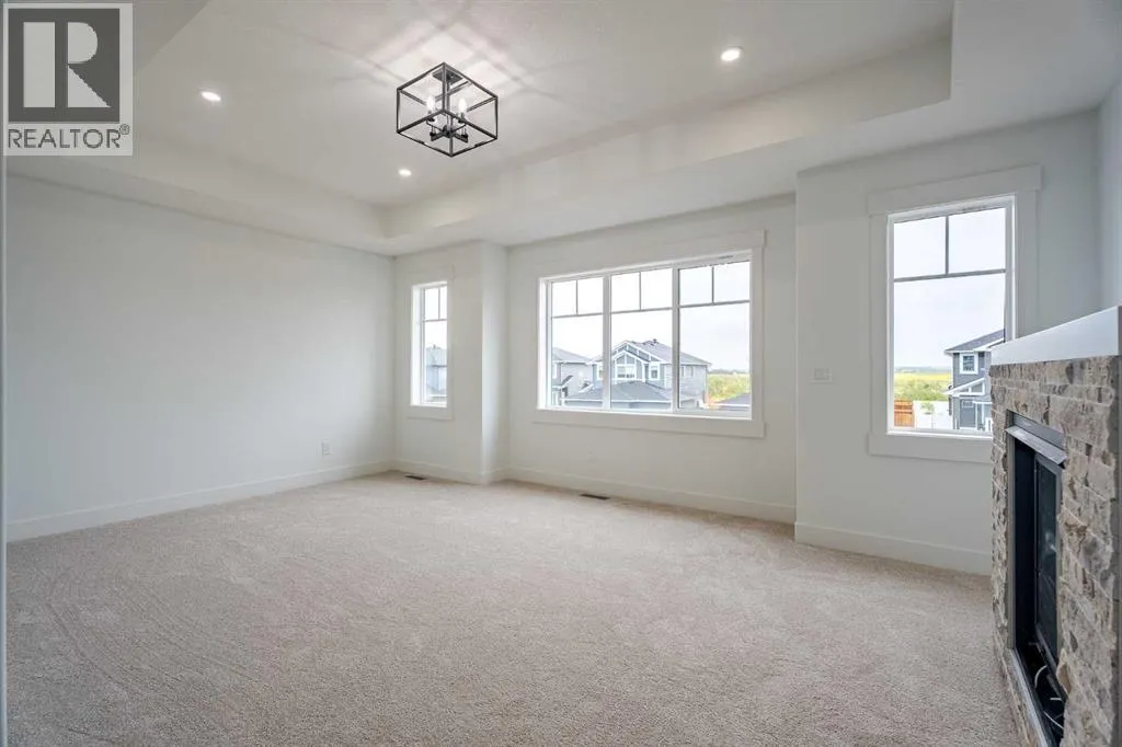 Quick Possession and Brand New with Triple Garage on a spacious lot with 51' frontage and 120' deep. Quick possession is available, and a Fall Special allows buyers to inquire about discount pricing to add a complete basement development. 2,372 sq.ft. two story with attached triple garage (28' x 23') and side access walk-up basement. Bright, open plan with spacious main level dining nook, kitchen with island and walk-through pantry (wood shelving) to spacious mud room (wood bench + shelves), family room with built-in shelves and fireplace, private Work From Home Office, two piece bath and spacious open cathedral front entry. Three bedrooms on the upper level including 15'9" x 14' Primary suite with raised tray ceiling and large walk-in closet (wood shelving), 5 piece Ensuite, bonus room with raised tray ceiling and fireplace, laundry room and 4 piece main bath. Bright undeveloped side access basement has high efficiency mechanical, roughed-in bath plumbing, and large windows for lots of natural light. Will be nicely appointed with ceiling height cabinets, quartz counter tops, upgraded lighting, vinyl plank, tile + carpet flooring, wood shelving in all closets, upgraded exterior and stonework. Includes GST (rebate to builder), new home warranty, rear deck with vinyl cover, front sod + tree, and $5,000 appliance allowance. Great family community with school, park and pond nearby, recreation facilities, and a quick commute to Airdrie, Balzac Mall, Calgary, or hospital nearby at Didsbury. A little drive, a lot of savings! (id:27476)