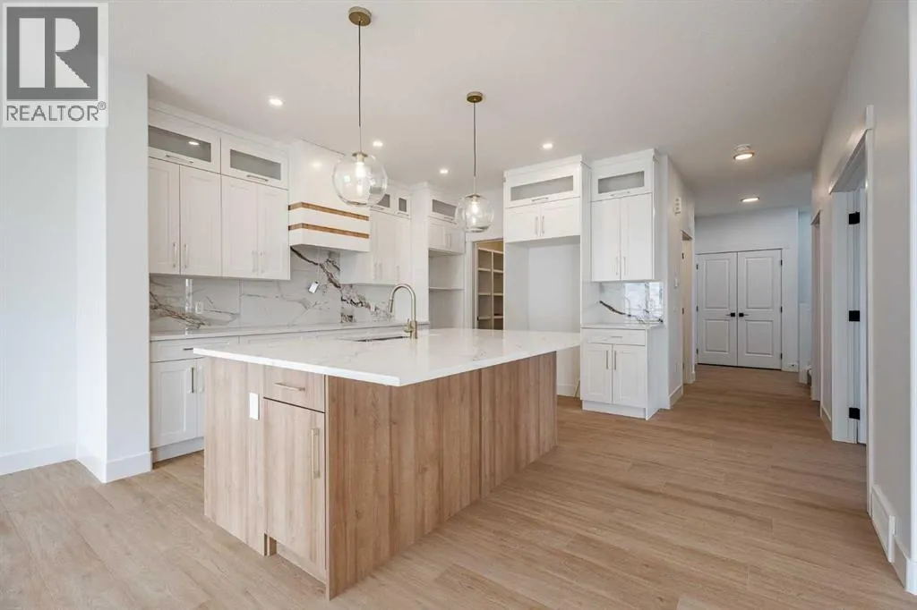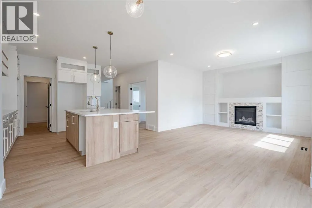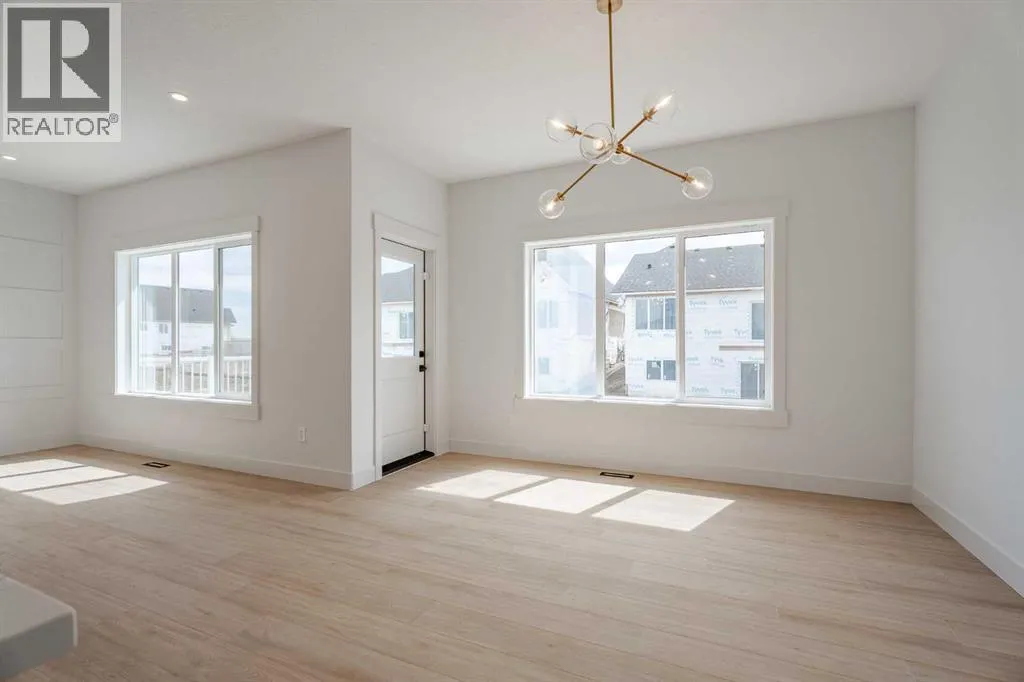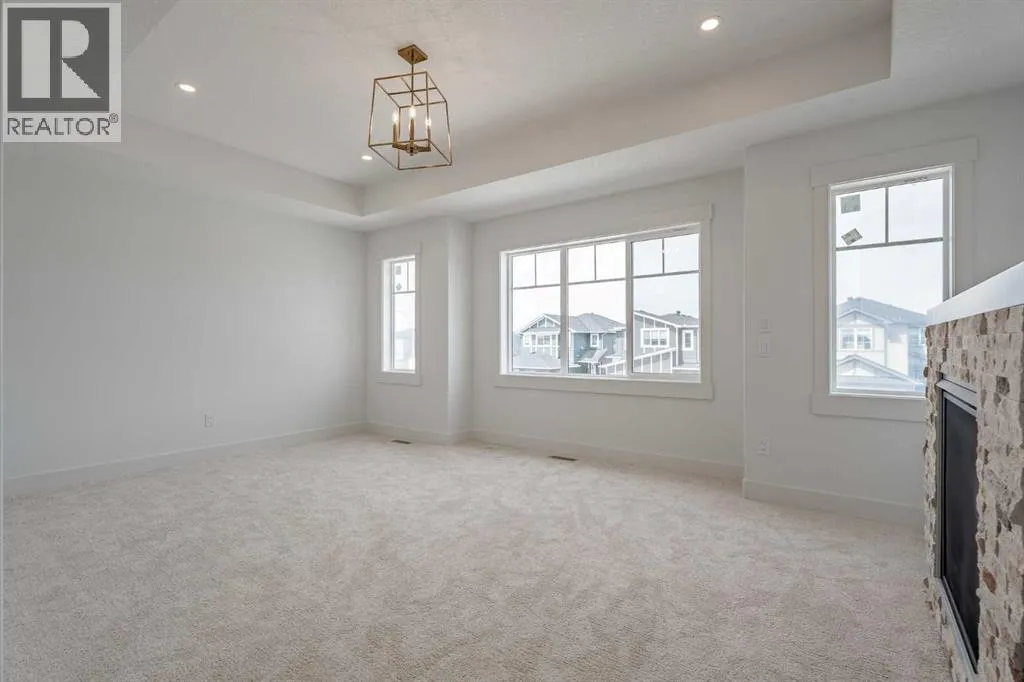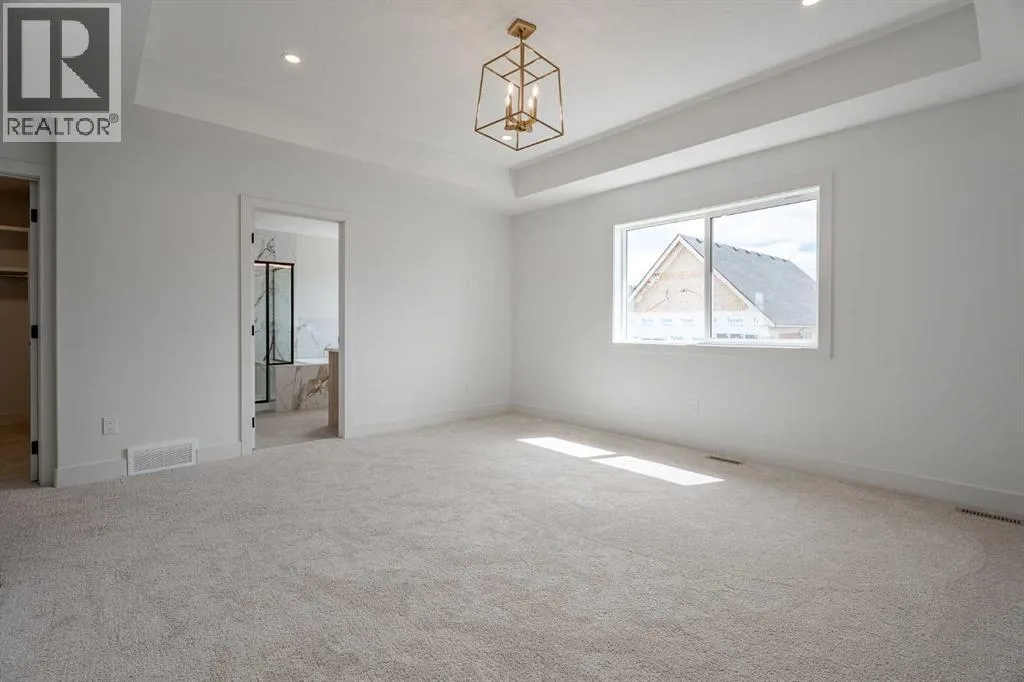 Quick possession available! Open spaces and happy faces await in this country-quiet community. Situated on a spacious south-backing lot (42' x 136'), this brand-new 2,489 sq. ft. two-storey features an attached triple garage (28' x 23') and a side-access walk-up basement.The bright, open main floor offers a spacious dining nook, a modern kitchen with island, walk-through pantry with wood shelving, and a gas line for a stove, flowing seamlessly into a welcoming family room with gas fireplace. A large mudroom with wood bench and lockers, a private work-from-home office, a two-piece bath, and a striking cathedral front entry complete the main level.Upstairs are three bedrooms, including a grand primary retreat accessed through elegant double doors, measuring 15'9" x 14' and featuring a raised tray ceiling, large walk-in closet with wood shelving, and a spa-inspired 5-piece ensuite with double vanity. A bonus room with tray ceiling and gas fireplace, a convenient laundry room, and a 4-piece main bath add even more functionality.The bright basement features high-efficiency mechanical systems and large windows for excellent natural light.This home is beautifully finished with ceiling-height cabinetry, quartz countertops, upgraded lighting, vinyl plank flooring, tile and carpet, wood shelving in closets, and upgraded exterior stonework.Includes GST (rebate to builder), new home warranty, a 13' x 9' rear deck, completed front sod and tree, and a $5,000 appliance allowance. All staircases are fully finished with carpet, making this home truly move-in ready.Located steps from parks, pathways, and recreation facilities, this home is within walking distance to Carstairs Elementary School (KâGrade 4) located in Scarlett Ranch. Older students attend Hugh Sutherland School (Grades 5â12), Scarlett Ranch offers the perfect balance of country quiet and everyday convenience, with quick access to Airdrie, Calgary, CrossIron Mills, and Didsbury Hospital. A little drive, a lot of s avings â donât miss this one! (id:27476)