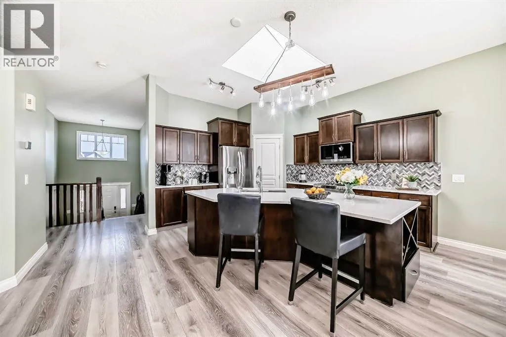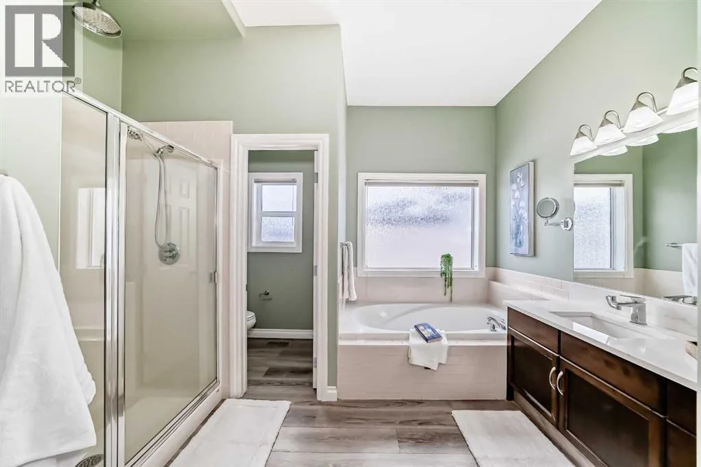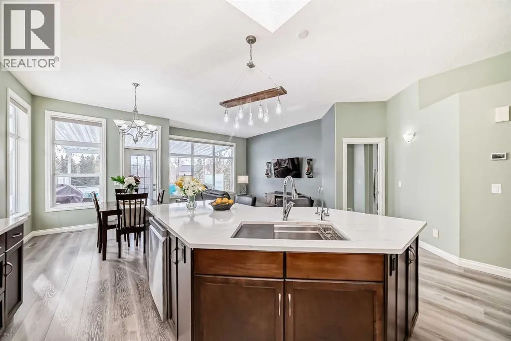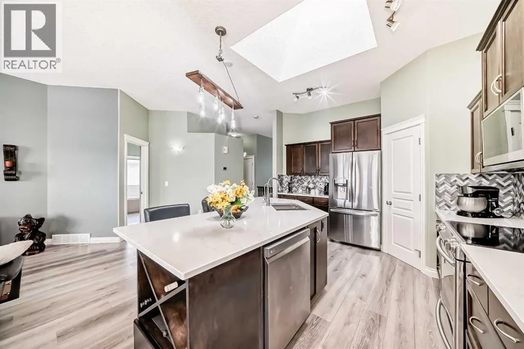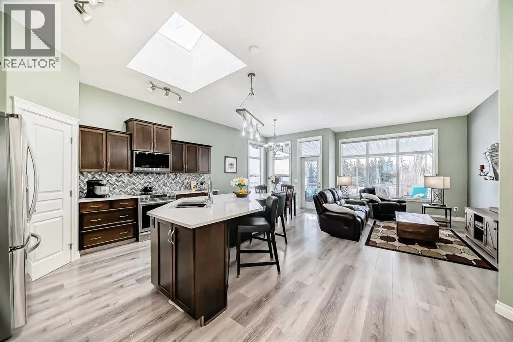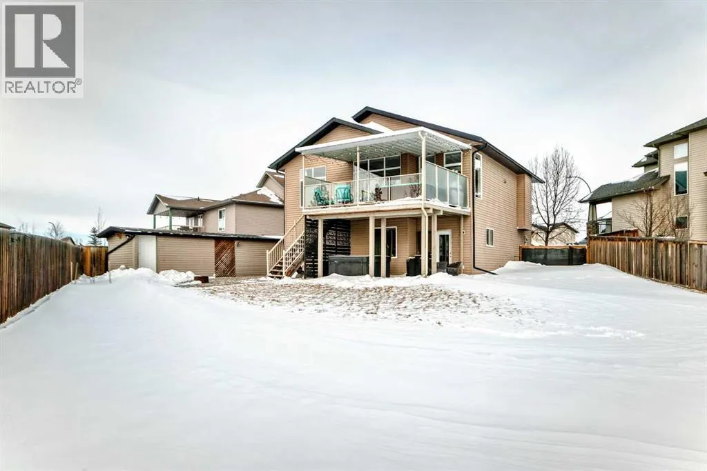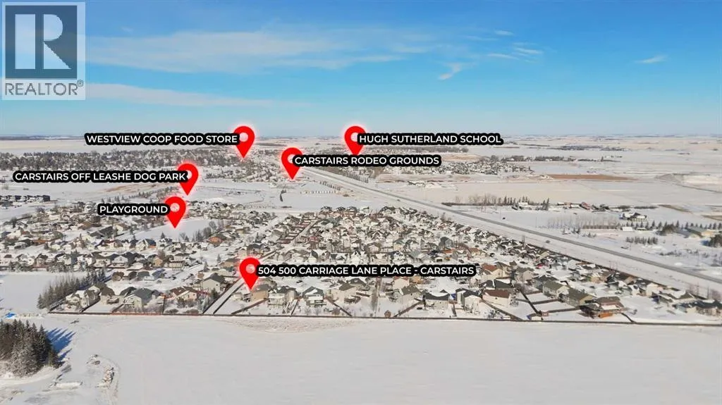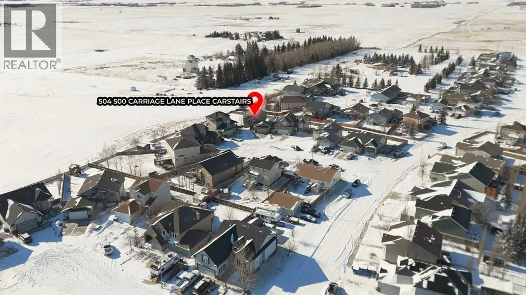 Trade city congestion for wide-open views - Welcome home to 504, 500 Carriage Lane Place! This 5 bedroom 3 bathroom bi-level home showcases over 2500 square feet of living space on an expansive 9,000 square foot pie-shaped lot with prime cul-de-sac location. The main level is bright & open with 10 foot ceilings and massive windows. This level holds three of the five bedrooms, including a primary suite built for relaxation, complete with a deep soaker tub, full size walk-in shower, & walk-in closet. The contemporary gourmet kitchen features sleek wood-grain cabinetry, premium stainless steel appliances, corner pantry and spacious island with seating - perfect for everyday living & entertaining. This space flows effortlessly into a formal dining area and out onto the private back deckâthe ultimate spot to unwind while overlooking the peaceful farmland. Complete with gas hookup for your BBQ and steps down the backyard oasis. The walk-out basement is recently renovated to be a comfortable, versatile space with 9-foot ceilings, luxurious in-floor heating, and large windows that bring in as much light as the main floor. This level includes the final two bedrooms, a third full bathroom, and a large family room. Step outside to find the covered patio with hot tub, positioned perfectly to take in the sunset over the firepit and the open land behind the property. For those with hobbies or extra equipment, the 36x10 detached workshop is a major standout. The property has been mechanically updated for comfort and efficiency, featuring central A/C, a high-efficiency furnace, a combi-boiler system for tankless hot water, central vacuum system, and CAT5 wiring throughout. This prime Carstairs location is just steps from walking paths, schools, and local rodeo grounds to enjoy everything this small town has to offer! Itâs more than a house; itâs a lifestyle upgrade. Book your viewing today! (id:27476)