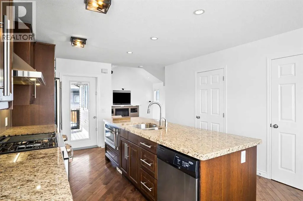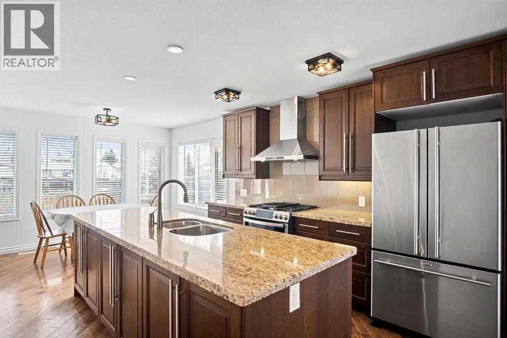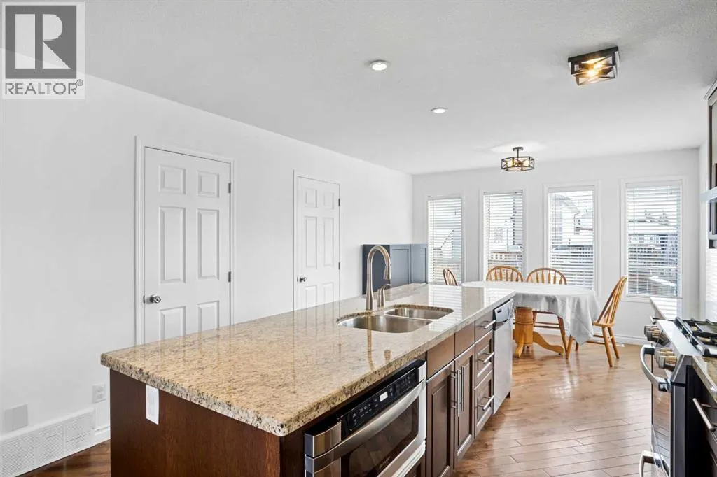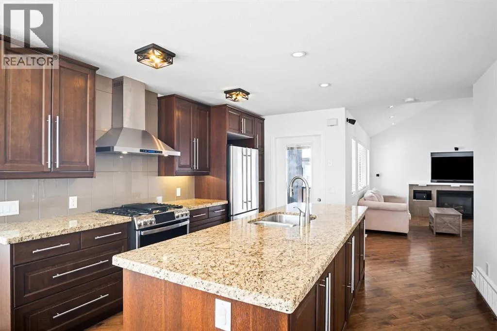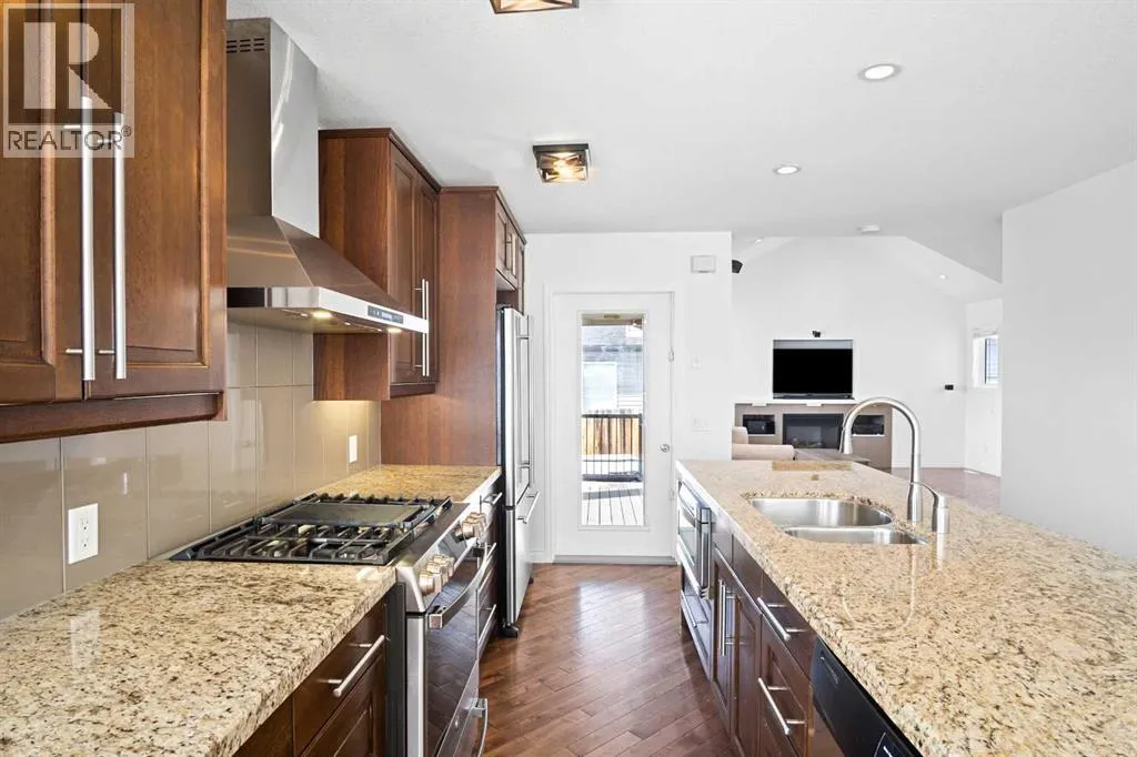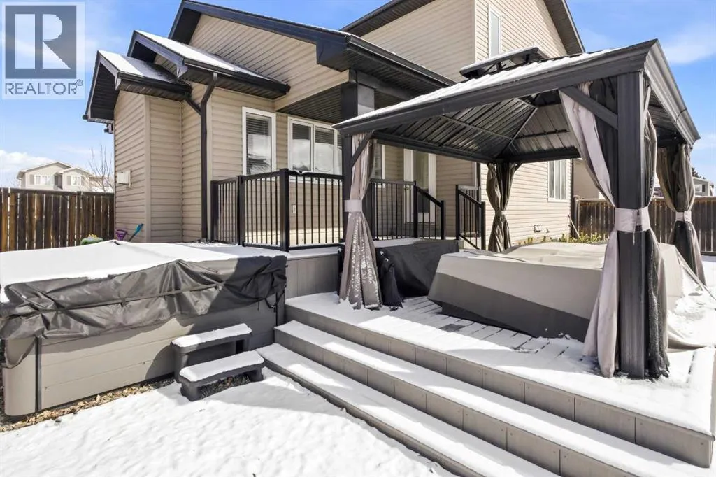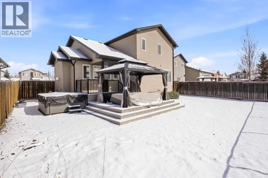 Welcome to this beautiful home nestled in a quiet cul-de-sac in the sought-after golf course community of Stonebridge Glen. Thoughtfully designed and well-built, this property offers exceptional features and must be seen to be fully appreciated.The inviting front entry opens into a bright living room with soaring ceilings, large windows, and a cozy gas fireplaceâperfect for relaxing or entertaining. The spacious kitchen is a true highlight, featuring a large island, gas stove with hood fan, built-in microwave, and an oversized pantry for ample storage. The adjoining dining area is surrounded by windows, offering plenty of natural light and lovely views of the yard. This level has hardwood floors.Convenience is key with a powder room and dual access to the garage from both the kitchen and front entry.Upstairs, an impressive stairwell leads to the primary retreat, complete with a walk-in closet and a private ensuite featuring in-floor heating. Two additional bedrooms, a full bathroom, and a laundry area complete the upper level. Recent updates include fresh paint on the main floor and brand new carpet upstairs.The fully developed lower level offers even more living space, including a large bedroom with its own ensuite and a versatile flex room to suit your needs.Step outside to enjoy the fully fenced yard, featuring a two-tiered deck and a hot tubâperfect for outdoor living year-round. There is even a dog run that can be accessed from the garage. The garage is oversized and fits a truck and car. This exceptional home offers incredible value and wonât last long. Book your showing today! (id:27476)