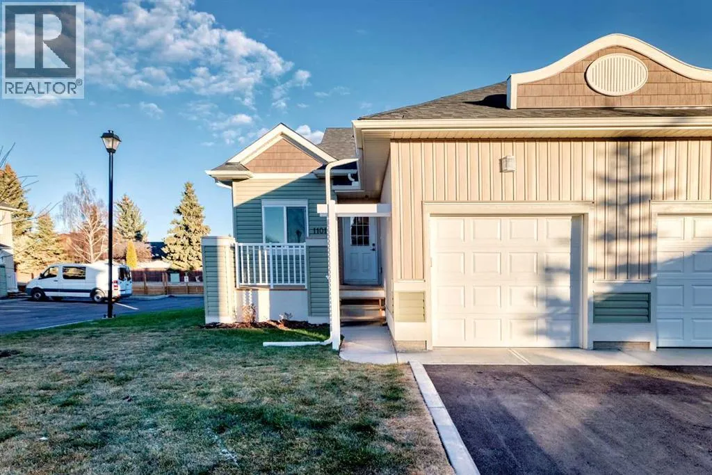 **NO CONDO FEES FOR 2026** Welcome to 1102 Clover Close. Brand-new, fully finished bungalow offering 1,658 sq ft of developed living space that perfectly blends modern comfort and thoughtful design. Built and finished by the builder, this home features 3 bedrooms, 2.5 bathrooms, a den, and an attached single garage â ideal for downsizers, first-time buyers, or those seeking convenient main-floor living. Inside, youâll find 9 ft ceilings, quartz countertops, LVP flooring, and stainless-steel appliances, all adding to the homeâs contemporary appeal. The main floor includes the spacious primary bedroom with 3pc ensuite and walk-in closet, laundry area, and a versatile den perfect for a home office. The fully developed basement expands your living area with 2 additional bedrooms, a full 4pc bathroom, and a spacious recreation room with built in dry bar. Throughout the home, youâll find elevated finishes such as 4â baseboards, knock-down ceilings, LED pot lighting, high-efficiency furnace and tile work in all bathrooms. The exterior features Smartboard siding, stairs down to your private patio. Enjoy the ease of low-maintenance living with monthly condo fees of $351.08, covering such items as exterior upkeep and common area maintenance. Stylish, functional, and move-in ready â this newly built bungalow offers exceptional value in a growing community with small-town charm and modern conveniences. (id:27476)