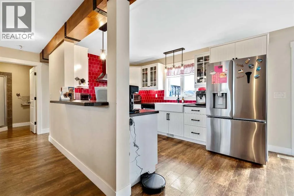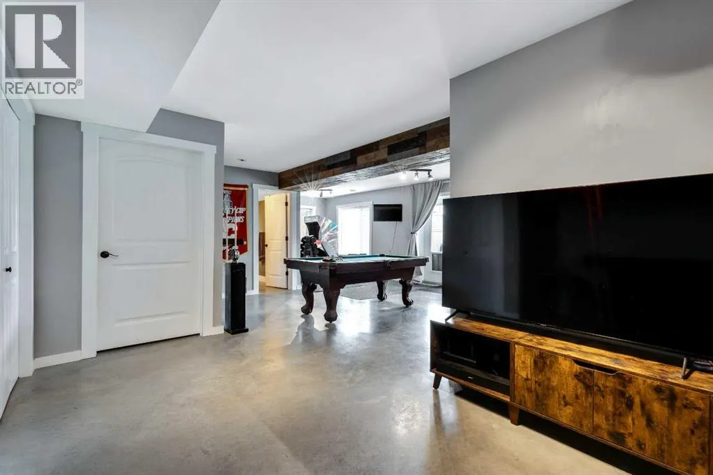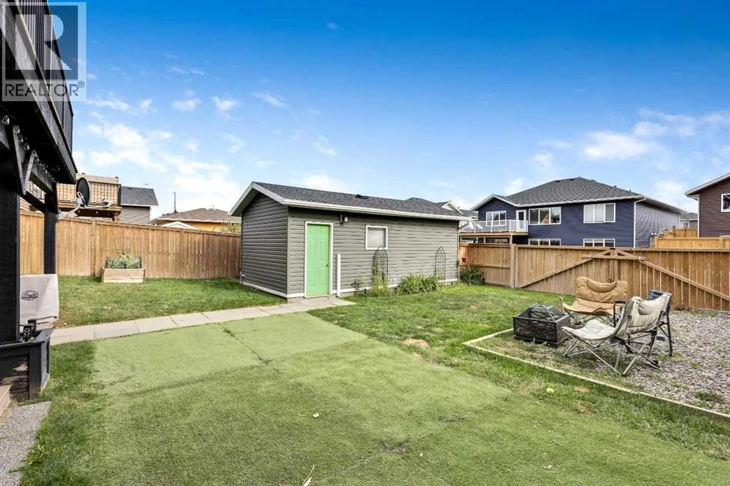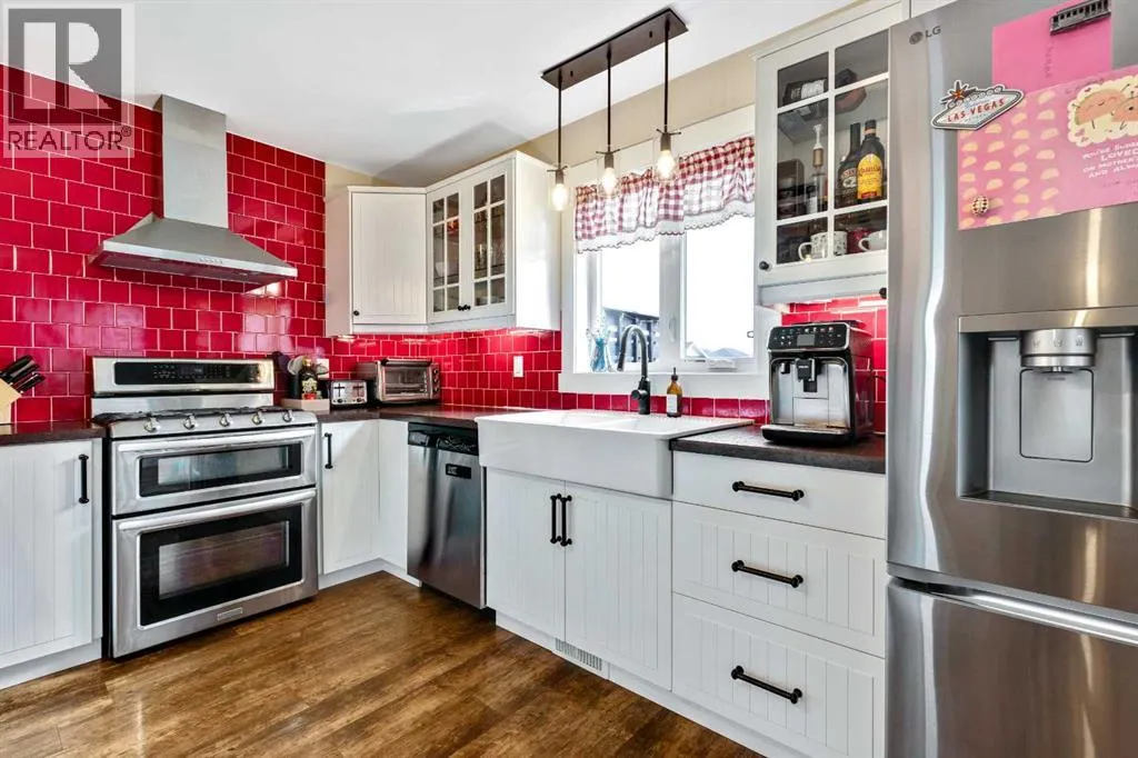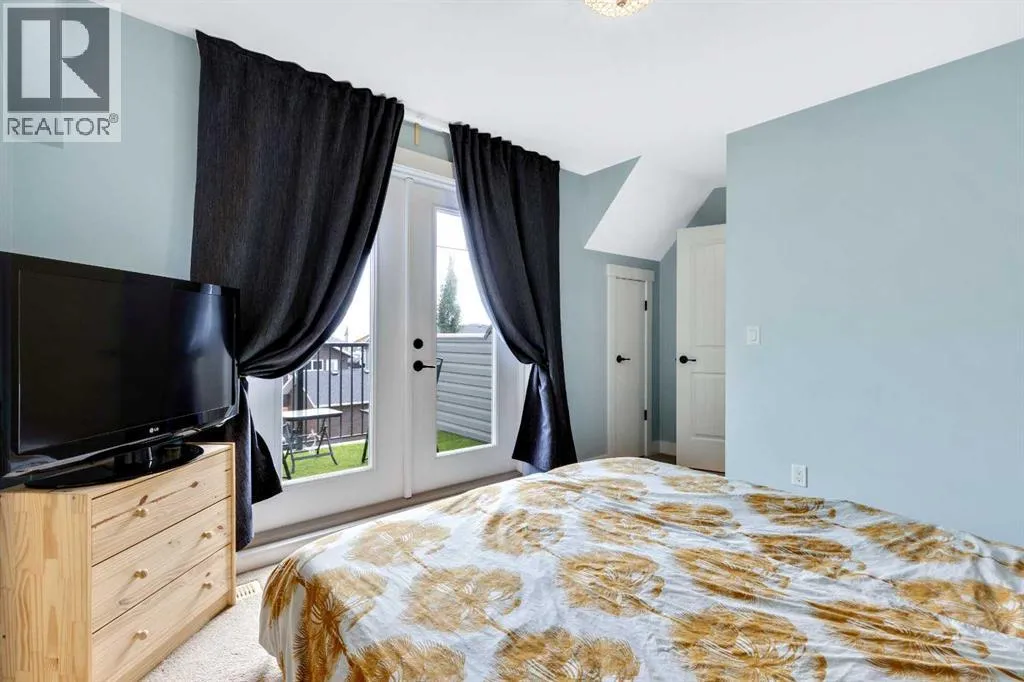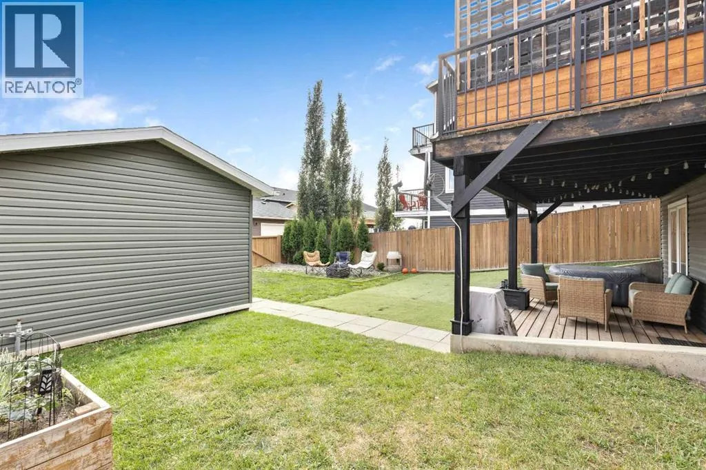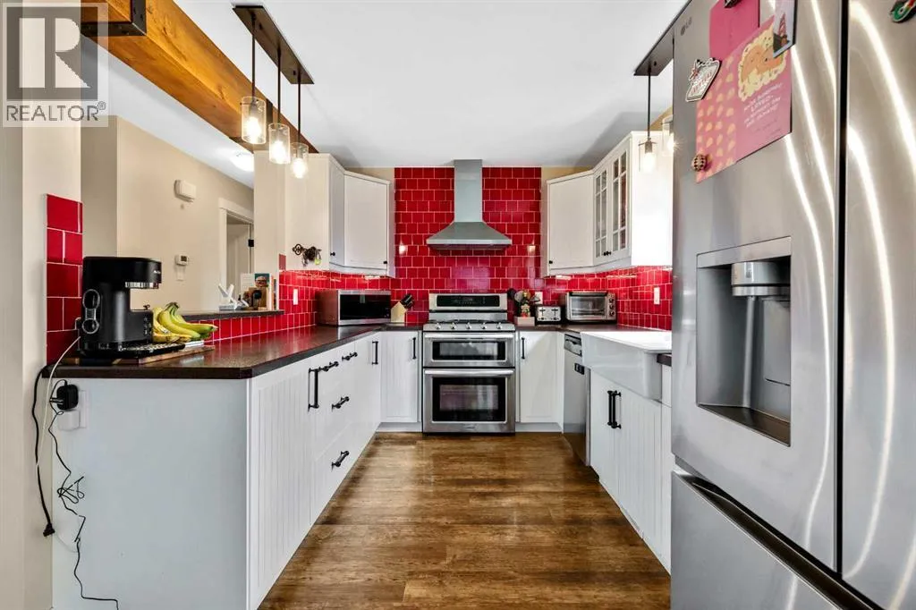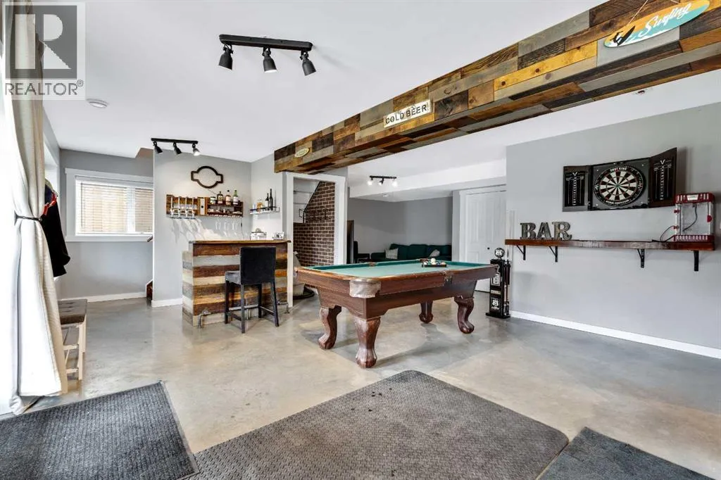 Houlden Place is an attractive cul-de-sac of individually designed, executive-style homesâand number thirteen proudly stands out. With its traditional architectural charm, this residence offers exceptional curb appeal and a warm, welcoming presence.Step inside to an impressive open-plan layout, where a vaulted, beamed ceiling, a striking accent staircase, and a soaring stone chimney stack set the tone for the home's unique character. The kitchen and dining area blend English country charm with a bold, modern twistâhighlighted by vibrant red accents, a voluminous Belfast sink, ample counter space, and a gas stove that any serious cook will appreciate.From the dining room, double doors lead to a raised deck that showcases breathtaking prairie and mountain viewsâideal for entertaining or quiet mornings with coffee.The main floor also features a spacious second bedroom, a stylish three-piece bathroom, and a generous laundry with sink and storage room.Upstairs, the private primary suite offers a peaceful retreat with garden views and access to a walk-out balconyâonce again capturing those stunning long-range mountain vistas. The four-piece ensuite flows into a flexible dressing room or optional additional bedroom, which then connects to a loft-style flex space, currently set up as a home office.The fully finished walkout basement is warmed by in-floor heating and includes a gym area, bar, recreation zone, cozy lounge/movie space, and a modern three-piece bathroom. Large double doors open to a covered patio and the beautifully landscaped, fenced backyardâcomplete with a gated trailer access.Additional features include the following: High-efficiency furnace and water tank, Central air conditioning, Humidification and energy recovery ventilation systems for year-round comfort, Oversized single garage with workshop spaceThis homeâs thoughtful design, unique features, and unbeatable views set it apart from the rest. Itâs truly a must-see! (id:27476)