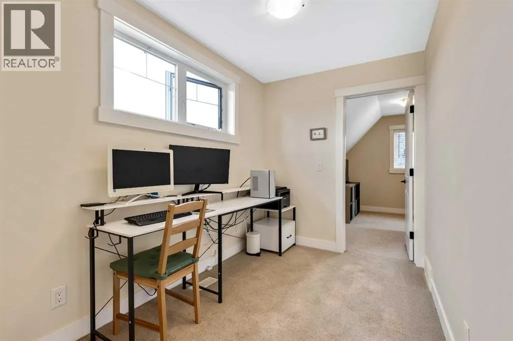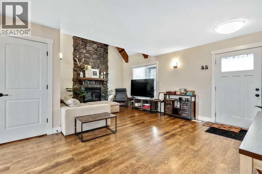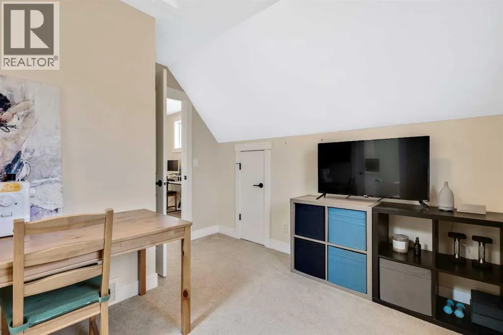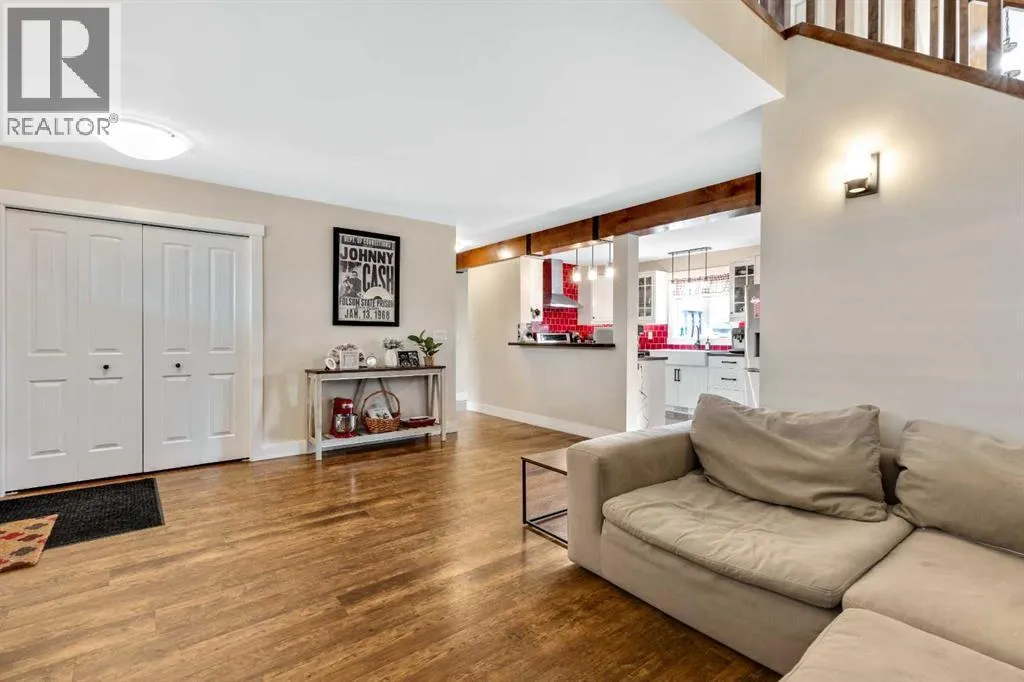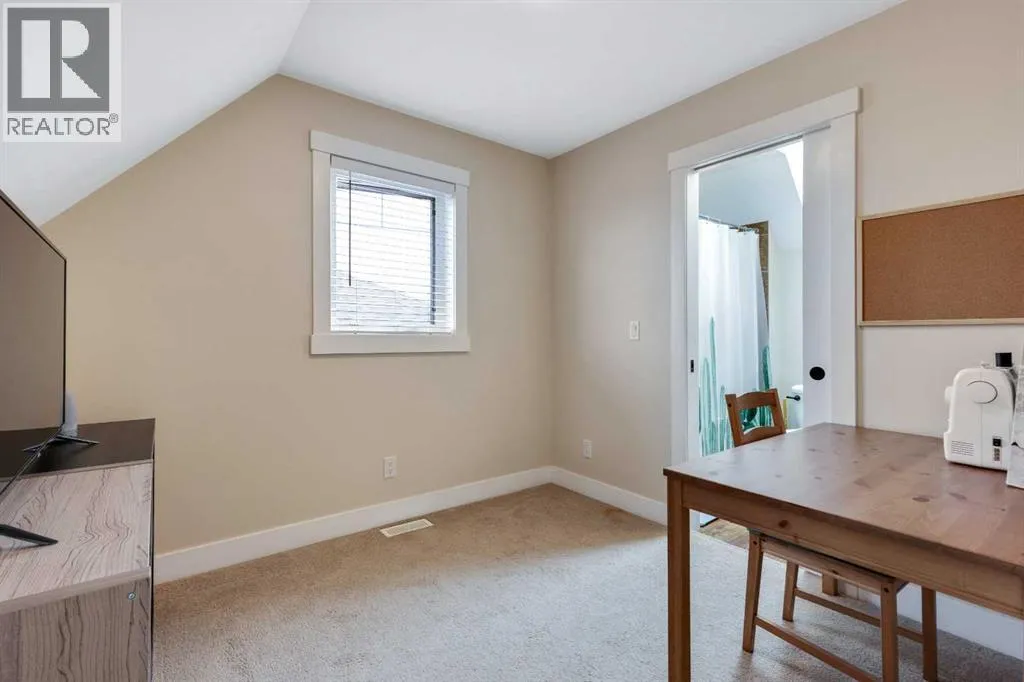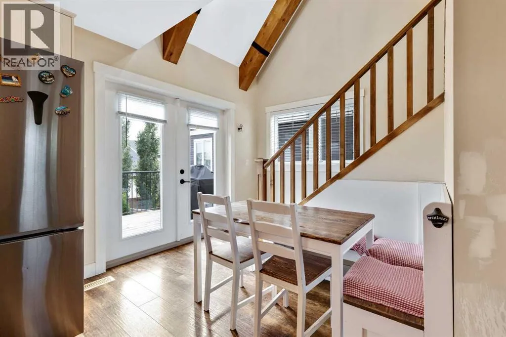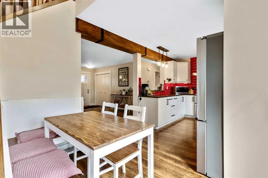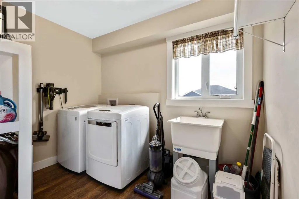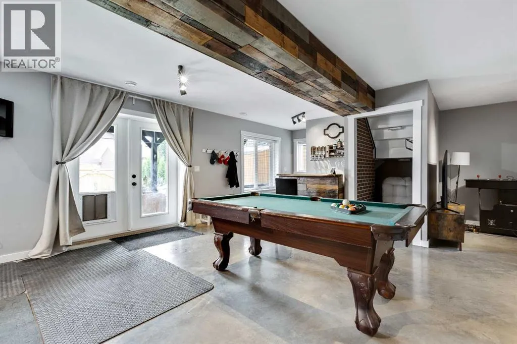Houlden Place is an attractive cul-de-sac of individually designed, executive-style homesâand number thirteen proudly stands out. With its traditional architectural charm, this residence offers exceptional curb appeal and a warm, welcoming presence.Step inside to an impressive open-plan layout, where a vaulted, beamed ceiling, a striking accent staircase, and a soaring stone chimney stack set the tone for the home's unique character. The kitchen and dining area blend English country charm with a bold, modern twistâhighlighted by vibrant red accents, a voluminous Belfast sink, ample counter space, and a gas stove that any serious cook will appreciate.From the dining room, double doors lead to a raised deck that showcases breathtaking prairie and mountain viewsâideal for entertaining or quiet mornings with coffee.The main floor also features a spacious second bedroom, a stylish three-piece bathroom, and a generous laundry with sink and storage room.Upstairs, the private primary suite offers a peaceful retreat with garden views and access to a walk-out balconyâonce again capturing those stunning long-range mountain vistas. The four-piece ensuite flows into a flexible dressing room or optional additional bedroom, which then connects to a loft-style flex space, currently set up as a home office.The fully finished walkout basement is warmed by in-floor heating and includes a gym area, bar, recreation zone, cozy lounge/movie space, and a modern three-piece bathroom. Large double doors open to a covered patio and the beautifully landscaped, fenced backyardâcomplete with a gated trailer access.Additional features include the following: High-efficiency furnace and water tank, Central air conditioning, Humidification and energy recovery ventilation systems for year-round comfort, Oversized single garage with workshop spaceThis homeâs thoughtful design, unique features, and unbeatable views set it apart from the rest. Itâs truly a must-see! (id:27476)