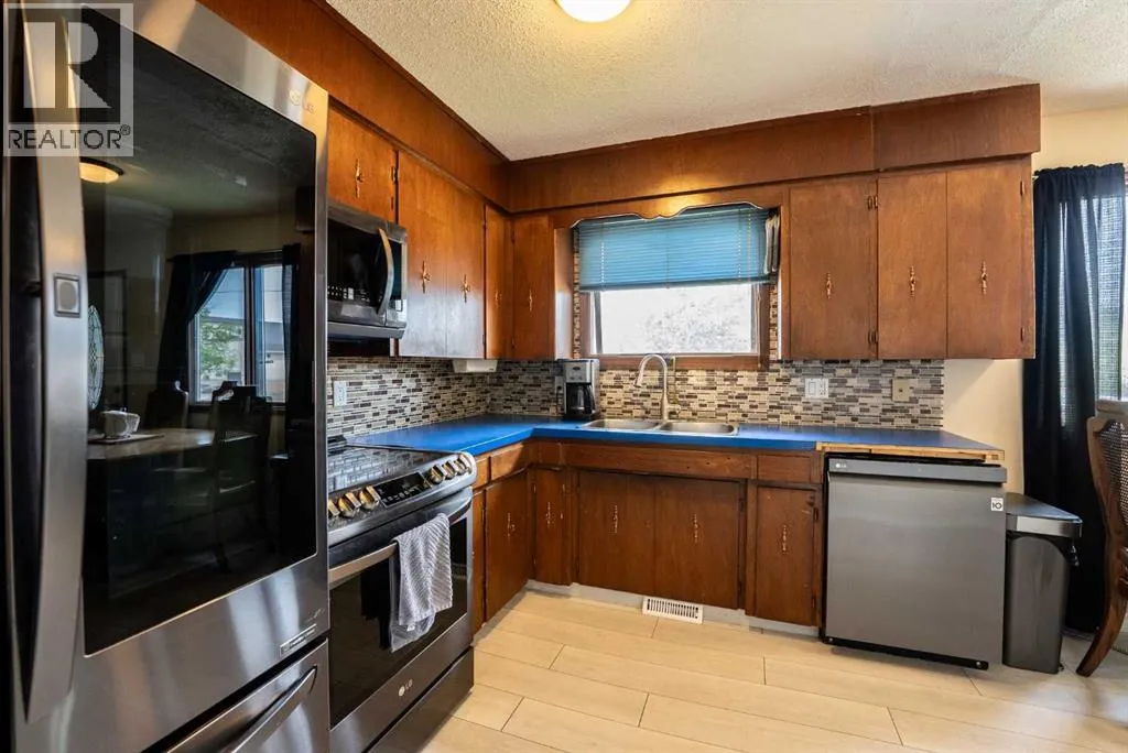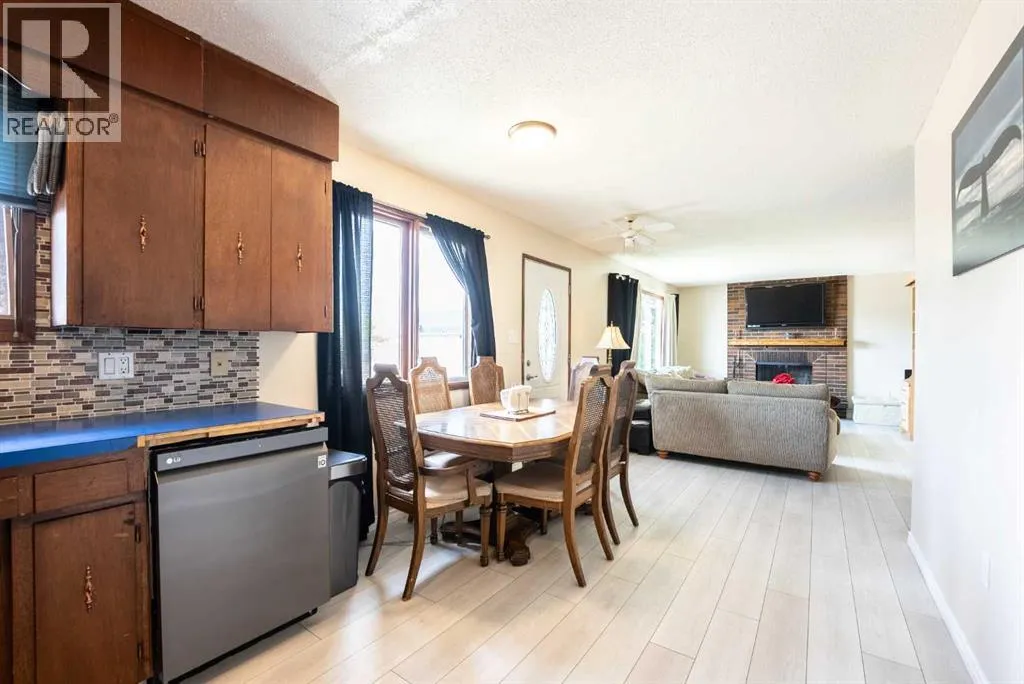 Welcome to this spacious bungalow in Champion, AlbertaThis well-maintained home offers over 2,000 sq ft of developed living space, located on a fenced corner lot with thoughtful upgrades throughoutâperfect for families, investors, or multi-generational living.The main level features an inviting layout with updated vinyl flooring throughout, a cozy wood-burning fireplace, and new appliances (2018). The kitchen and dining areas are bright and functional, while the renovated 4-piece bathroom (2019) adds a modern touch. The attached super-single heated garage has been converted into a large primary bedroom, offering extra space and flexibility, with the option to easily convert it back into a garage.The non-conforming basement suite has a private entrance, separate laundry, and even its own dishwasherâideal for extended family or rental potential. It includes a large living area, full kitchen, den/office, and a reverse-osmosis water filtration system, providing comfort and functionality. The basement also benefits from a sump pump, helping to protect against moisture. Notable Upgrades & FeaturesMetal roof (2015)New furnace and central A/C installed (June 2025) by Fire & Frost50-gallon hot water tank (2017)Central vacuum system with two sets of attachments (upstairs and downstairs)Underground sprinklers for easy lawn maintenanceVinyl flooring throughout both levelsSituated on a corner lot, the property includes a fenced yard with mature landscaping and underground sprinklersâperfect for pets, kids, or gardening. Located just 15 minutes to both Travers Dam and Twin Valley Campgrounds - this entertainers home is great for dinner parties or simply enjoying the peace and quiet.Whether you're looking for space to grow, potential rental income from an illegal suite, or simply a move-in-ready home with quality upgrades, this bungalow checks all the boxes. Call your favourite REALTOR® and book a showing today! (id:27476)