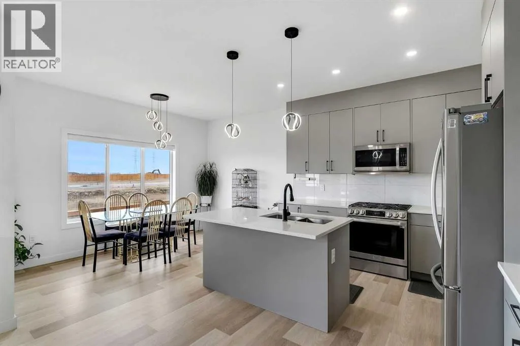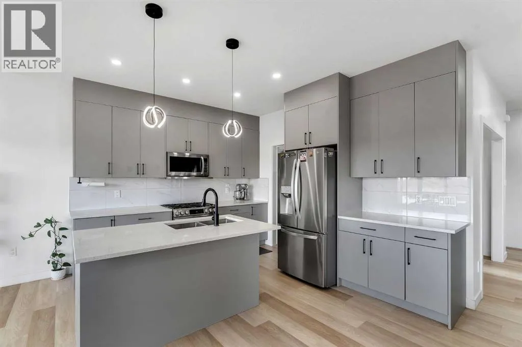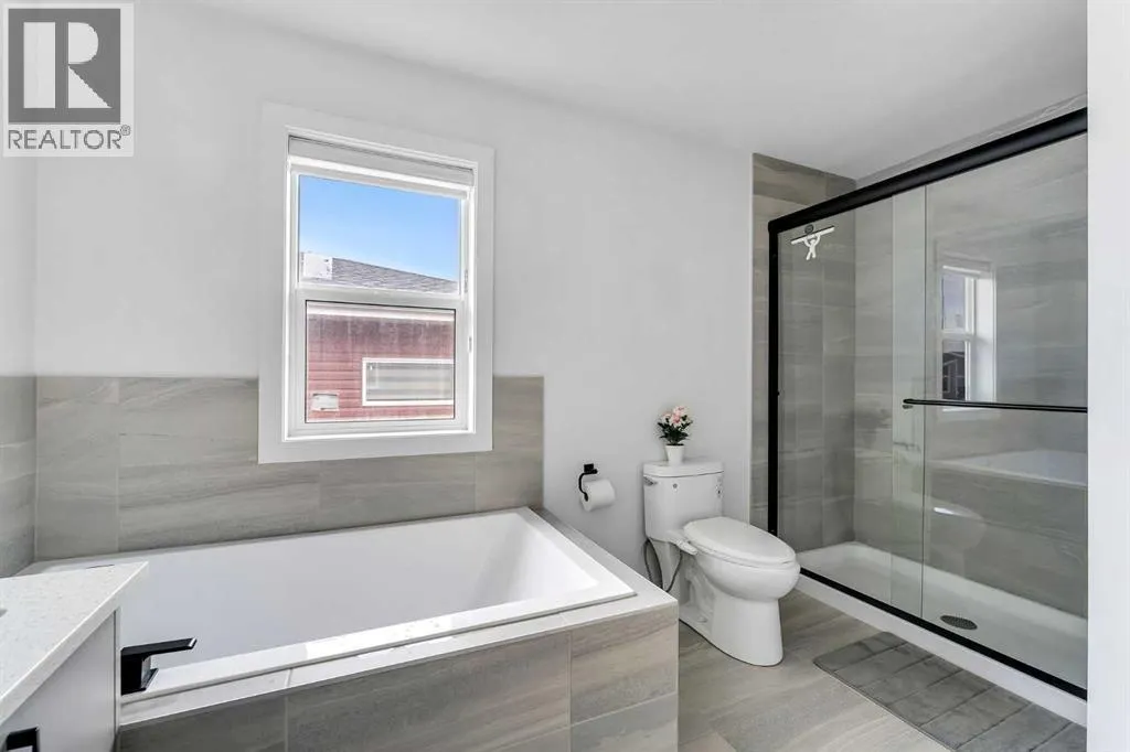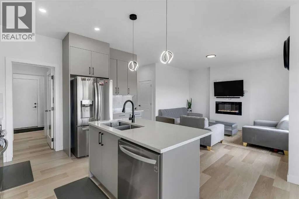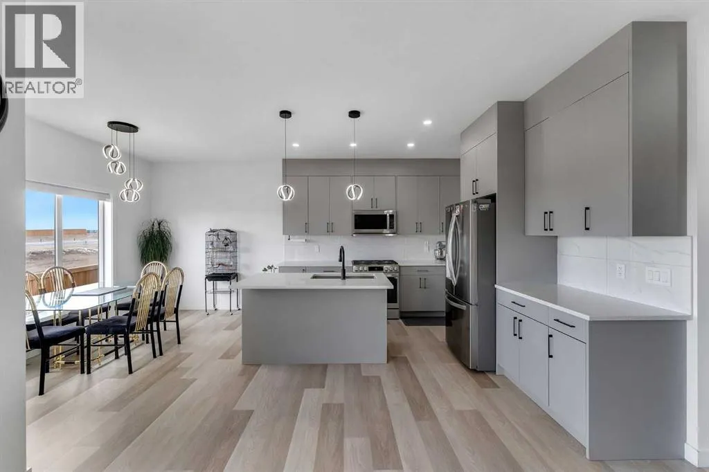 Welcome to this stunning home in the highly sought-after Waterford community of Chestermere!This beautifully designed property offers the perfect blend of elegance and functionality, complete with a double attached front garage and a spacious lot.Step inside to discover a bright, open-concept layout featuring 9-foot ceilings and a versatile main floor denâideal for a home office or study space. The chef-inspired kitchen is a true highlight, boasting quartz countertops, premium cabinetry, a sleek backsplash, and a full stainless steel appliance package.A separate side entrance to the basement provides excellent future development potential.Upstairs, enjoy a cozy bonus room perfect for relaxing or entertaining, along with three generously sized bedrooms. The luxurious primary suite features a stylish double-sink ensuite. For added convenience, the upper-floor laundry room makes daily chores a breeze.Located just steps from shopping centres and the picturesque Chestermere Lake, this home offers the ideal setting for family living.Donât miss outâbook your showing today! (id:27476)
