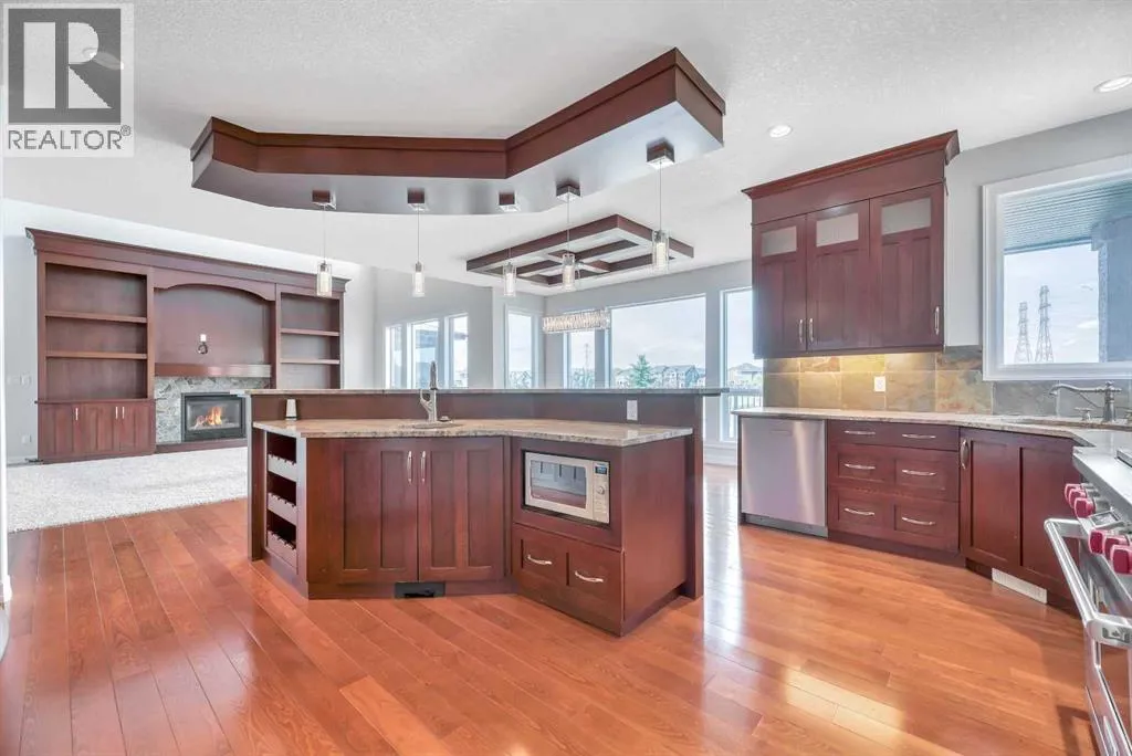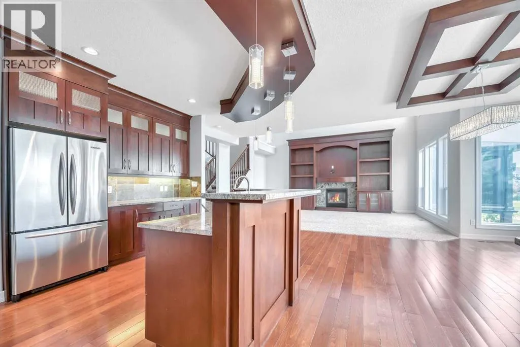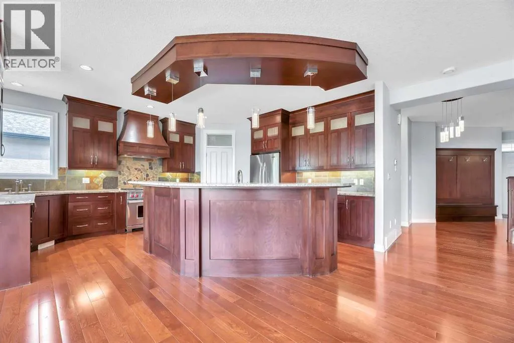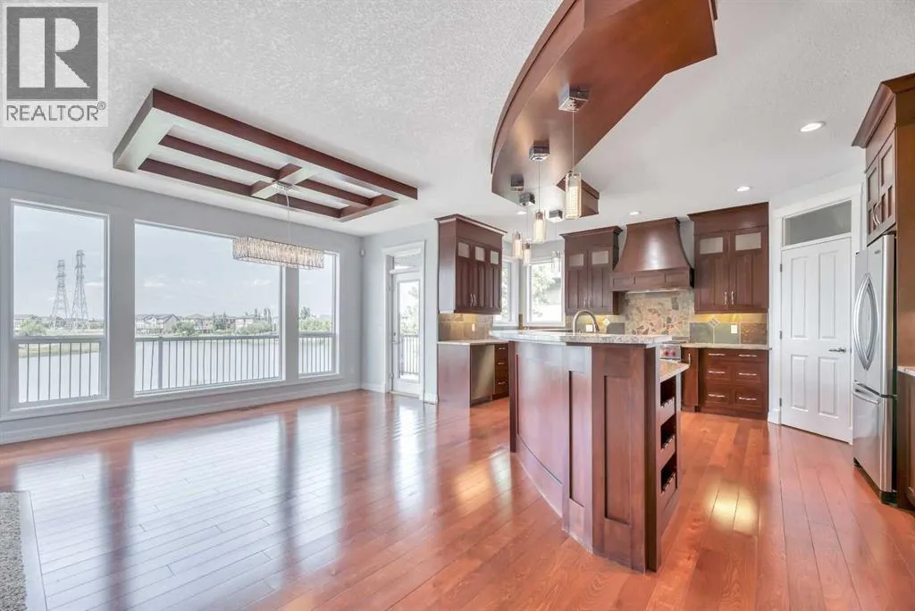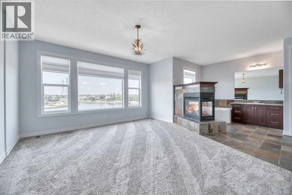 Discover your DREAM HOME in the coveted Rainbow Falls community of Chestermere! This rare gem offers spectacular pond views and tranquil pathways right outside your back door, creating an idyllic retreat perfect for family living. Feel instantly welcomed by luxurious HEATED FLOORS spanning all three levels, brand-new plush carpeting upstairs, and bright, spacious interiors thoughtfully designed for both comfort and style. Enjoy family gatherings in the expansive kitchen, with CUSTOM CABINETRY and beautifully framed by oversized windows overlooking your serene backyard paradise. Unwind in the cozy bonus room, or find inspiration working from your spacious home office. The large basement offers endless possibilities for customization, while the TRIPLE-CAR GARAGE and covered BBQ area add practical convenience and year-round enjoyment. Donât miss this incredible opportunity to make lasting memories in your perfect family sanctuary! (id:27476)