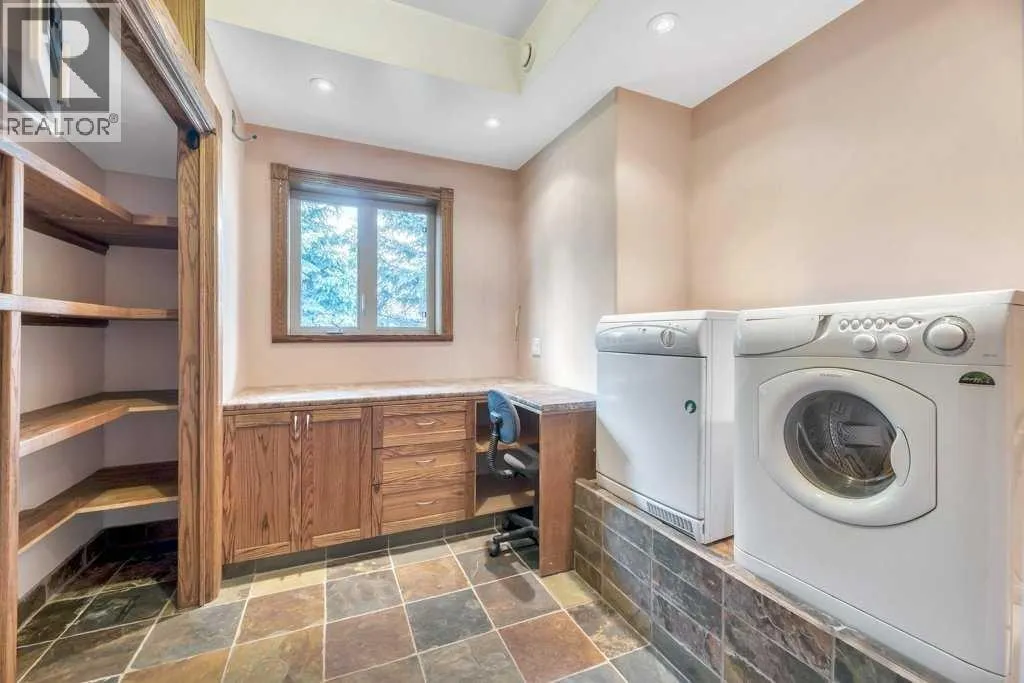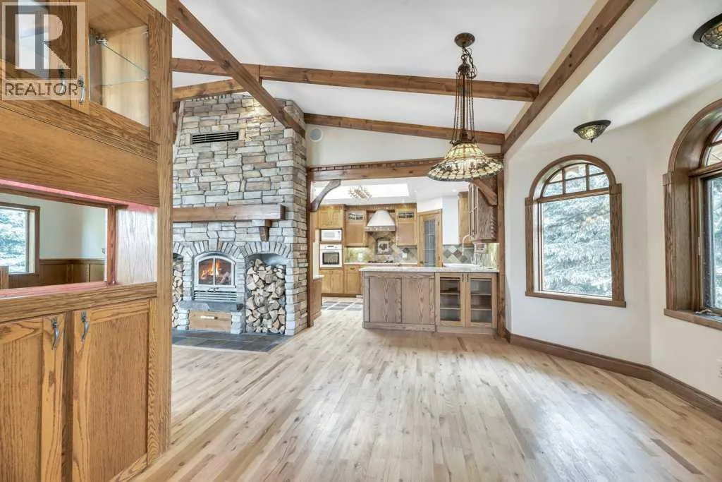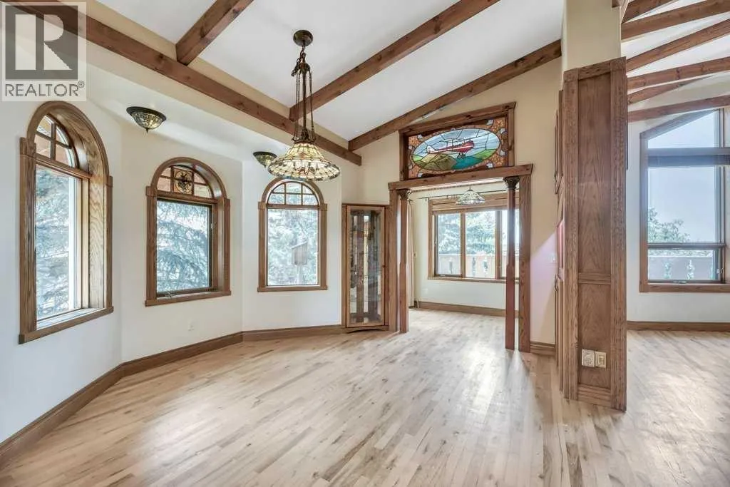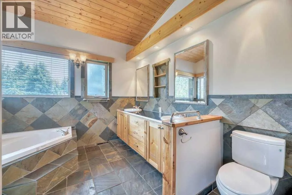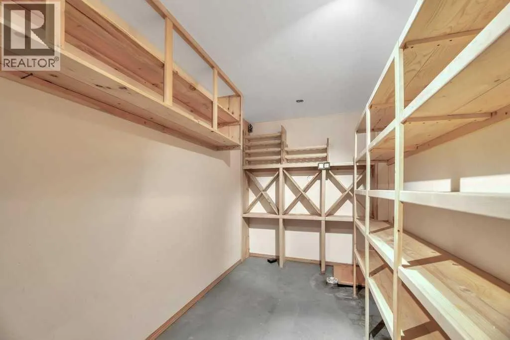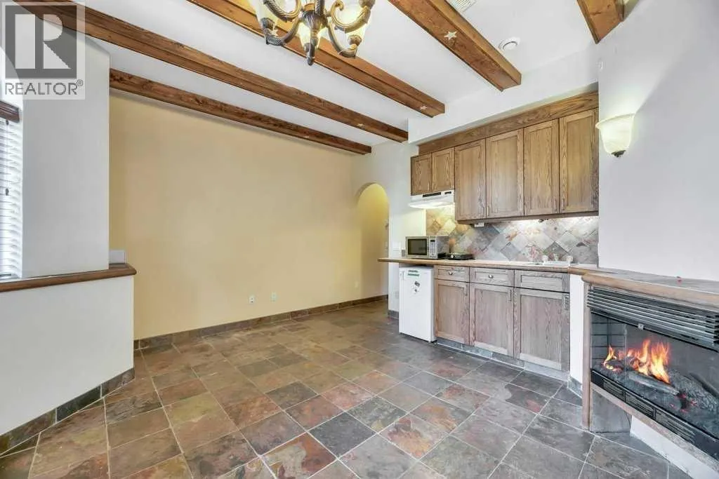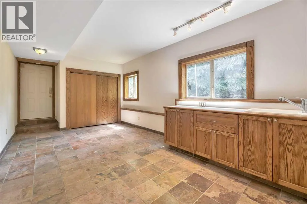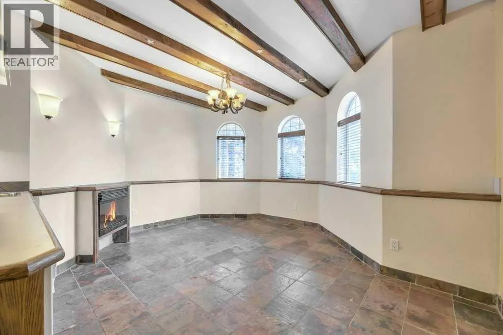 Nestled on a beautifully landscaped 1/3 acre lot adorned with mature trees, this German-inspired masterpiece offers timeless character & thoughtful design at every turn. Across the street from the lake, this one-of-a-kind home boasts stunning curb appeal with lush garden areas, complemented by abundant off-street parking & an additional poured parking pad with roughed-in in-floor heating â ready for a future garage. Inside, you're greeted by intricate custom woodwork, hand-carved detailing, slate flooring, cozy in-floor heating throughout both levels of the home & a custom front-entry fountain. The roof features tiles with a remarkable 50-year lifespan, ensuring peace of mind for years to come.As you ascend to the main level, be captivated by soaring vaulted ceilings with exposed wood beams, stained-glass accents & expansive west-facing windows that fill the space with natural light. The open-concept living & dining area centers around a charming wood-burning fireplace & beautifully crafted built-in cabinetry, blending comfort with artisan craftsmanship. Just off the dining area, a bonus room awaits â ideal as a reading nook, plant retreat, or serene home office. Step out onto the large west-facing deck to enjoy the built-in pizza oven, retractable awning & even a dumbwaiter to easily transport firewood from the ground level. The entire home has ample storage â cleverly built above the closets & on the sides of fireplaces.The kitchen is a chefâs delight, with ample prep space, a gas cooktop, built-in work station and a skylight for added light. There are 2 bedrooms on the main level feature soaring custom wood ceilings, with the primary suite offering his-and-hers closets, a cozy electric fireplace, dual window seats, and a luxurious five-piece ensuite. A convenient main floor laundry room with even more storage & a workspace as well as a stylish three-piece bathroom complete the main level.Downstairs, the lower level offers incredible flexibility, including a spacious cold room, 2 separate grade-level entrances, and two more bedrooms â each with distinctive features. One bedroom includes a mini bar, another boasts a kitchenette, open beam ceilings, electric fireplace, & walk-in closet (with a window) with space for a private office. The third versatile room could easily serve as a secondary kitchen or home office, with its own entrance & sink. A 3-piece bathroom rounds out this impressive lower level.The oversized, heated garage (19'9" x 27'5") includes an integrated workshop & abundant storage options. With instant hot water, quality finishes throughout, & exceptional attention to detail, this home offers a rare combination of craftsmanship, functionality & warmth â a true lakeside gem unlike any other. (id:27476)