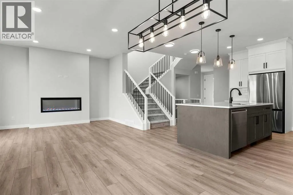 Welcome to 315 Kinniburgh Loop â a beautifully upgraded 3-bedroom, 2.5-bathroom home offered at a very competitive price. Built by Golden Homes, this residence combines luxury finishes, smart functionality, and modern comfort in one of Chestermereâs most desirable communities.The main floor offers a bright, open-concept layout ideal for both entertaining and everyday living. A spacious living room flows into a dedicated dining area and a stylish two-tone kitchen featuring quartz countertops, stainless steel appliances, built-in pantry, and a fully equipped spice kitchen. A tucked-away half bathroom provides extra privacy, and direct access to the double attached garage adds daily convenience.Upstairs, youâll find three well-sized bedrooms, including a luxurious primary bedroom with a spa-inspired 5-piece ensuite complete with a freestanding tub, fully tiled shower, dual vanities, and a massive walk-in closet with custom built-in shelving. Two additional bedrooms share a beautifully finished 4-piece bathroom, and a convenient upper-floor laundry room completes the space.Additional upgrades include 9-foot ceilings and 8-foot doors on the main floor, black spindle railings, black hardware and designer lighting throughout, oversized triple-pane windows, built-in MDF shelving, finished stairs to the basement, a closed-off mechanical room, gas line for BBQ hookup, and rough-in for solar panels.315 Kinniburgh Loop showcases Golden Homesâ commitment to quality, craftsmanship, and functional design. With luxury finishes, a thoughtful layout, and attention to detail, this home offers exceptional value in a prime location. (id:27476)
