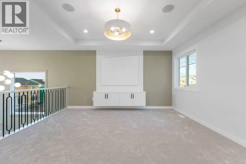 This remarkable semi-estate property offers an exceptional blend of luxury, space, and functionality, designed to impress from the moment you arrive. Situated on a conventional lot, the home boasts a triple car garage and features 9-foot ceilings on all three levels, enhancing the sense of openness and sophistication throughout. As you step inside, you're greeted by a dramatic open-to-below foyer with custom feature walls that set the tone for the elegance found across the home. The main floor is thoughtfully designed with a full bedroom and full bathroom, perfect for guests or multi-generational living. A large living area centers around a beautiful gas fireplace with built-in features, while a spice kitchen adds functionality and convenience. The heart of the home is the gourmet kitchen, complete with built-in appliances and a massive island â an ideal space for entertaining and culinary creativity. Upstairs, youâll find two spacious primary bedrooms. The main primary suite offers a luxurious 6-piece ensuite and a generous walk-in closet, while the second primary features its own elegant 5-piece ensuite. Two additional bedrooms share a third bathroom and are complemented by a huge bonus area, perfect for a media room or play space. A conveniently located laundry room completes the upper floor. The walkout basement is filled with natural light, thanks to oversized windows, and presents endless opportunities for future development â whether you're envisioning a huge recreational area, home gym, or entertainment area. With its thoughtful layout, upscale finishes, and room to grow, this home truly offers a lot to explore and even more to love. (id:27476)