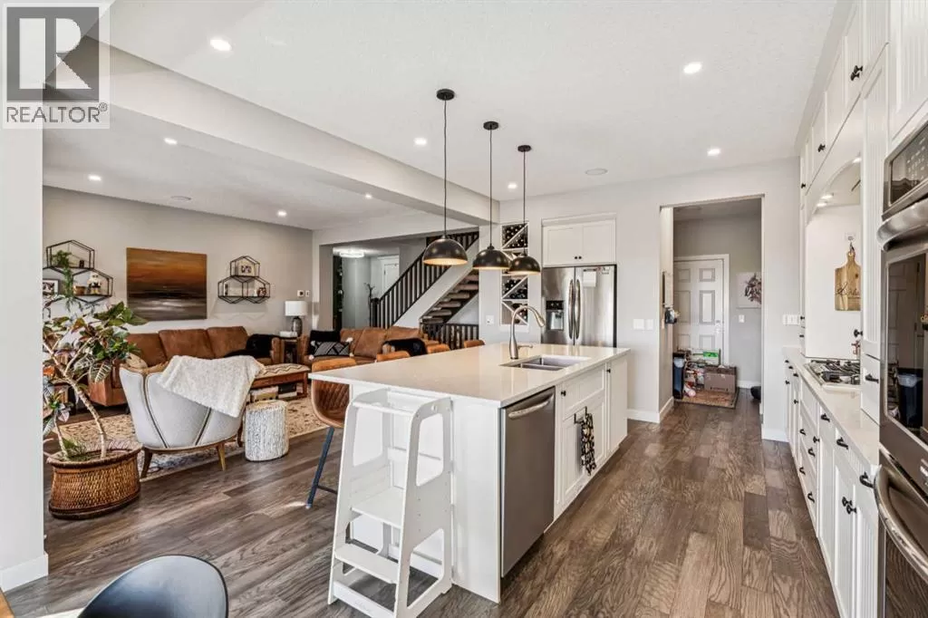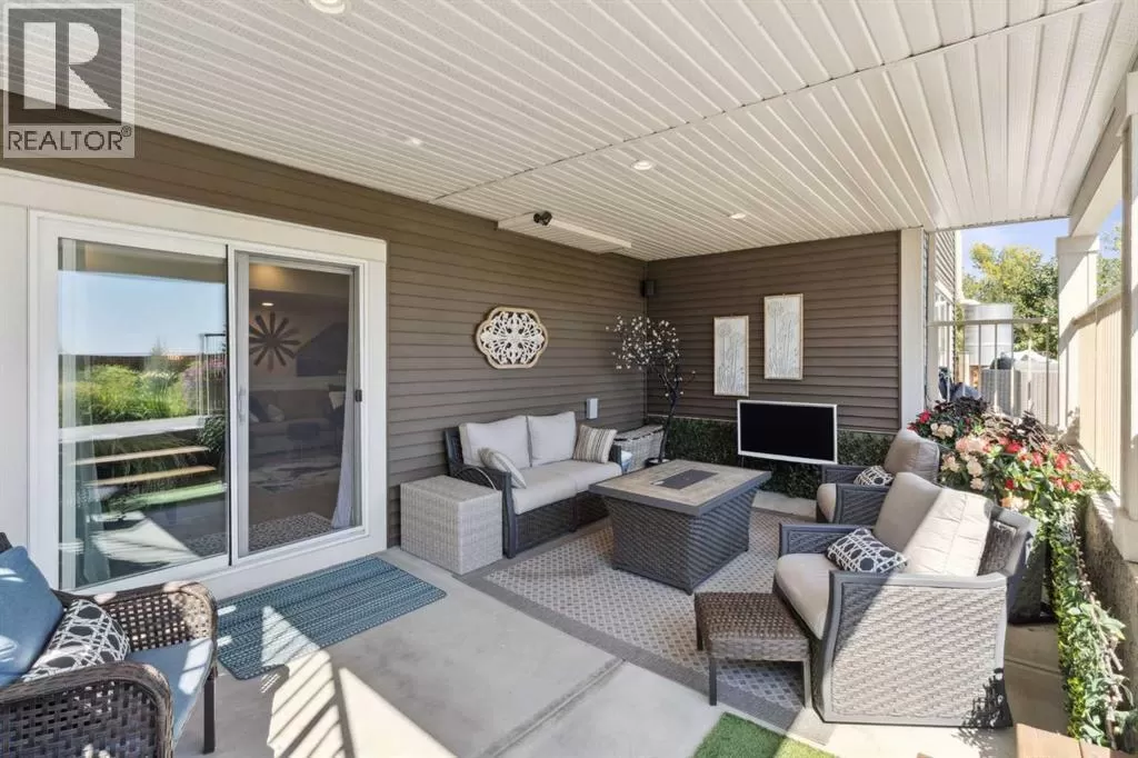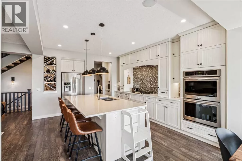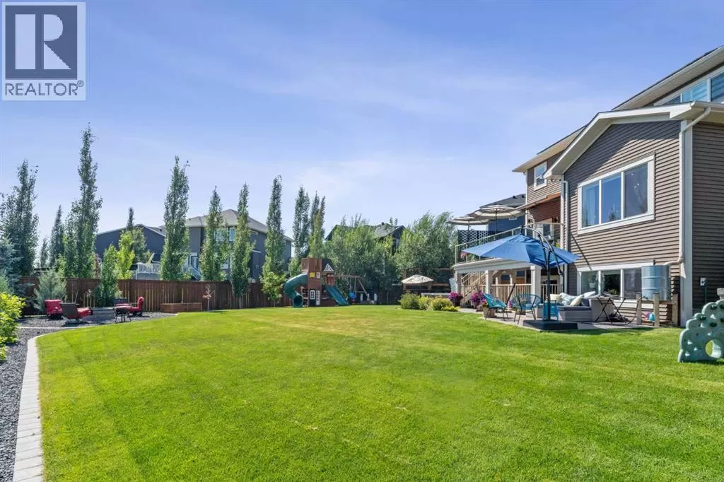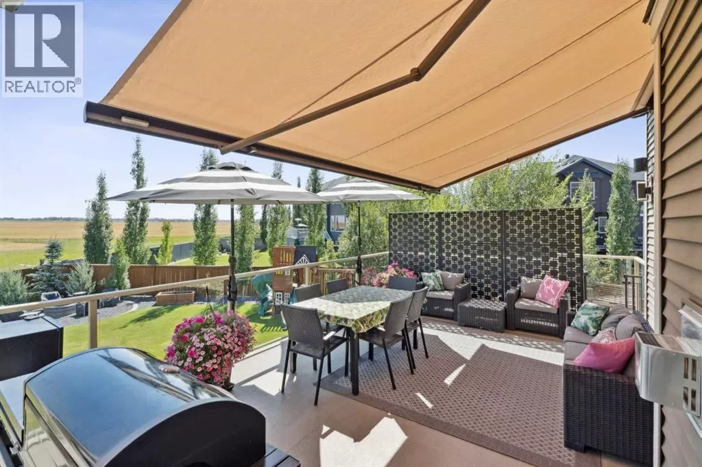 Step into this beautifully designed home through a bright and inviting foyer, featuring modern light fixtures and ample closet spaceâsetting the stage for the sophistication found throughout this SOLAR POWERED home.Just off the main entry, you'll find a well-appointed half bath and a versatile flex roomâideal as a home office, playroom, or guest suite.The open-concept main living area is designed for both entertaining and everyday comfort. The spacious family room flows seamlessly into the dining area and showstopping kitchen, all framed by large windows that capture stunning prairie views.The gourmet kitchen features dual ovens, a 5-burner gas cooktop, sleek countertops, elegant backsplash, and ample prep and storage space. A dedicated nook offers the perfect setup for a coffee bar or extra appliances. A gas line is ready for outdoor grilling on the upper deck, which includes a retractable awning for shade and comfort.Off the kitchen, a large mudroom with custom built-ins leads to a generous 3-car garageâkeeping life organized and efficient.Upstairs, youâll find four bright and spacious bedrooms. One includes a built-in Murphy bed for added flexibility. A vaulted-ceiling bonus room provides the perfect space for movie nights, gaming, or a quiet retreat.The luxurious primary suite overlooks uninterrupted prairie views with no rear neighbors. The spa-inspired ensuite features a soaking tub, dual vanities, a large glass shower, and tile finishes. A massive walk-through closet connects directly to the upstairs laundry room for maximum convenience.The finished lower level has been extensively renovated to add a fully legalized in-law suite that expands your living space with a cozy sitting area and fireplace, a second kitchenâideal for multi-generational living or guestsâa large bedroom, and a full bathroom with custom walk-in closet. A second laundry area with stacked washer and dryer adds extra practicality.In-ceiling speakers throughout the home and o utdoor areas create the perfect ambiance for entertaining. Step out onto the beautifully landscaped yard, complete with irrigation system and four raised garden beds. Five unique outdoor seating areas, including a fire pit space, make this backyard ideal for gatherings, relaxing, or play.A charming playhouse and hot tub (both negotiable) offer even more ways to enjoy this incredible outdoor retreat.This exceptional home combines thoughtful design, high-end finishes, and unmatched comfortâinside and out. Come experience the perfect blend of elegance, space, and functionality. (id:27476)