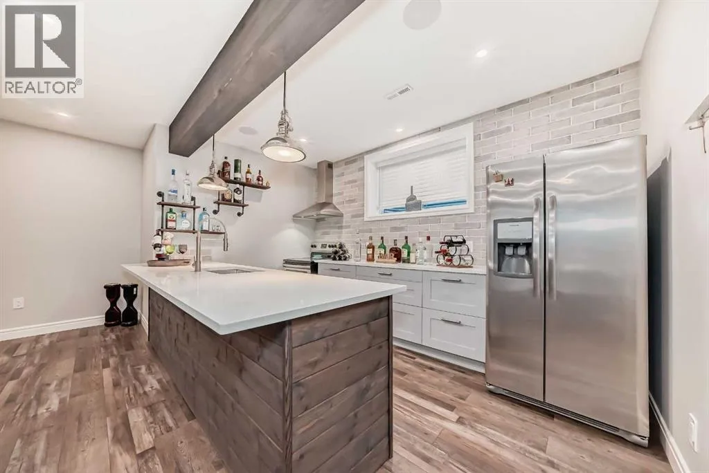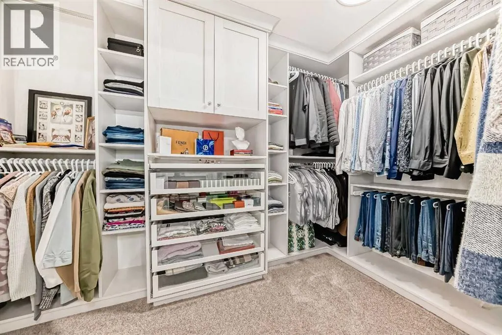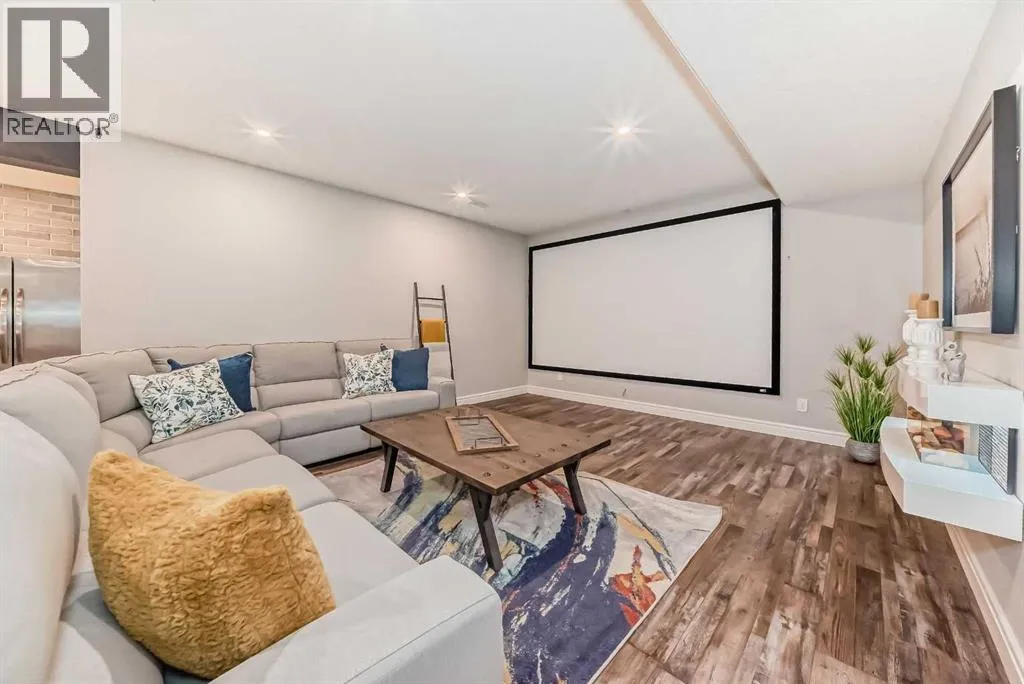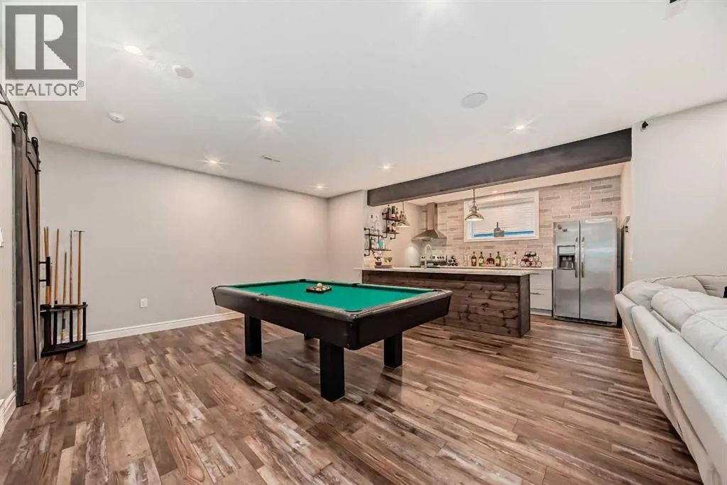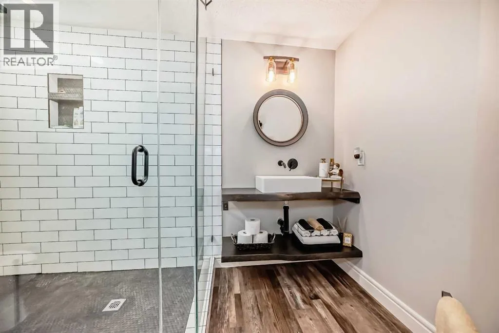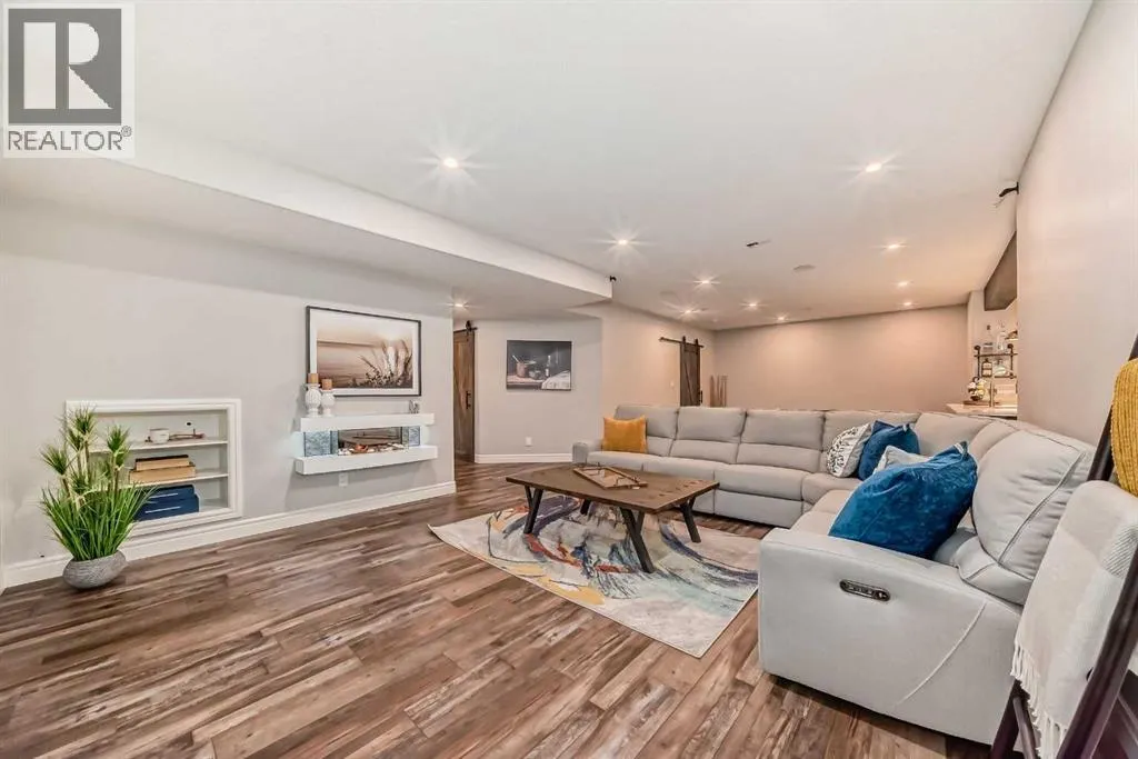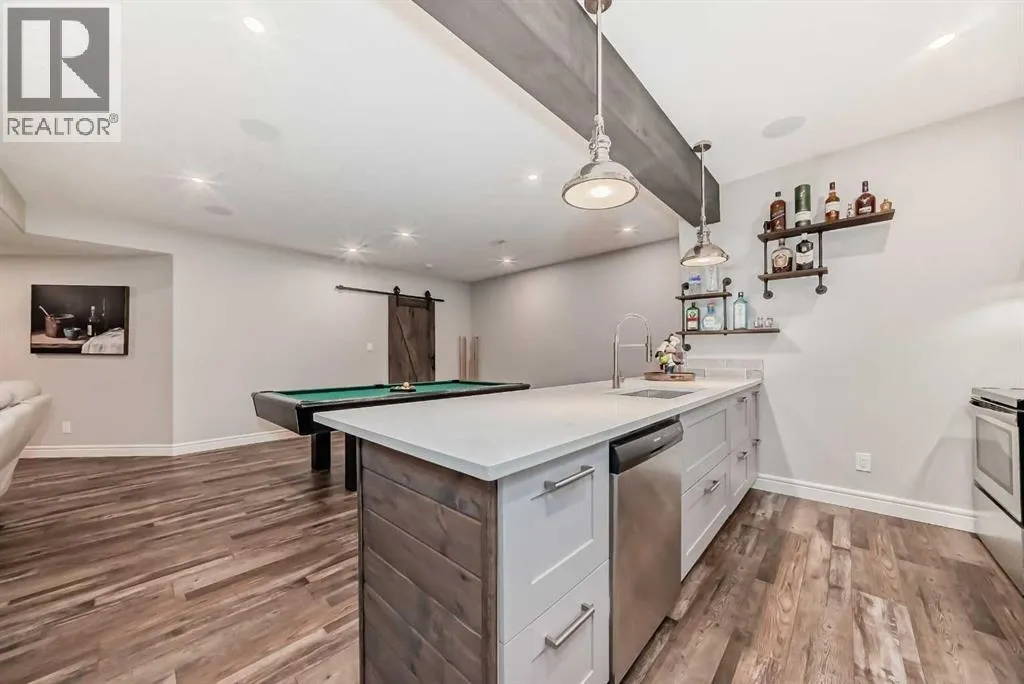 Welcome to this stunning executive home featuring a triple car garage and over 4,098 sq. ft. of beautifully designed living space. With 5 bedrooms, 4 bathrooms, and a main floor office, this residence is nestled on one of Chestermereâs most tranquil and sought-after streets. This home is loaded with high-end finishes and thoughtful upgrades, including new carpet, rich hardwood floors, granite countertops, upgraded and recessed lighting, and a chefâs kitchen outfitted with premium built-in Bosch stainless steel appliances. Additional features include two air conditioning units, central vacuum, built-in speakers, CCTV security cameras, a heated garage, and an exposed aggregate concrete driveway. As you step through the front door, youâre welcomed by a spacious foyer featuring a built-in bench and coat hooks. Just off the entry is a beautifully designed home office, perfectly placed for privacy and productivity. The main floor boasts an open-concept layout ideal for entertaining. The family room offers plenty of seating space and a cozy gas fireplace with a floor-to-ceiling stone surround. The chefâs kitchen is a dream, featuring Bosch built-in stainless-steel appliances, a gas cooktop with a custom hood fan canopy, granite counters, and a kitchen island with a built-in bar fridge for extra beverage storage. A walk-through butlerâs pantry with a prep sink provides additional storage and connects seamlessly to the mudroom, which includes built-in cabinetry, a bench, and coat hooks. The dining area is located at the back of the home, filled with natural light from large windows and providing easy access to the backyard. A conveniently located 2-piece bathroom completes the main level. The backyard is a true outdoor retreat with a covered deck, a generous grassy area with mature trees, and a stamped concrete pathway leading to a separate patio with seating around a cozy fire pit â ideal for relaxing or entertaining guests. Upstairs, you'll find four generously sized bed rooms, each featuring custom-built walk-in closets. A bright and spacious bonus room with vaulted ceilings offers additional space for relaxation or play. The luxurious primary suite is the ultimate retreat with tray ceilings, a spa-inspired 5-piece ensuite that includes dual vanities, a freestanding soaker tub, a custom tile shower with bench, and a massive walk-in closet with custom built-ins. A full 4-piece bathroom and a well-placed laundry room complete the upper level. The fully finished basement is designed for entertaining, with 9-foot ceilings and a large open family and recreation area. A stylish wet bar includes an island with a fridge, stove, and dishwasher â perfect for hosting. The lower level also features a fifth bedroom and a modern 3-piece bathroom with a custom walk-in shower. (id:27476)