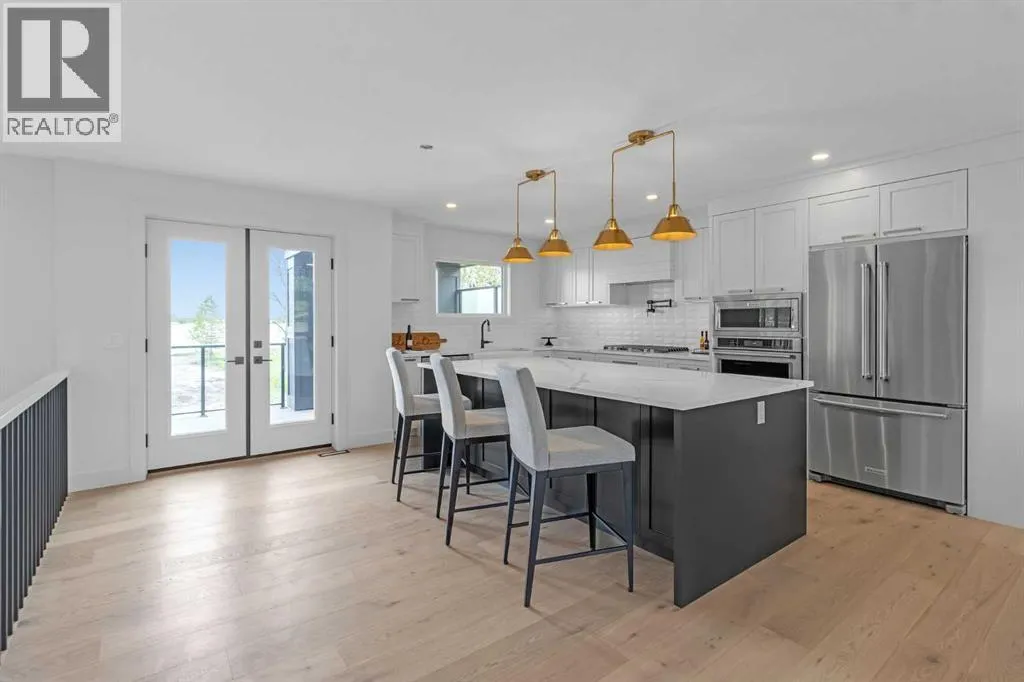 INSTANT EQUITY OF OVER 300K PLUS QUICK POSSESSION HOME !!! A CUSTOM DESIGNED LAKE FRONT MARVEL by SuiGeneris Homes! COMPLETELY RENOVATED DOWN TO THE STUDS WITH ALL NEW ELECTRICAL WIRING, PLUMBING, WINDOWS, SIDING, HUGE MAIN FLOOR DECK,MASTER SUITE PRIVATE LAKE FRONT DECK, Epoxy finish on garage floor. Oversized 2 car garage with epoxy floors, NEW FLOORING, NEW GARAGE DOOR, NEW HVAC, ALL NEW ROOFING, WINDOWS, DOORS, SPRAY FOAM INSULATION THROUGHOUT THE HOUSE AND MORE! COMPLETED WITH A NEW FLOOR PLAN AND ADDITION TO THE HOUSE. Sitting on a HUGE LOT THAT IS RIGHT ON THE LAKE with over 4,200 sq ft of living space. This well planned floor plan offers 5 Beds, 1 flex area, 5.5 baths & an attached OVERSIZED 2 car Garage. 3 ENSUITE BEDROOMS!!! ONLY 10 MINUTES TO/FROM CALGARY. The professionally designed interior is an elegant balance of light tan hardwood floors with white and grey walls and black finishing. The combination of Large windows and Vaulted ceilings in the living areas and bedrooms give lots of natural light to the living areas. In addition to the lake views, enjoy the views of the golf course from 2 bedrooms and a loft on the upper floor. Other features include Paved, drive through driveway, rich combination of Smooth Acrylic Stucco, stone & batten boards on exterior, Custom Cold Air Return Grills, Built in custom closet systems, ship lap feature walls, 2 fire places on main floor and one in master bedroom, Roughed-in Smart monitoring systems, Hardwood Flush Mount Vents in hardwood areas, open riser stairs, 5â Engineered Hard Wood on main floor, LVP basement floors and mudroom, premium carpet, Custom Shower Base with tile to ceilings in all showers, Premium Delta Plumbing package, 36â lower cabinets. All vanities have upgraded drawer style fronts, 8â Stone back splash, High efficiency Tankless Water Heater, Roughed-in Garburator, roughed-in Central Vacuum, High Efficiency Furnace & Smart Thermostat, BBQ Gas line and roughed in garage heater. The kitchen feat ures include a deluxe Kitchen Aid appliance package with waterline to the fridge. Offering Quick and easy access to highway 16, Downtown Calgary, lots of shopping at the nearby East Hills Mall, restaurants, nearby schools and other conveniences. Drive through drive way with fully completed landscaping. MOVE IN READY HOME. READY FOR QUICK POSSESSION (id:27476)