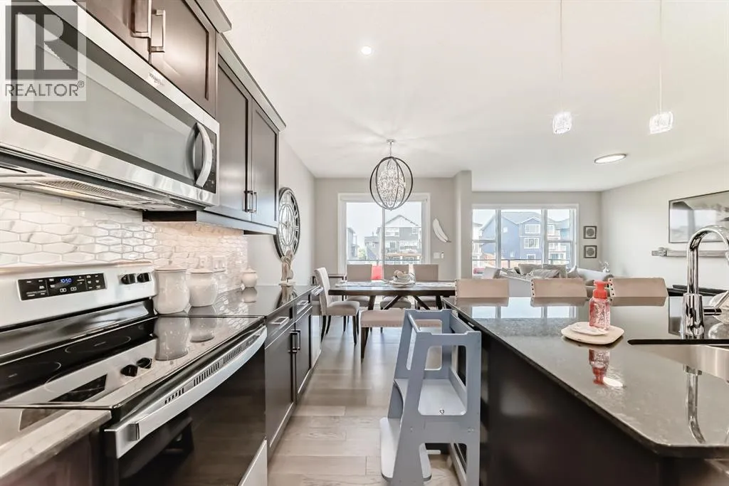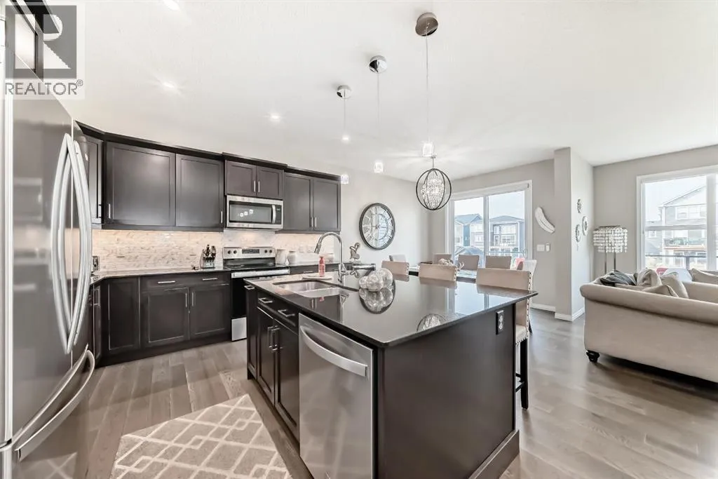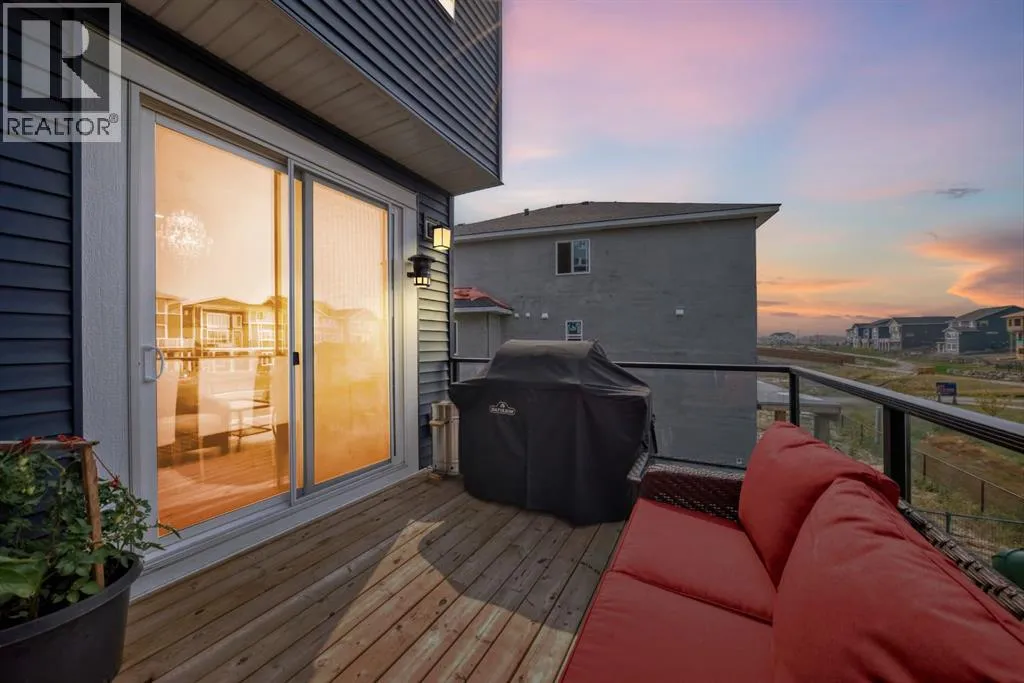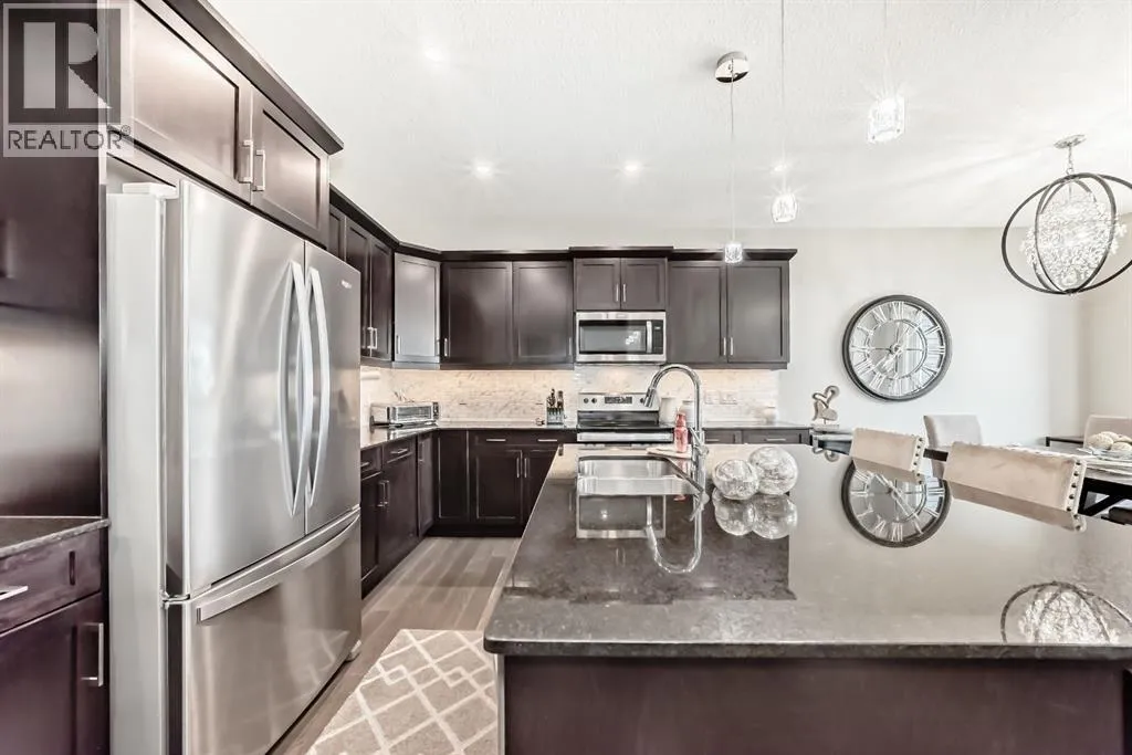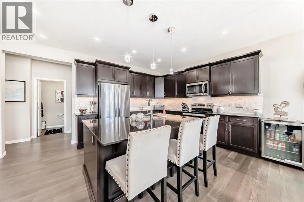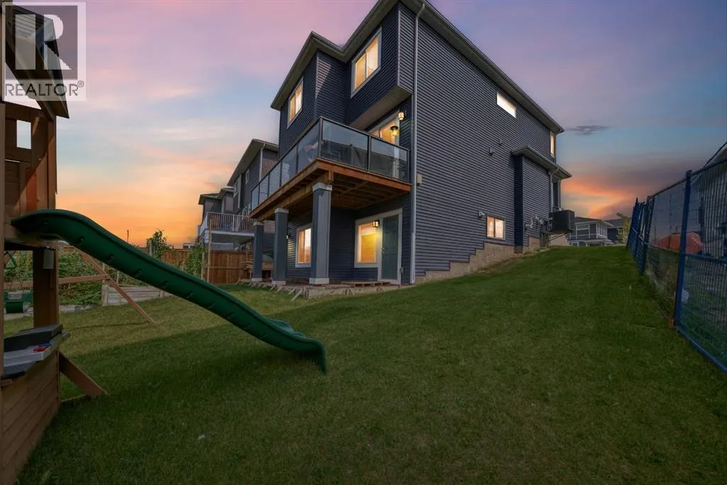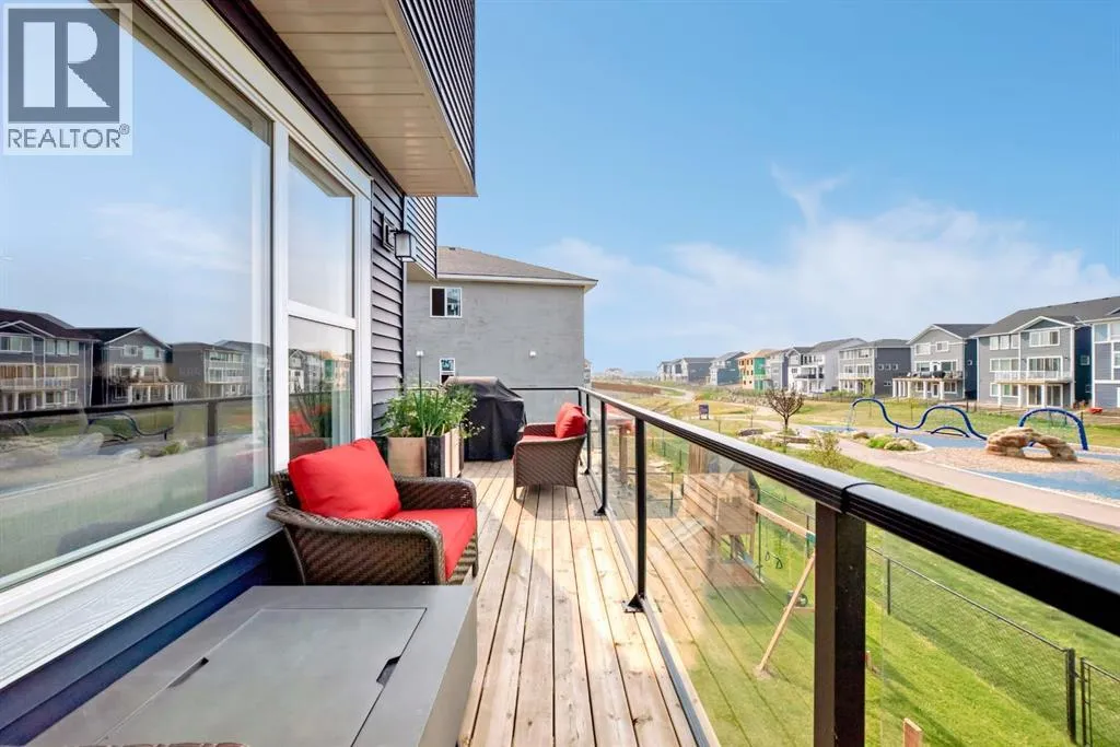 $6000 BUYER CLOSING CREDIT accepted offer before November 30! Thoughtfully designed, fully developed home located on a quiet street in the highly desirable community of Chelsea in Chestermere. Built just three years ago by Trico Homes, this property blends modern function with upscale finishes and sits on a beautifully landscaped, pie-shaped lot backing directly onto green space and a playground â ideal for families and those who appreciate open, sunny views. From the moment you arrive, the upgraded exposed aggregate driveway, stone-accented exterior, and custom Gemstone lighting create striking curb appeal. Step inside to discover high ceilings, a bright, open layout, and timeless finishes throughout. The kitchen is equipped with designer cabinetry, stone countertops, stainless steel appliances, under-cabinet lighting, and a plumbed fridge. A wooden mantle feature adds warmth to the main living area, and Wi-Fi boosters installed on the upper floor ensure seamless connectivity throughout the home. Upstairs, the primary suite is a standout, featuring a spa-inspired ensuite with a soaker tub, dual vanities, and a large walk-in closet. The drapes in the primary bedroom are included for added convenience. Every detail has been carefully considered to create a space that is both stylish and functional. The professionally finished walkout basement, completed by the builder, offers additional living space and is prepped for a ceiling-mounted projector â ideal for a future home theatre or entertainment area. A 75-gallon gas water tank, HRV system, and high-efficiency mechanical systems support the homeâs overall performance and comfort. Outdoor living is where this home truly shines. The sunny, west-facing backyard offers all-day natural light and is fully landscaped with lush green grass, a thriving vegetable garden, and an extended deck with aluminum and glass railings that overlook the park and greenway. The lot is fenced on one side and provides a spacious, private outd oor retreat. A rough-in for an EV charger in the garage, a built-in storage loft, and a 4-ton central air conditioning unit (with cover) add even more value and convenience. For peace of mind, the property is equipped with a Supreme security system that includes a smart panel, doorbell camera, outdoor garage camera, and backyard camera. Chestermere Lake is popular for boating, paddleboarding, and lakeside picnicsâperfect for a quick getaway just minutes from Chelsea, Chestermereâs most exciting new community with quick access to schools, shopping, and Calgary via the nearby ring road. This home offers the perfect blend of location, lifestyle, and long-term value. Donât miss your chance book your private showing today. Featured by Tyler Hassan on social media! (id:27476)