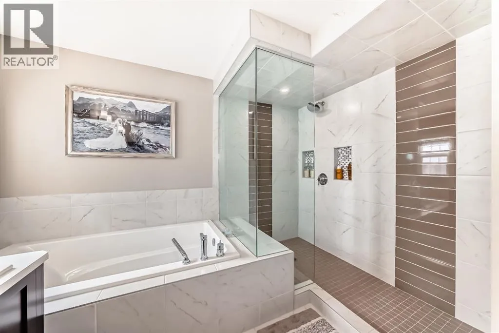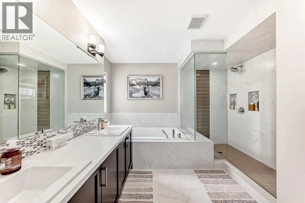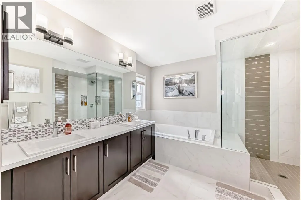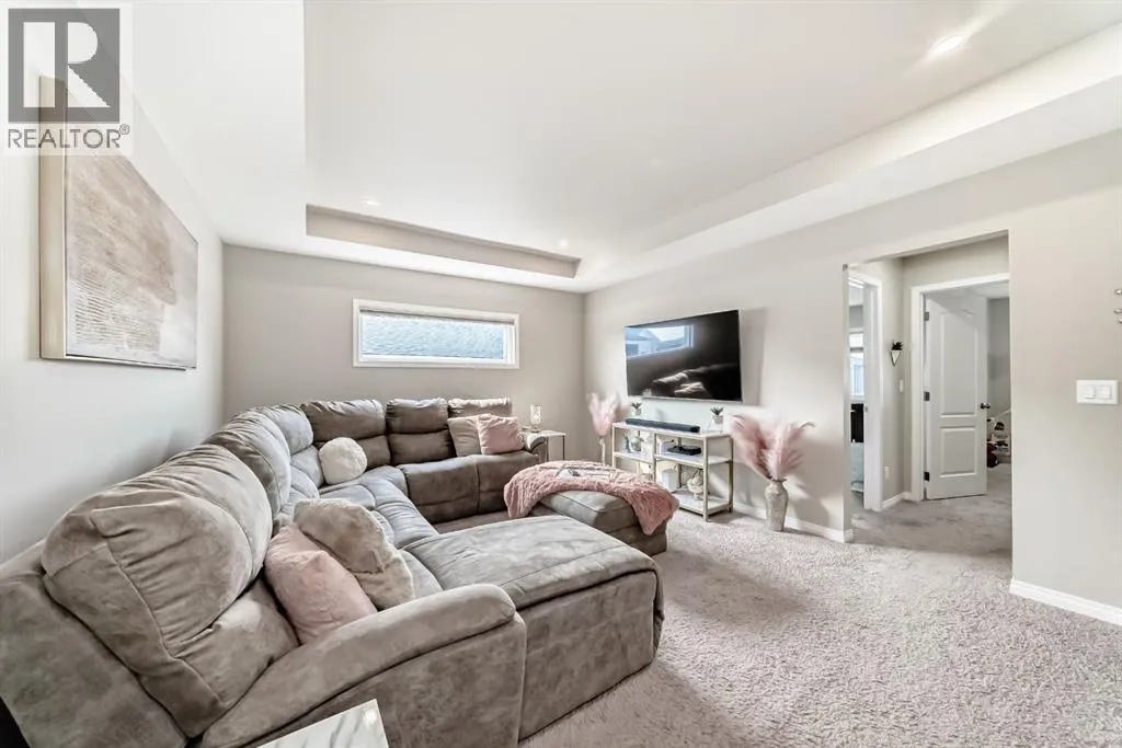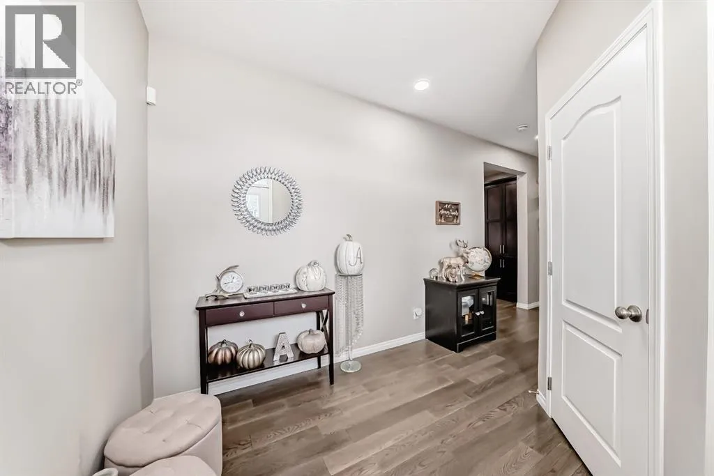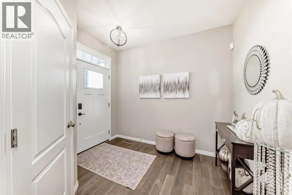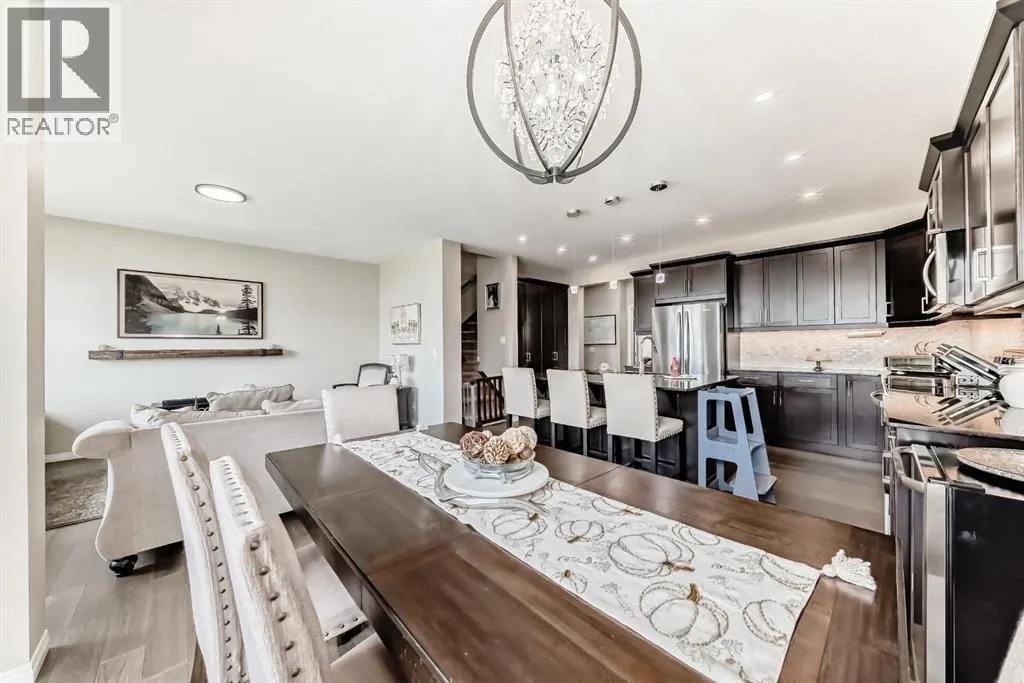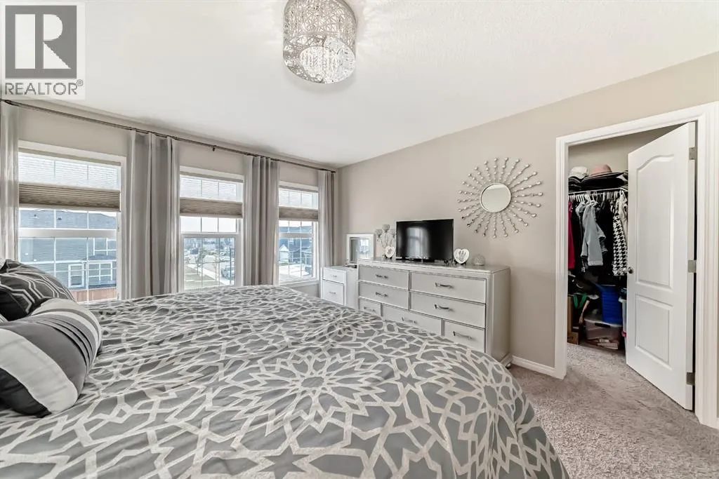 $6000 BUYER CLOSING CREDIT accepted offer before November 30! Thoughtfully designed, fully developed home located on a quiet street in the highly desirable community of Chelsea in Chestermere. Built just three years ago by Trico Homes, this property blends modern function with upscale finishes and sits on a beautifully landscaped, pie-shaped lot backing directly onto green space and a playground â ideal for families and those who appreciate open, sunny views. From the moment you arrive, the upgraded exposed aggregate driveway, stone-accented exterior, and custom Gemstone lighting create striking curb appeal. Step inside to discover high ceilings, a bright, open layout, and timeless finishes throughout. The kitchen is equipped with designer cabinetry, stone countertops, stainless steel appliances, under-cabinet lighting, and a plumbed fridge. A wooden mantle feature adds warmth to the main living area, and Wi-Fi boosters installed on the upper floor ensure seamless connectivity throughout the home. Upstairs, the primary suite is a standout, featuring a spa-inspired ensuite with a soaker tub, dual vanities, and a large walk-in closet. The drapes in the primary bedroom are included for added convenience. Every detail has been carefully considered to create a space that is both stylish and functional. The professionally finished walkout basement, completed by the builder, offers additional living space and is prepped for a ceiling-mounted projector â ideal for a future home theatre or entertainment area. A 75-gallon gas water tank, HRV system, and high-efficiency mechanical systems support the homeâs overall performance and comfort. Outdoor living is where this home truly shines. The sunny, west-facing backyard offers all-day natural light and is fully landscaped with lush green grass, a thriving vegetable garden, and an extended deck with aluminum and glass railings that overlook the park and greenway. The lot is fenced on one side and provides a spacious, private outd oor retreat. A rough-in for an EV charger in the garage, a built-in storage loft, and a 4-ton central air conditioning unit (with cover) add even more value and convenience. For peace of mind, the property is equipped with a Supreme security system that includes a smart panel, doorbell camera, outdoor garage camera, and backyard camera. Chestermere Lake is popular for boating, paddleboarding, and lakeside picnicsâperfect for a quick getaway just minutes from Chelsea, Chestermereâs most exciting new community with quick access to schools, shopping, and Calgary via the nearby ring road. This home offers the perfect blend of location, lifestyle, and long-term value. Donât miss your chance book your private showing today. Featured by Tyler Hassan on social media! (id:27476)
