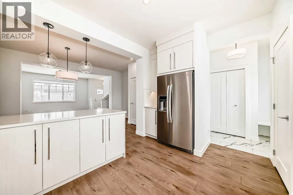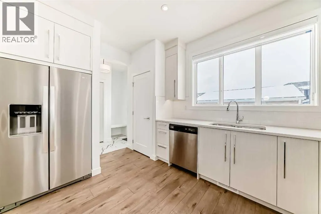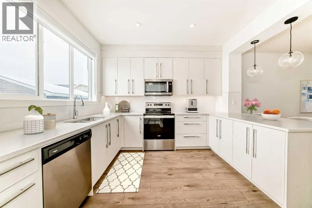 Welcome to this stunning 3-bedroom, 2.5-bathroom, over 1400 sqft Truman-built home in Dawson Landing, offering the perfect blend of comfort, convenience, and style. Ideally located across from a charming green space with picnic tables and a safe zone for children to play, this home is the perfect family retreat. The main level offers a spacious open floor plan with a large kitchen featuring sleek stainless-steel appliances, elegant quartz countertops, and soft-close cabinets. A massive window overlooks the backyard, filling the kitchen with natural light and creating a warm, inviting atmosphere. The bright living room, complete with large windows, offers scenic views of the green space, providing a peaceful and serene setting for daily living. LVP/LVT flooring throughout. Upstairs, youâll find three thoughtfully designed bedrooms. The primary bedroom is featuring a private 3-piece ensuite bathroom, a generous walk-in closet, and plenty of natural light. A 4-piece bathroom serves the other two bedrooms. For added convenience, thereâs an upstairs laundry room to make daily chores a breeze. The full-size basement is awaiting your personal touch, offering endless possibilities for customization.This home also features a two-piece washroom on the main floor, a large back entry with sitting space, and a good-sized closet. The large backyard includes a deck with a BBQ gas line, perfect for family gatherings or relaxing summer evenings. A double detached garage adds extra convenience, and street parking is just a short walk away.With Chestermere Lake just a stone's throw away, you'll have access to beautiful lakeside living, ideal for weekends spent by the water enjoying recreational activities.Make this dream home yours and experience the perfect balance of modern living and natural beauty, all just a short drive from Calgary! (id:27476)