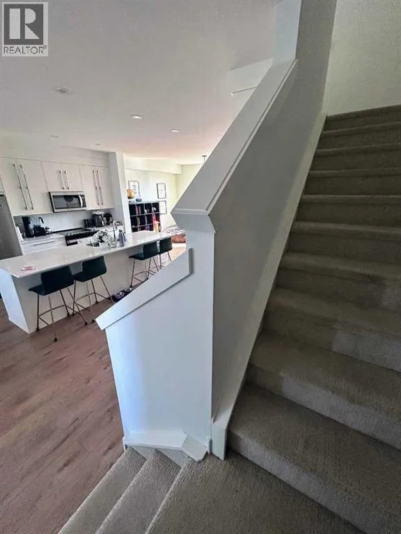 Beautifully maintained, 3 bed and 2.5 bath, like-new townhouse, with NO CONDO FEES, in Dawson Landing, very desirable area of Chestermere. This conveniently located home offers 1,560 sq ft of modern living, with an open-concept main floor, featuring a bright living, dining area, centrally located kitchen with a large kitchen island, Elegant quartz countertops, stainless steel appliances, lots of cabinetry to meet all your storage needs. 2-pc powder room, front and back entry closets completes main floor. Upstairs, youâll find a spacious primary suite with a 4-piece ensuite with double vanity and walk-in closet, 2 additional bedrooms and another 4 pc bathroom.. The unfinished basement is ready for your creativity, currently being used as gym, storage needs. Fully landscaped front and backyard, fully fenced with double detached garage in the back with key-less entry gives you all amenities of a full house with a lower price tag. This home is located near shopping, parks, walkways and yet away from noisy main roads, makes it very desirable for living thus making very attractive rentals. Great investment opportunity in declining interest rate environment. Call your favorite realtor to book a showing!! (id:27476)