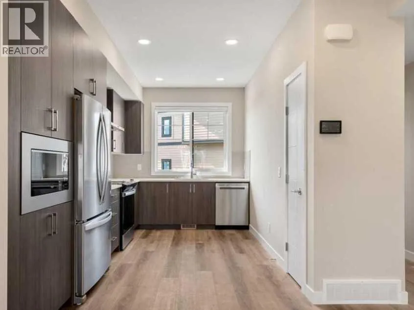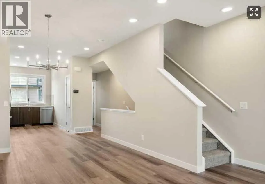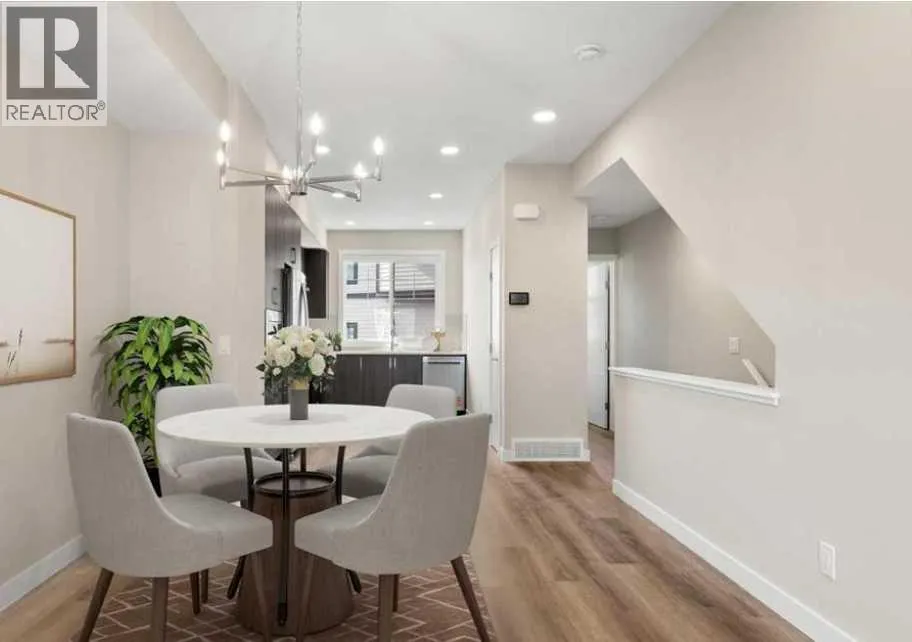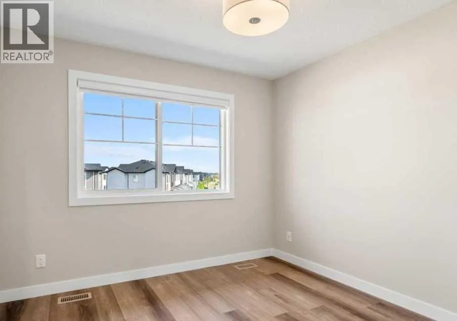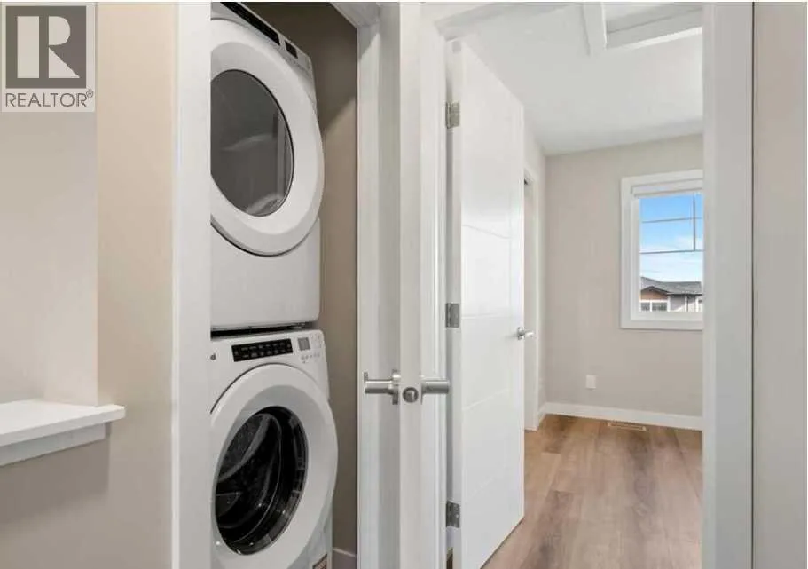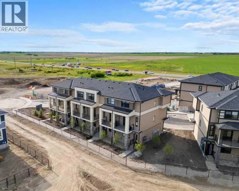 Welcome to Chelsea Court, a stylish two-bedroom, two-and-a-half-bathroom townhome in Chestermereâs vibrant Chelsea community. With over 1,100 sqft of thoughtfully designed living space, the open-concept main floor connects the kitchen, dining, and living areas, enhanced by large windows and air conditioning rough-ins. The kitchen features quartz countertops, rich cabinetry, and stainless steel appliances, with a half bath completing the level. Upstairs, the primary bedroom offers a four-piece ensuite and spacious closet, while the second bedroom has its own ensuite and walk-in. Laundry is conveniently upstairs as well. Durable Hardie board siding, a double tandem garage, and a private balcony add lasting value. Just minutes from Chestermere Lake, parks, shops, and Calgary access, this Trico Homes townhome offers modern comfort, convenience, and style. Photos are from a completed unit and are representative. (id:27476)
