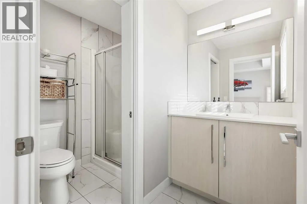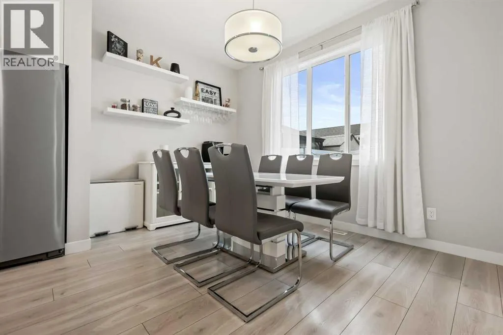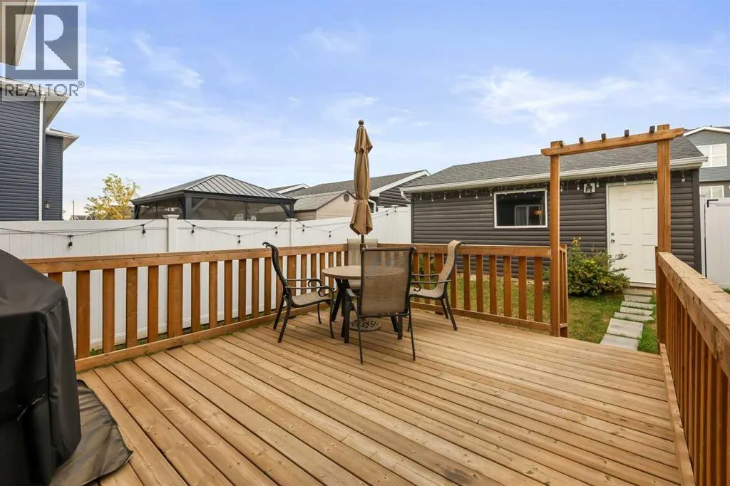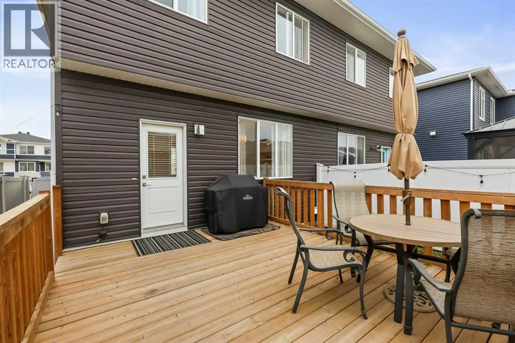 LIVE IN A LAKE COMMUNITY | FORMER SHOWHOME | NO CONDO FEES | DOUBLE DETACHED GARAGE | WEST-FACING BACKYARDLooking to live in a lake community? This is your opportunity to enjoy everything Chestermere has to offer! Perfectly located just minutes from schools, the lake, shopping, ponds, dog park, transit, pathways, and quick access to Stoney Trail, this modern 1,243 sq ft home is move-in ready.Step inside and be impressed by the chefâs kitchen featuring upgraded stainless steel appliances, quartz countertops, a full-height tile backsplash, and a sleek stainless steel under-mount sink. The open-concept main floor boasts upgraded laminate flooring, a spacious living room, a dining area, and a convenient 2-piece bath.Upstairs youâll find three bright bedrooms, each with a generous closet. The primary retreat offers a walk-in closet and private ensuite for your comfort.Your private west-facing backyard is designed for year-round enjoyment with a 15â x 13â wood deck, fenced yard, and concrete walkway leading to the oversized double detached garage. The charming front covered entry welcomes guests and adds curb appeal.Additional features include: a high-efficiency furnace, modern neutral décor, and stylish finishes throughout.This is the perfect opportunity to own in Chestermere with no condo fees and all the lifestyle benefits of a lake community.Donât waitâcall your friendly REALTOR® today to book your private showing! (id:27476)