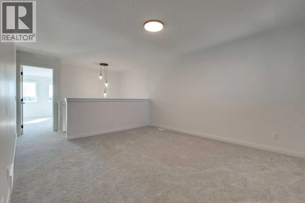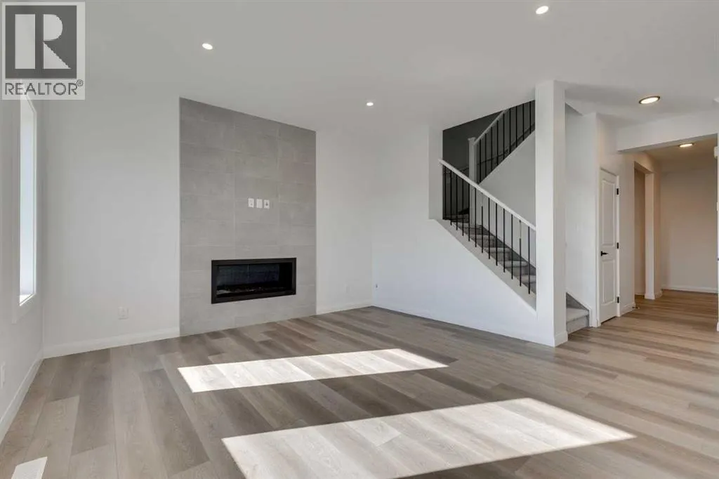 Welcome to the York by Broadview Homes in Dawsonâs LandingâThis 2,029 sq. ft. home offers 3 bedrooms, 3 full bathrooms, and a versatile main floor flex room with a full bath, perfect for guests or a home office. The heart of the home is a spacious kitchen with stainless steel appliances, plenty of counter space, and elegant finishes, opening to a bright living area complete with a cozy gas fireplace. Upstairs, enjoy a bonus room, two secondary bedrooms, and a massive primary bedroom featuring a spa-inspired ensuite and walk-in closet. With 9â ceilings on the main and basement levels, plus basement plumbing rough-ins for potential future development, this home combines style, space, and functionality. (id:27476)