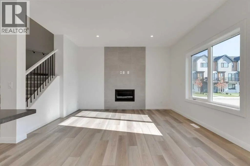 Welcome to the York by Broadview Homes in Dawsonâs Landing. This 2,029 sq. ft. home offers 3 bedrooms, 3 full bathrooms, and a versatile main floor flex room with a full bath, perfect for guests or a home office. The heart of the home is a spacious kitchen with stainless steel appliances, plenty of counter space, and elegant finishes, opening to a bright living area complete with a cozy gas fireplace. Upstairs, enjoy a bonus room, two secondary bedrooms, and a massive primary bedroom featuring a spa-inspired ensuite and walk-in closet. With 9â ceilings on the main and basement levels, plus basement plumbing rough-ins for future development, this home combines style, space, and functionality. (id:27476)