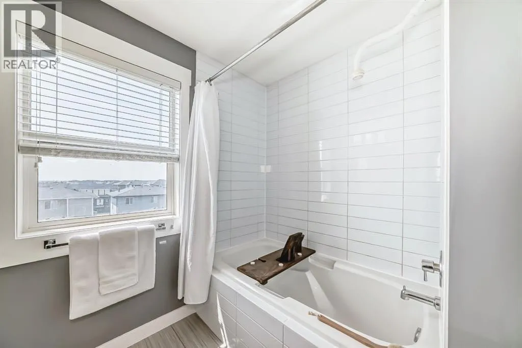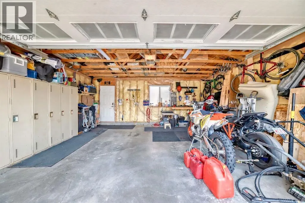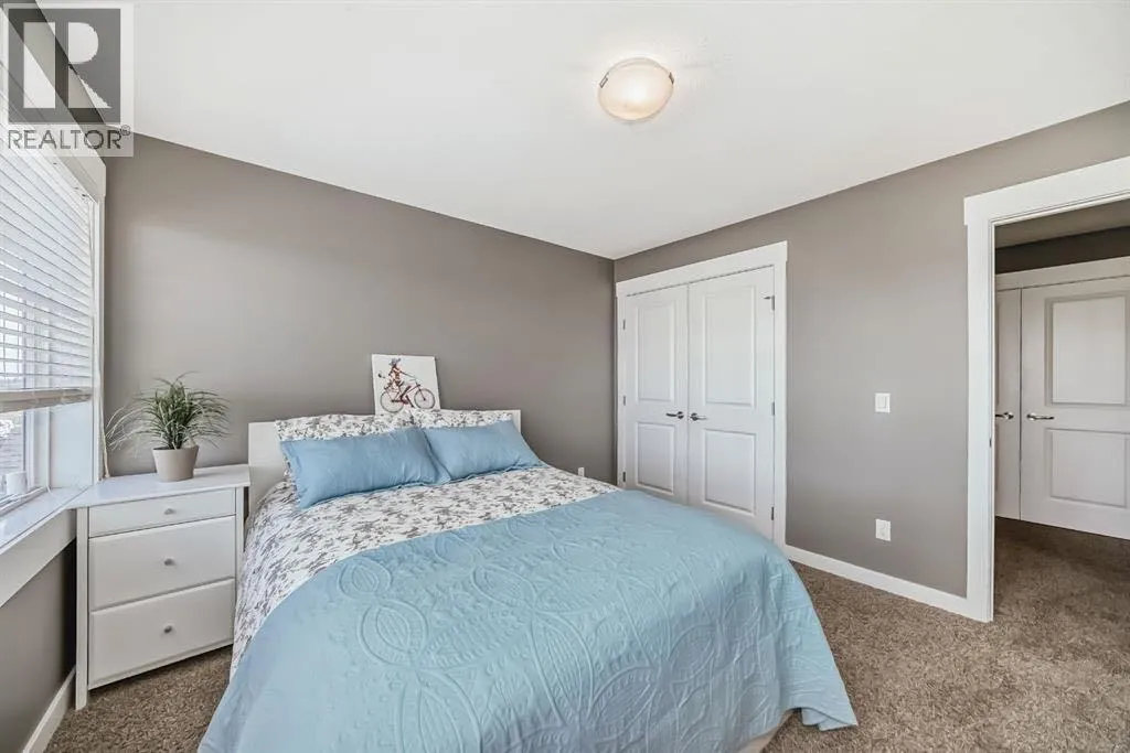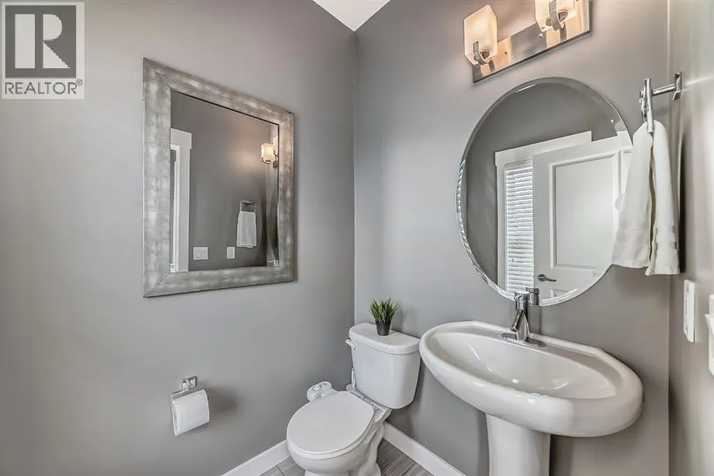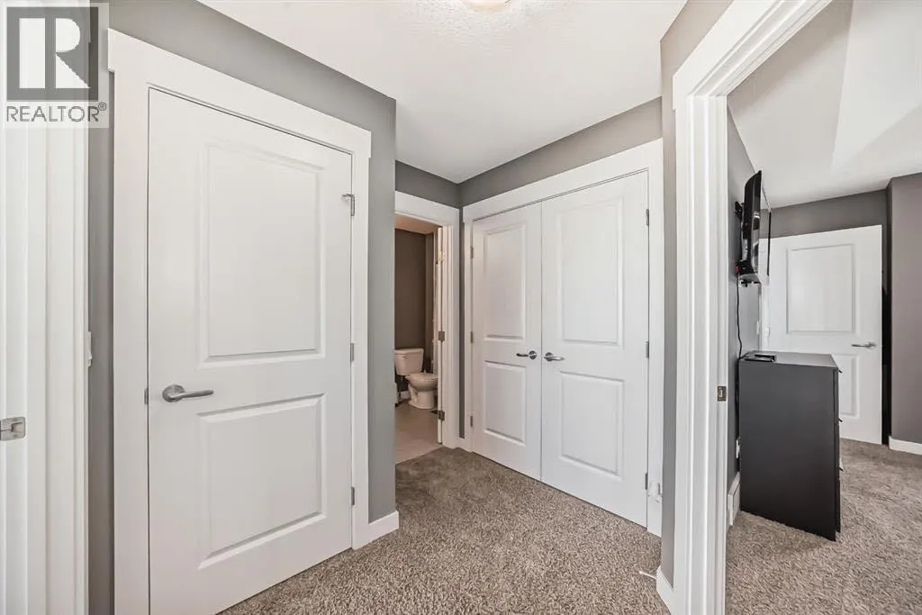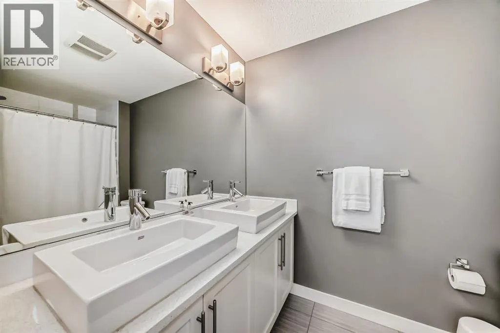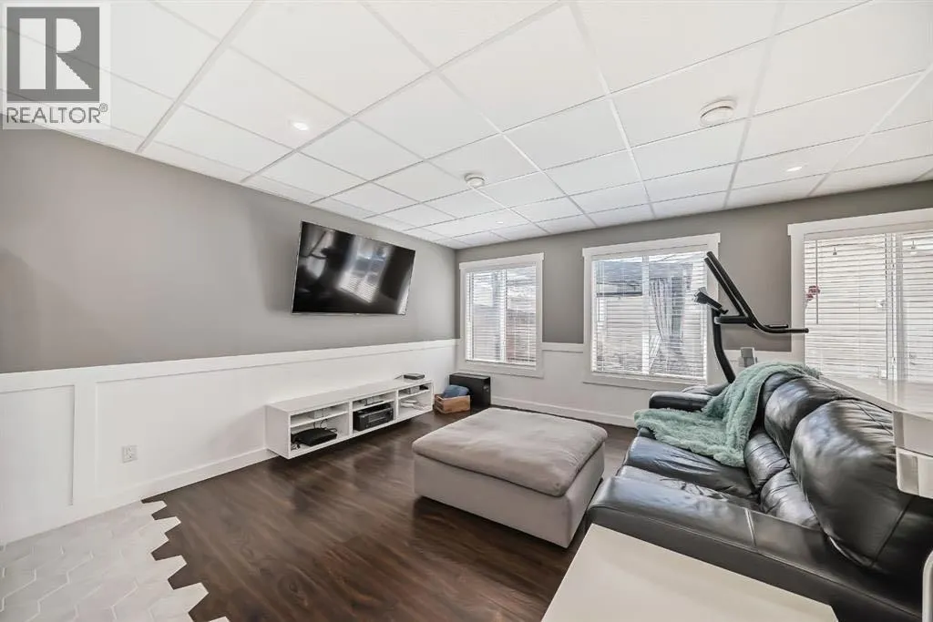 Stunning Duplex in Chestermereâs Rainbow Falls Welcome to a world of elegance and modern luxury in this breathtaking duplex, nestled in the heart of Chestermereâs coveted Rainbow Falls within the vibrant Lake Community. Meticulously crafted, this showhome-worthy residence dazzles with thoughtful upgrades and a fresh, inviting aesthetic. Exterior & Curb Appeal Charming Front Patio: Full-length patio overlooks a lush green belt, offering a warm welcome. Landscaped Backyard: Low-maintenance design with ample lounging areas for relaxation. Extended Back Deck: Complete with privacy fencing, perfect for outdoor entertaining. Oversized Double Garage: Insulated with extra-high doors, ideal for larger vehicles like trucks. Main Level Inviting Foyer: Features custom-built bench seating and intricate woodworking. Gleaming Hardwood Floors: Flow throughout, leading to a versatile flex room (office, bedroom, or more). Gourmet Kitchen: Ceiling-height white cabinetry Walk-in pantry Upgraded stainless steel appliances & gas range Expansive quartz island for prep and gatherings Sunlit Living & Dining Areas: South-facing for natural light, with a sleek gas fireplace and elegant mantel. Upper Level Primary Suite: Expansive with coffered ceilings Spa-like ensuite with dual vanities Walk-in closet with locking door for valuables Additional Bedrooms: Two generously sized rooms for flexibility (id:27476)