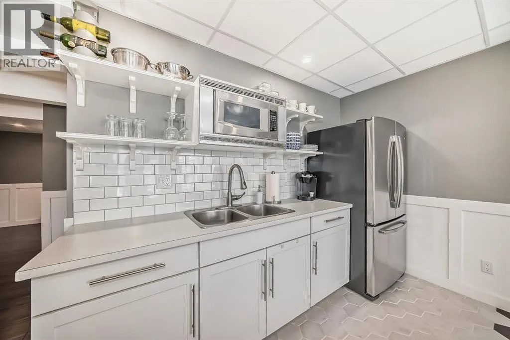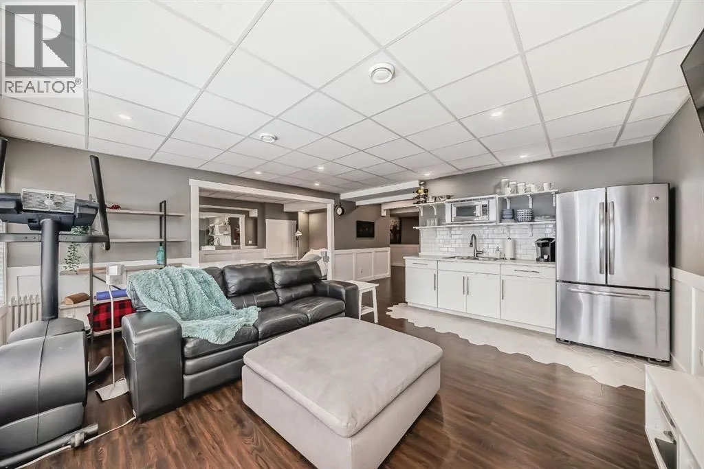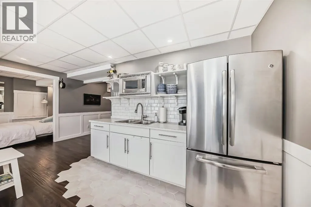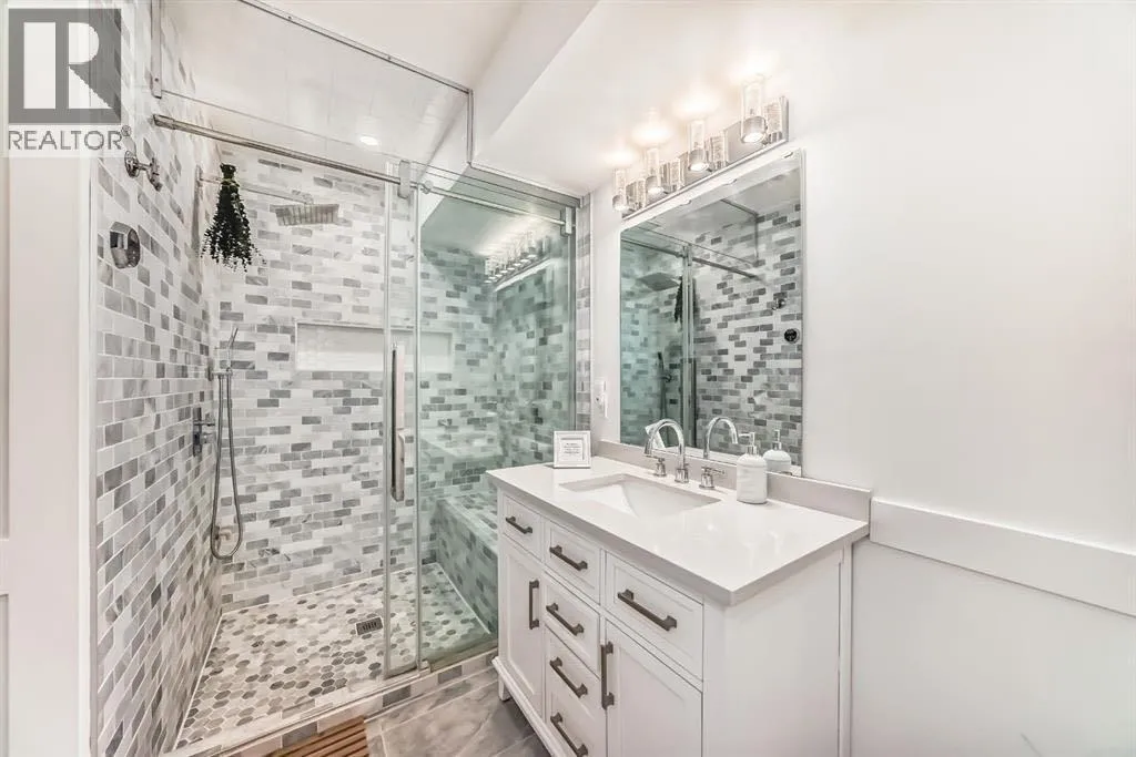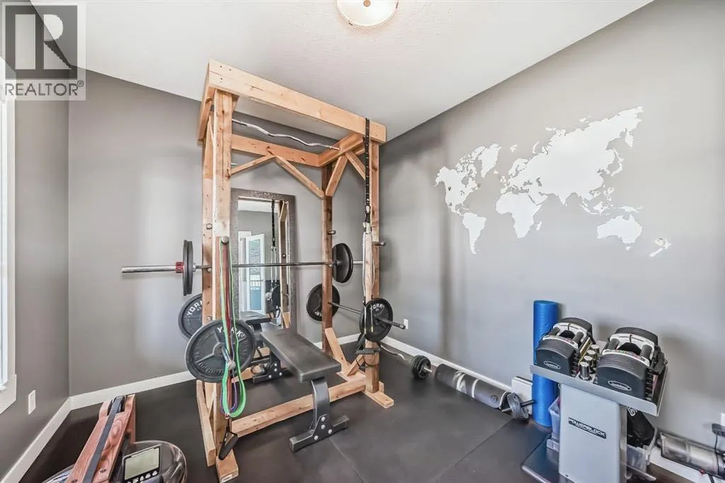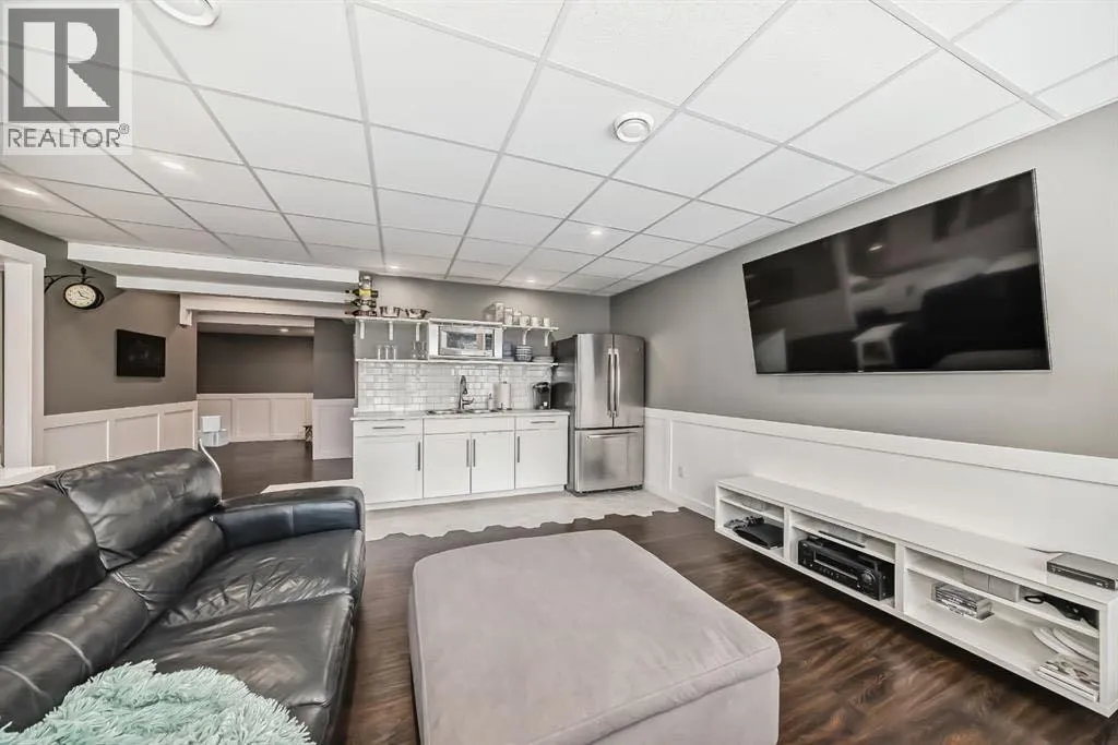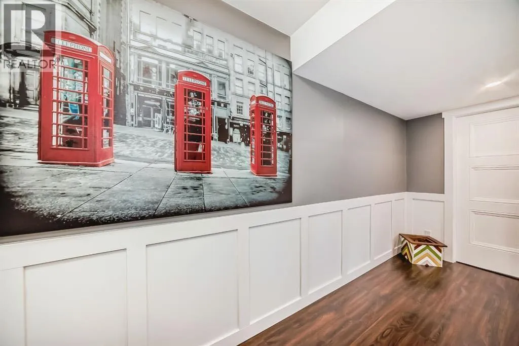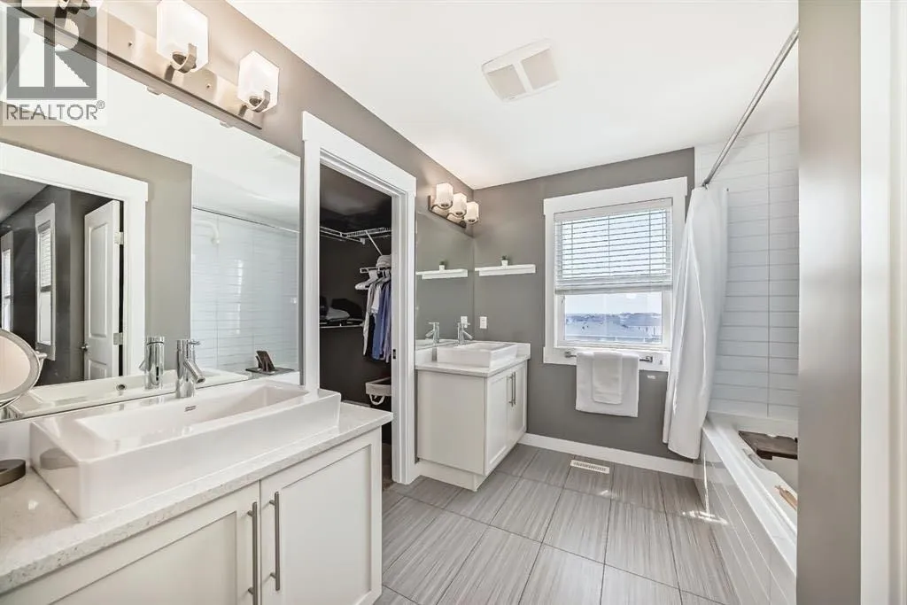 Stunning Duplex in Chestermereâs Rainbow Falls Welcome to a world of elegance and modern luxury in this breathtaking duplex, nestled in the heart of Chestermereâs coveted Rainbow Falls within the vibrant Lake Community. Meticulously crafted, this showhome-worthy residence dazzles with thoughtful upgrades and a fresh, inviting aesthetic. Exterior & Curb Appeal Charming Front Patio: Full-length patio overlooks a lush green belt, offering a warm welcome. Landscaped Backyard: Low-maintenance design with ample lounging areas for relaxation. Extended Back Deck: Complete with privacy fencing, perfect for outdoor entertaining. Oversized Double Garage: Insulated with extra-high doors, ideal for larger vehicles like trucks. Main Level Inviting Foyer: Features custom-built bench seating and intricate woodworking. Gleaming Hardwood Floors: Flow throughout, leading to a versatile flex room (office, bedroom, or more). Gourmet Kitchen: Ceiling-height white cabinetry Walk-in pantry Upgraded stainless steel appliances & gas range Expansive quartz island for prep and gatherings Sunlit Living & Dining Areas: South-facing for natural light, with a sleek gas fireplace and elegant mantel. Upper Level Primary Suite: Expansive with coffered ceilings Spa-like ensuite with dual vanities Walk-in closet with locking door for valuables Additional Bedrooms: Two generously sized rooms for flexibility (id:27476)