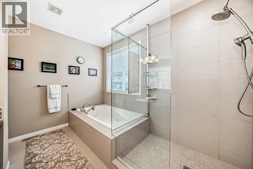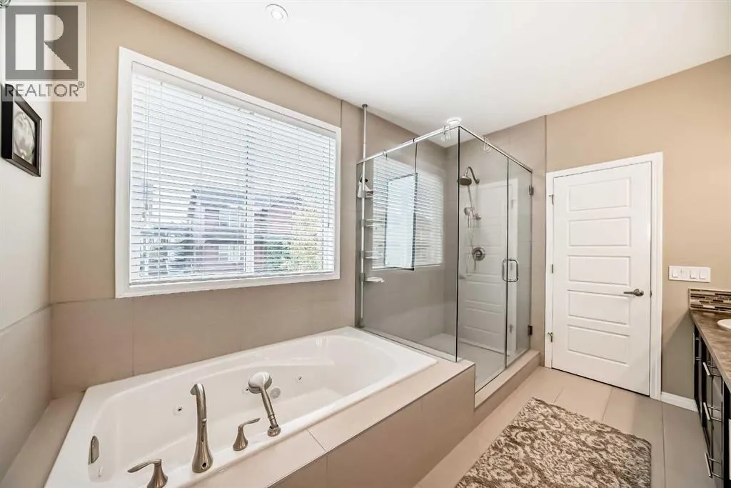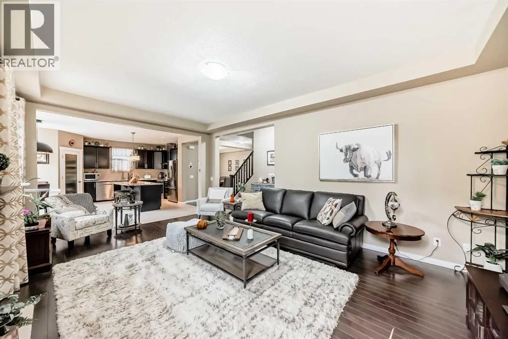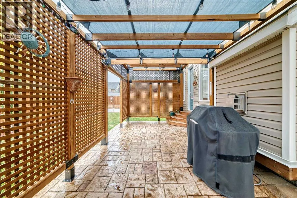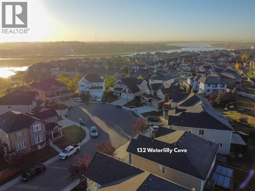 Welcome home to 132 Waterlily Cove - a farmhouse-style oasis built by award-winning Mattamy Homes, where warm family memories await. Nestled on a quiet cul-de-sac in Lakepointe, this home offers more than 2,800 sq ft above grade, head-turning curb appeal with its huge verandah, and an oversized double attached garage. Step through the foyer and you're greeted by a vaulted ceiling, welcoming you inside. Gorgeous maple hardwood and ceramic tile stretch throughout the main floor, complemented by 9ft ceilings youâll find on both levels. Need to work from home? Thereâs a private home office behind frosted double French doors. Want to host dinner parties? A formal dining room with a tray ceiling sets the mood. The heart of the house is the modern kitchen - espresso shaker maple cabinets, marbled granite counters, stainless steel appliances (including induction stove & hood fan), a huge corner pantry, and a big island with extra storage. The adjacent breakfast nook is bright, framed by 6ft windows that bring the outdoors in. Enjoy cozy evenings in the family room, anchored by a ceramic-tiled gas fireplace with a rich dark maple mantle. In summer, the stamped concrete patio with custom pergola beckons for family BBQs or lazy afternoons. Beyond, the yard is beautifully landscaped and well-maintained. Upstairs, youâll find a massive bonus room - great for movie nights or a kidsâ hangout. The primary suite is a retreat, large enough for a king bed, with two walk-in closets! The ensuite includes a soaker tub, glass-encased shower, and a 7ft dual vanity. Two additional generous bedrooms and another full bathroom with double sinks ensure everyone has space. Laundry is also upstairs, with extra storage, and the recently added A/C keeps things comfy year-round. The unfinished basement is a blank canvas waiting for your ideas - there's space to add another bedroom, rec room, and even a full bathroom. Location is everything. In Lakepointe, you get walking trails, parks, green space, and proximity to Chestermere Lake for boating, paddleboarding, and fishing - plus easy access to shopping, schools, and highways. If youâre looking for a family home that blends style, comfort, and a community outside of the big city - this is it! (id:27476)