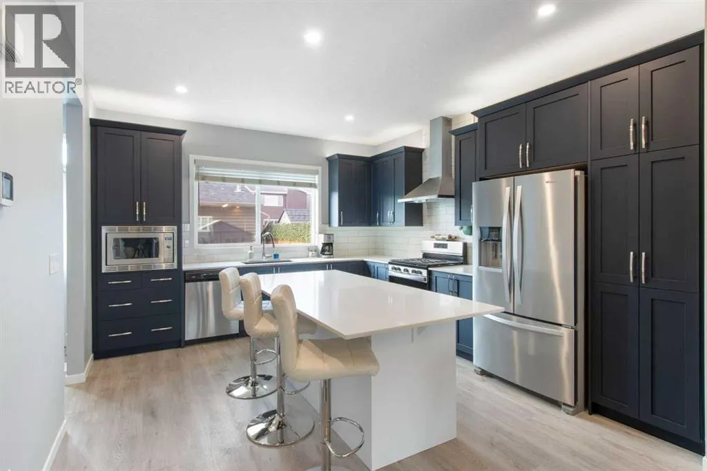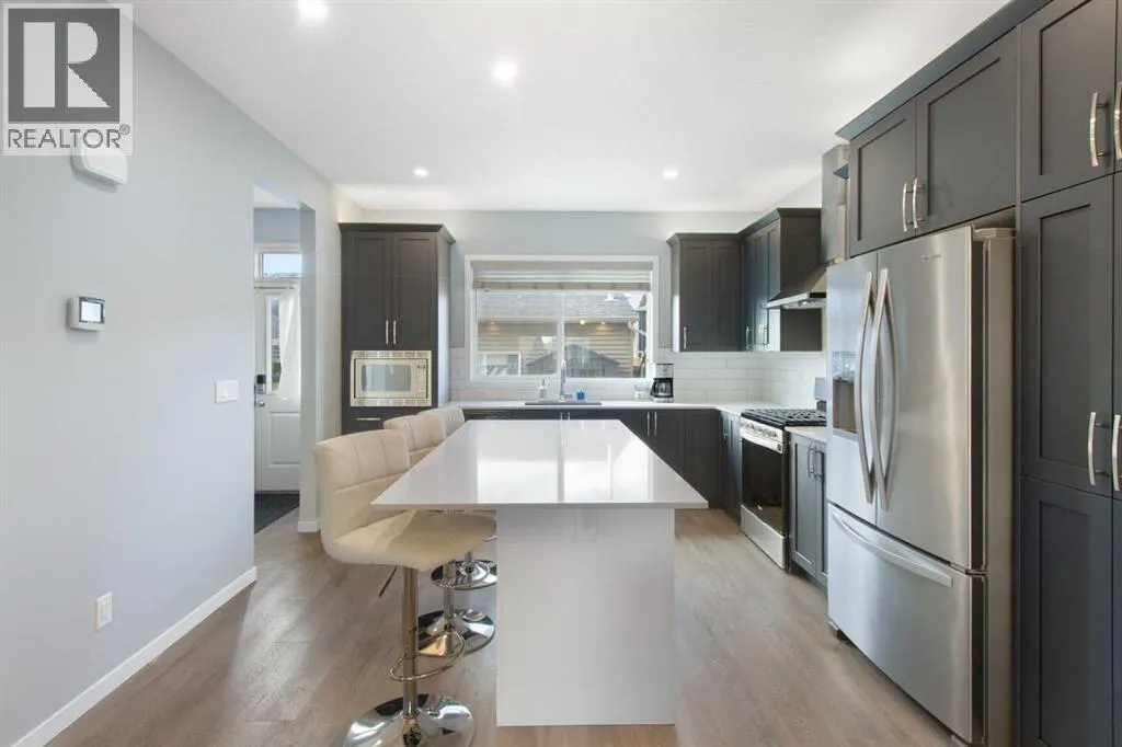This immaculate one-owner semi-detached home, built in 2021, perfectly blends modern design, thoughtful upgrades, and everyday comfort. Step inside to a bright, open-concept main floor featuring a chef-inspired kitchen with gas range, extended 8â island, over-cabinet lighting, and a custom pantry built beside the fridge â ideal for organization and extra storage. The spacious living and dining areas flow seamlessly together, perfect for family dinners or entertaining friends.Upstairs, youâll find three generous bedrooms, including a stylish primary suite complete with walk-in closet and private ensuite with a separate bathtub and shower. The full unfinished basement is ready for your ideas â complete with a bathroom rough-in, offering the perfect opportunity to create a future rec room, gym, or guest suite.Step into the fully fenced backyard, leading to an oversized double garage thatâs every homeownerâs dream â 22x20 with an 8â door, 60-amp service, upgraded panel, fully insulated and drywalled, plus a gas line and heater. And because comfort matters year-round, this home also comes with central air conditioning. Located in the growing, family-friendly community of Dawsonâs Landing, close to parks, schools, and walking paths, this property delivers both lifestyle and value. Move-in ready, lovingly maintained, and packed with upgrades â welcome home! (id:27476)