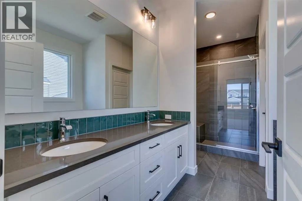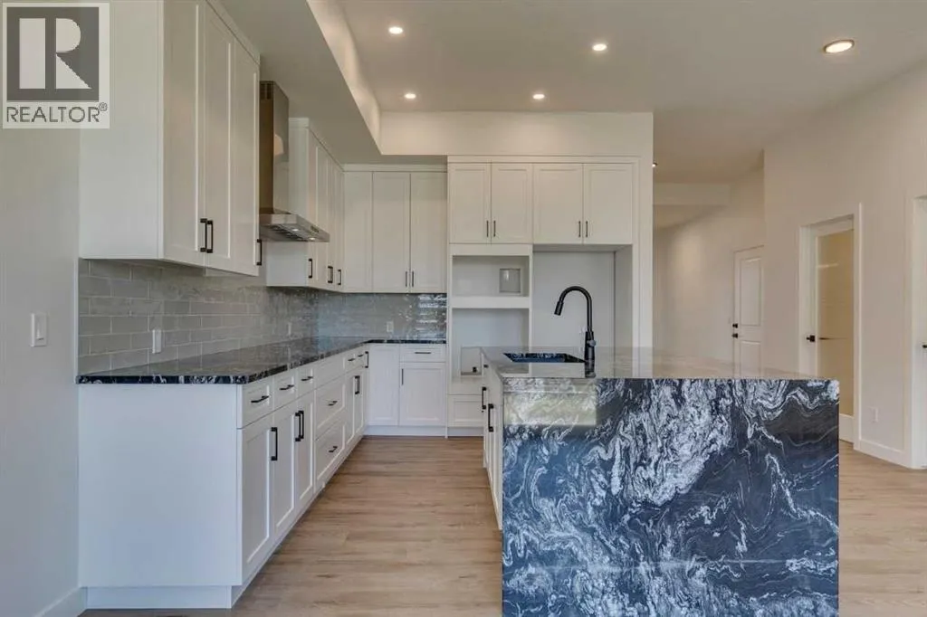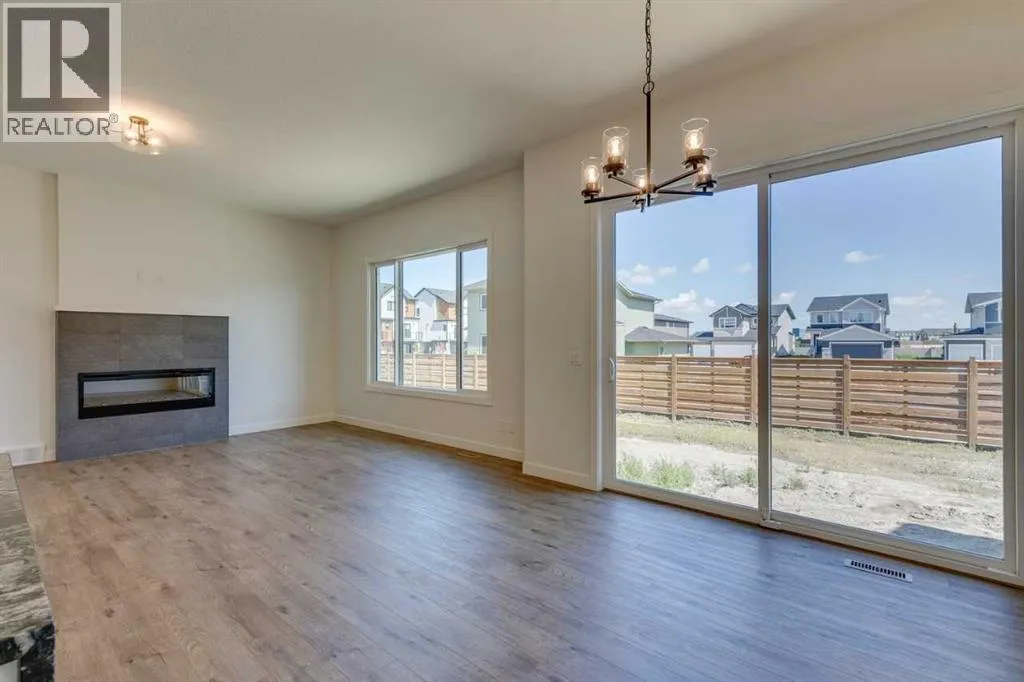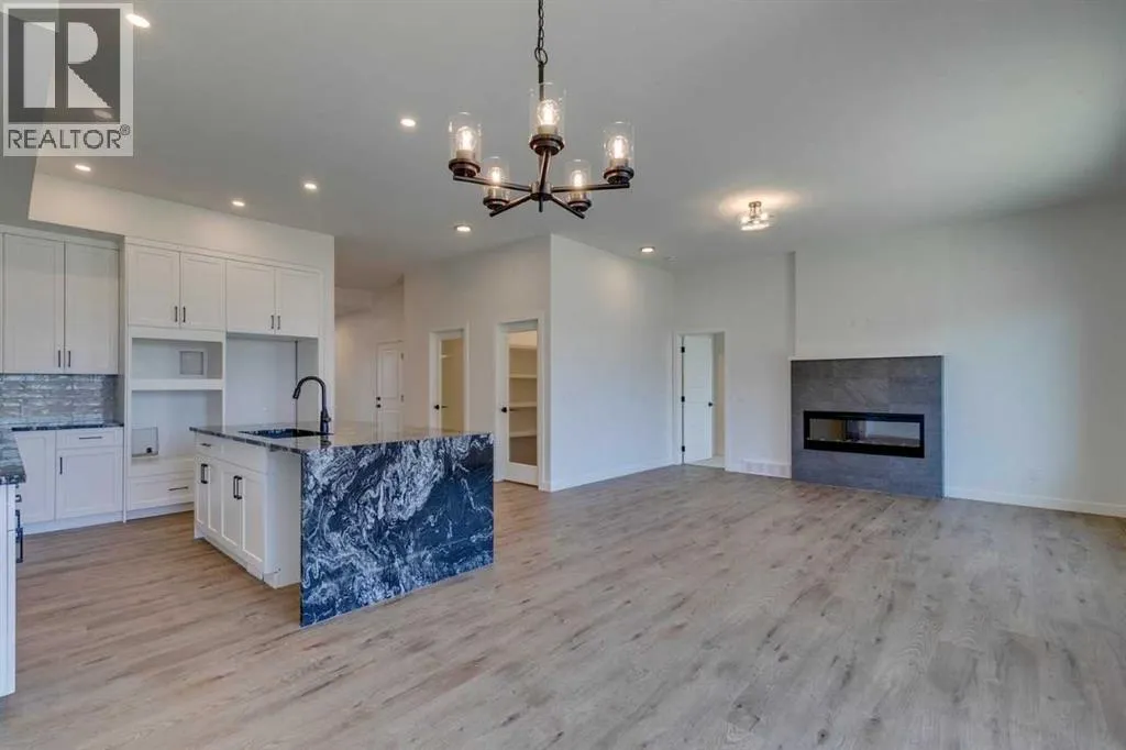 Modern Elegance Meets Everyday Comfort in The William. This beautifully designed bungalow offers comfort and elegance with aside entrance, developed basement featuring 2 bedrooms and a spacious rec area, and a main floor flex room with French doors perfect for a home office or den. The executive kitchen showcases built-in stainless steel appliances, a gas cooktop, waterfall island edge, and a walk-in pantry. Enjoy the bright, open layout with many windows, an electric fireplace in the great room, and tile flooring in all wet areas. The 5-piece ensuite is a true retreat with a tiled shower and relaxing soaker tub. Stainless Steel Washer and Dryer and Open Roller Blinds provided by Sterling Homes Calgary at no extra cost! $2,500 landscaping credit is also provided by Sterling Homes Calgary. Photos are representative. (id:27476)