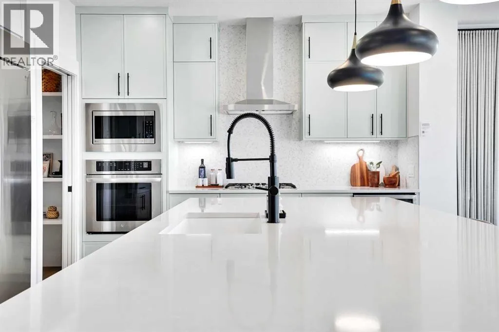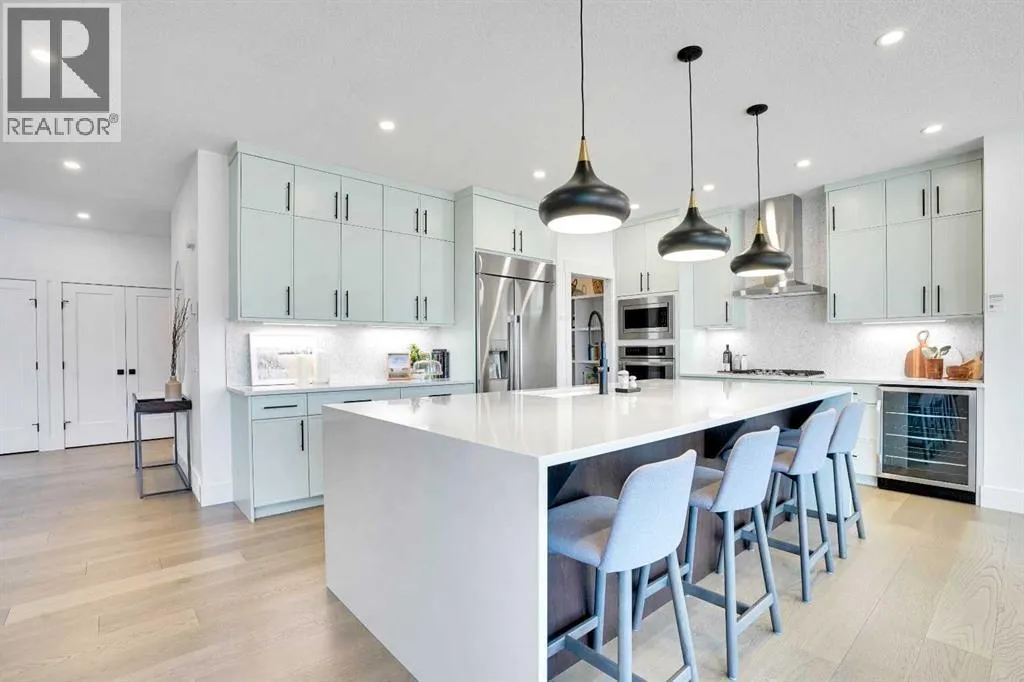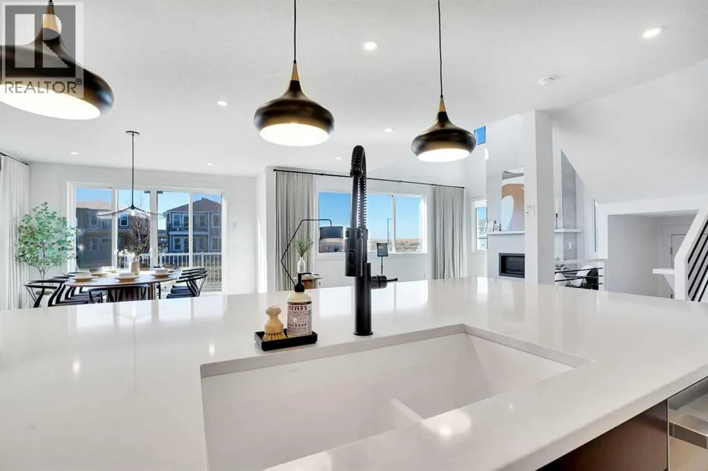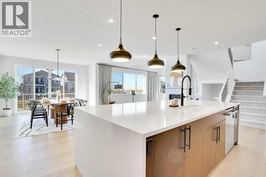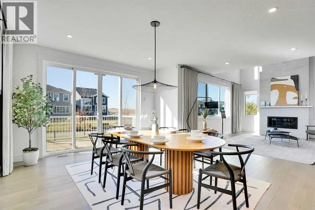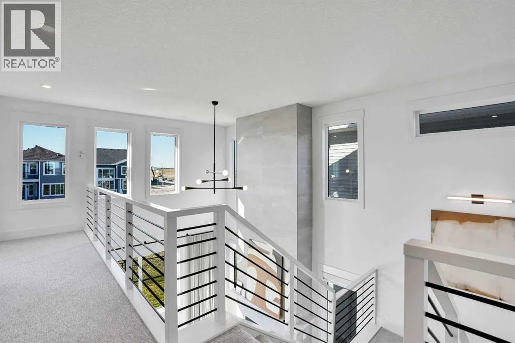 As you step inside, the main floor greets you with engineered hardwood flooring that flows seamlessly throughout the open-concept layout. The heart of the home features a gourmet kitchen with a striking waterfall island, high-end finishes, and a gas cooktop. Complementing it is a convenient spice kitchen, perfect for additional meal preparation. The spacious great room is enhanced by a gas fireplace, creating a warm ambiance for family gatherings, while an elegant open-to-below design adds to the grandeur. A bright office on the main floor offers the perfect workspace for todayâs lifestyle.? Upstairs, youâll find ?4 beautifully appointed bedrooms with built-in closets?, a laundry room and thoughtfully designed spaces for the entire family. The primary suite is a true retreat, featuring a full-tile shower, a stand-alone soaking tub, and premium finishes throughout. ?Another second prime bedroom has 4pc ensuite and a closet. The other 2 bedrooms share another 4pc bathroom. A huge center bonus room is the heart of the property. Railing details extend across the upper level, adding to the homeâs modern appeal and open feel.? The fully developed basement expands your living space with a well-equipped wet bar complete with a sink, dishwasher, and beverage mini-fridge â ideal for entertaining. The lower level also features a steam shower, additional bedrooms, and a private side entry, offering flexibility for extended family or guests.? Enjoy comfort year-round with air conditioning, and take advantage of outdoor living on the rear deck overlooking the landscaped backyard. This home comes fully landscaped and ready for immediate enjoyment, with possession available in 30 to 60 days.? Offered at ?this attractive price this exceptional show home truly blends craftsmanship, functionality, and luxury in one perfect package. (id:27476)