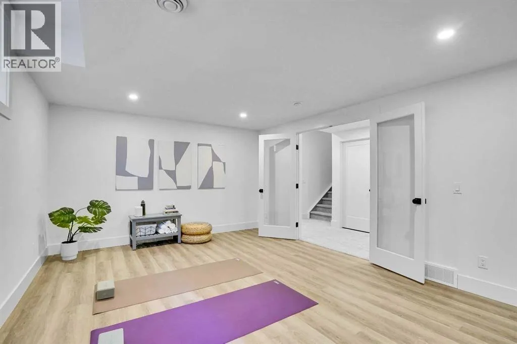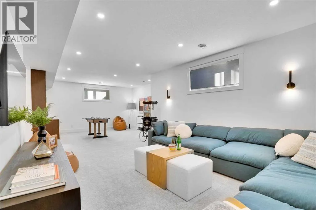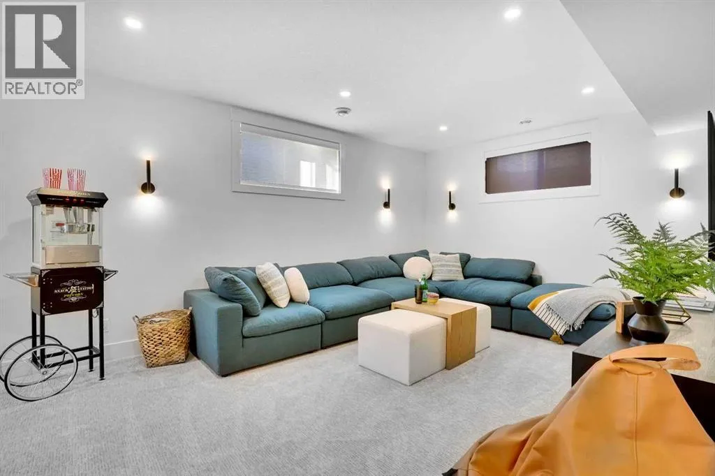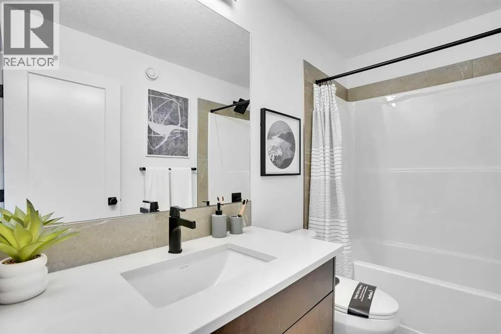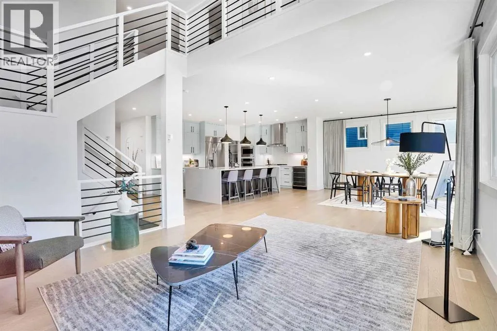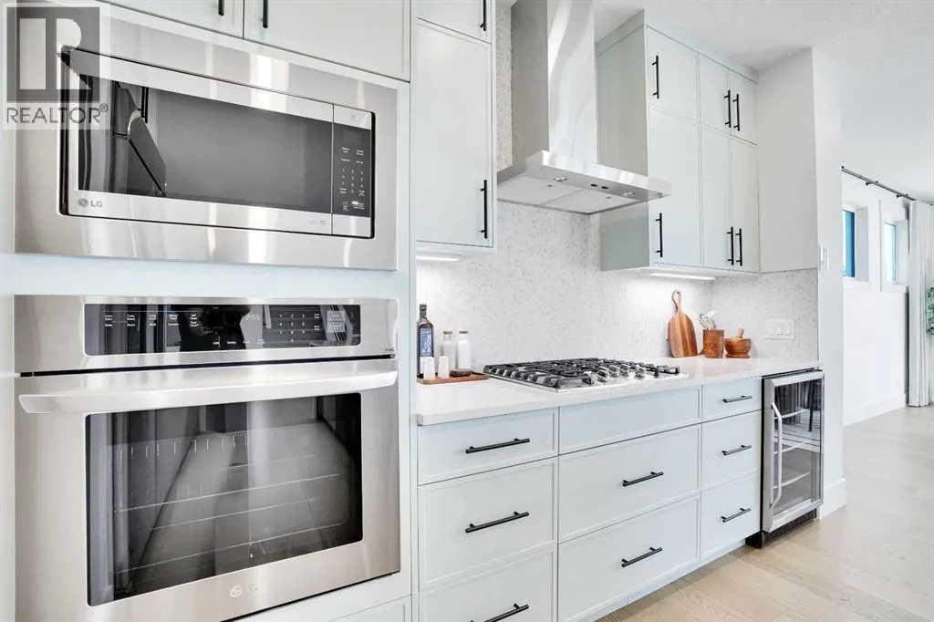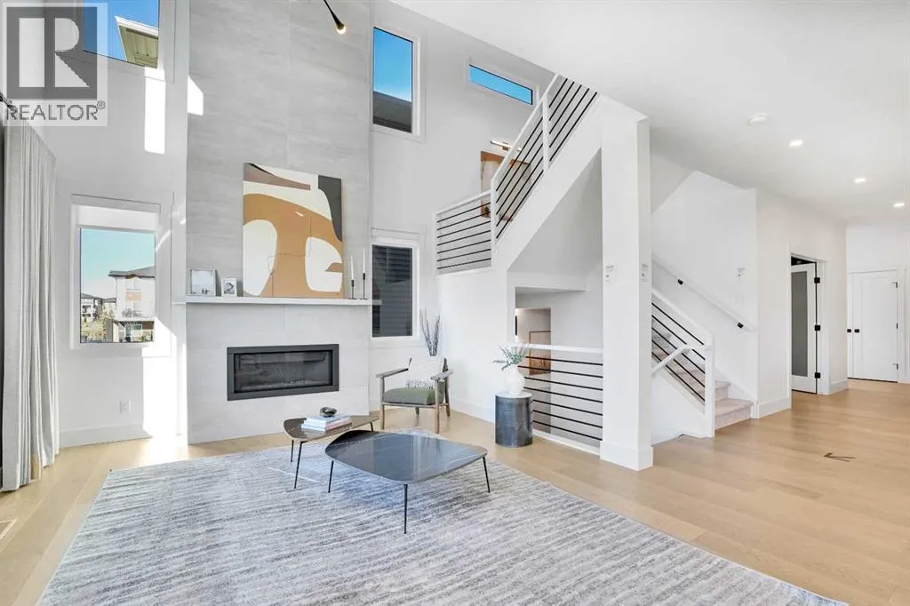 As you step inside, the main floor greets you with engineered hardwood flooring that flows seamlessly throughout the open-concept layout. The heart of the home features a gourmet kitchen with a striking waterfall island, high-end finishes, and a gas cooktop. Complementing it is a convenient spice kitchen, perfect for additional meal preparation. The spacious great room is enhanced by a gas fireplace, creating a warm ambiance for family gatherings, while an elegant open-to-below design adds to the grandeur. A bright office on the main floor offers the perfect workspace for todayâs lifestyle.? Upstairs, youâll find ?4 beautifully appointed bedrooms with built-in closets?, a laundry room and thoughtfully designed spaces for the entire family. The primary suite is a true retreat, featuring a full-tile shower, a stand-alone soaking tub, and premium finishes throughout. ?Another second prime bedroom has 4pc ensuite and a closet. The other 2 bedrooms share another 4pc bathroom. A huge center bonus room is the heart of the property. Railing details extend across the upper level, adding to the homeâs modern appeal and open feel.? The fully developed basement expands your living space with a well-equipped wet bar complete with a sink, dishwasher, and beverage mini-fridge â ideal for entertaining. The lower level also features a steam shower, additional bedrooms, and a private side entry, offering flexibility for extended family or guests.? Enjoy comfort year-round with air conditioning, and take advantage of outdoor living on the rear deck overlooking the landscaped backyard. This home comes fully landscaped and ready for immediate enjoyment, with possession available in 30 to 60 days.? Offered at ?this attractive price this exceptional show home truly blends craftsmanship, functionality, and luxury in one perfect package. (id:27476)