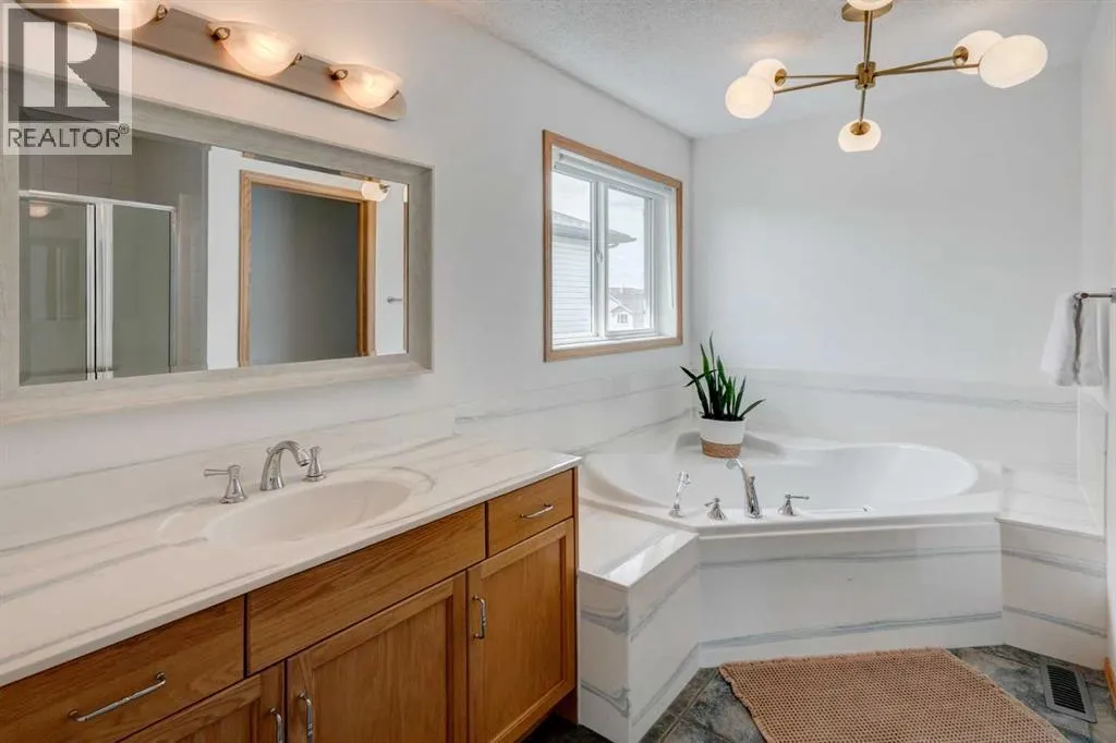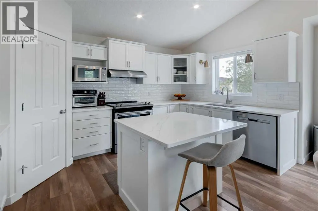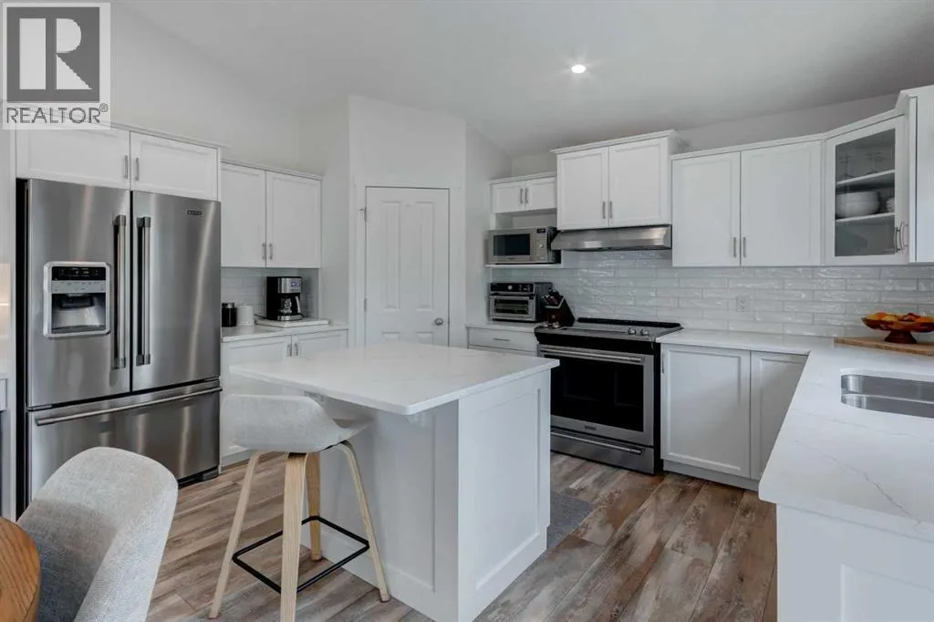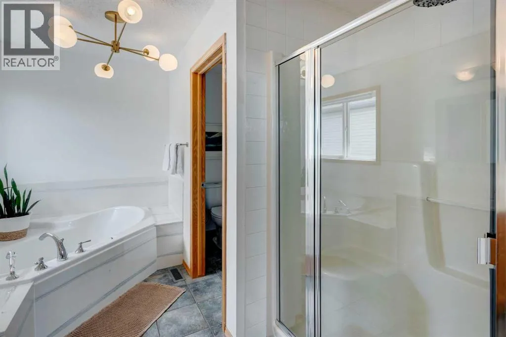 Pride of Ownership at Its Finest! Welcome to this stunning custom home (3 bedrooms and 3 bathrooms) offering over 2800 total square footage of beautifully developed living space, including a fully finished basement. Thoughtfully designed for comfort, style, and functionality, this home has been meticulously maintained and extensively updated with premium features throughout. The spacious entryway leads to a convenient laundry room and access to the double attached garage. Just a few steps up, the main living area is flooded with natural light thanks to vaulted ceilings & oversized windows. A striking 2-sided fireplace adds warmth and character to the open-concept layout. The updated kitchen boasts generous cabinetry, abundant counter space, and stainless steel appliances and fixtures. From the dining area, step out onto the large deckâideal for outdoor entertaining or quiet relaxation. This level also includes a generously sized bedroom and a 4-piece bathroom. Upstairs, you'll find the luxurious large primary bedroom featuring a huge walk-in closet and a spa-inspired 4 pc ensuite with a corner tub and walk-in shower. The basement is fully finished with large windows, offering a bright and comfortable living area year-round. It includes a large recreation room, bedroom and a 4-piece bathroom. Step outside to a serene, fully fenced backyard featuring a deck, dog run. The location is quiet & backing onto a green space/walking path. Notable upgrades include: Shingles (2017), Hot Water Tank (2021), Updated Kitchen, Paint, Countertops, Appliances, Light fixtures (2023) Additional features: Central air conditioning, central vacuum system and Sump Pump. Close to Shopping, Restaurants, Local Schools and a quick exit to 17th Avenue. Donât miss your chance to own this exceptional home that perfectly combines comfort, style, and practicality. Book your showing todayâand be sure to explore the virtual tour! (id:27476)