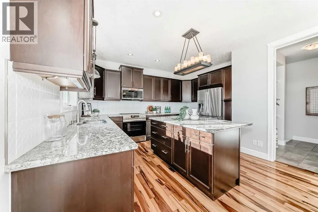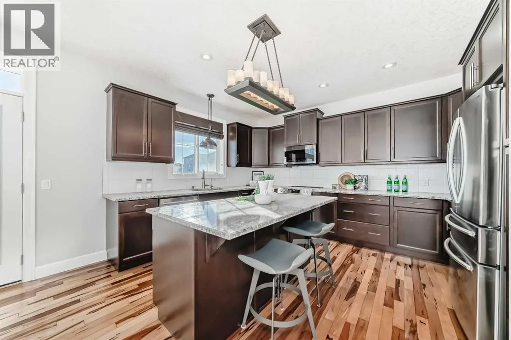 Over $80,000 Lower Than City Assessment! This fully finished 2-storey walkout home in the desirable Lakepointe community offers breathtaking south-facing views of the lake, pond, and natural reserve, with direct access to walking paths and parks. Inside, the main floor boasts 9' ceilings, rich hardwood floors, a versatile flex room, and an open-concept living space with a cozy gas fireplace. The chef-inspired kitchen features granite countertops, stainless steel appliances, soft-close cabinets, a large island, and a walk-in pantry. French doors lead to an oversized deck with a gas hookupâperfect for outdoor entertaining. Upstairs, enjoy a spacious bonus room, two generous bedrooms, and a luxurious primary suite with lake views, dual closets, and a spa-like 5-piece ensuite. The walkout basement offers even more living space with a family room, stacked-stone fireplace, full bath, and room for future development. Additional features include A/C, reverse osmosis water system, central vacuum, and water softener. With its blend of comfort, style, prime location and unbeatable price, this home is the perfect fit for modern family living exceptional value. (id:27476)