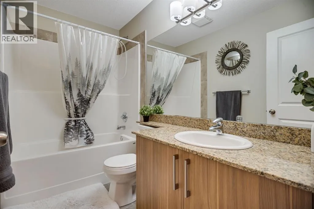 This charming end-unit townhome offers the perfect blend of comfort, style, and functionality in an ideal location, just steps from the off-leash dog park. Featuring three spacious bedrooms, a private fenced backyard, and a single attached garage, itâs an ideal choice for families, first-time buyers, or anyone seeking effortless living near the lake. Designed for modern living, this beautiful home features three spacious bedrooms upstairs with brand new carpet and a functional layout. Located in a pet-friendly complex, and the ease of low-maintenance living with snow removal and lawn care included.Inside, a warm and inviting atmosphere welcomes you. The open-concept main floor seamlessly connects the living, dining, and kitchen areas, perfect for both relaxing and entertaining. The kitchen features granite countertops, stainless steel appliances, and timeless neutral finishes that create a cohesive, elegant aesthetic. Step out to your private, fenced backyard that is ideal for pets, children, or simply enjoying a private outdoor retreat.Upstairs, the primary suite is a true haven with a walk-in closet and private 3-piece ensuite, while two additional bedrooms, a full 4-piece bathroom, and convenient upper-level laundry complete the space. The lower level offers excellent flexibility, ideal for a play area, home gym, or cozy recreation room, with plenty of extra storage.This thoughtfully maintained home is a wonderful fit for first-time buyers, downsizers, or investors alike. Enjoy the unbeatable convenience of nearby shopping, restaurants, fitness facilities, the library, and the beautiful Chestermere Lake, all just moments from your door.Experience the ease of low-maintenance living without compromise. Welcome HOME, you are going to love living in this vibrant, friendly community. Book your private showing today to experience all this home has to offer. (id:27476)