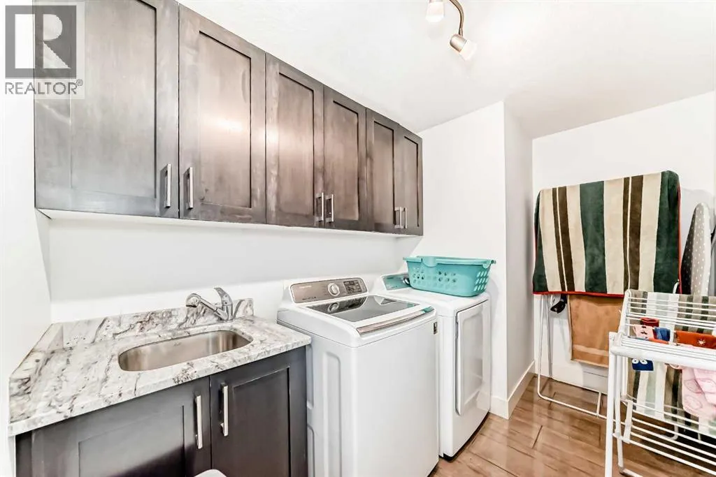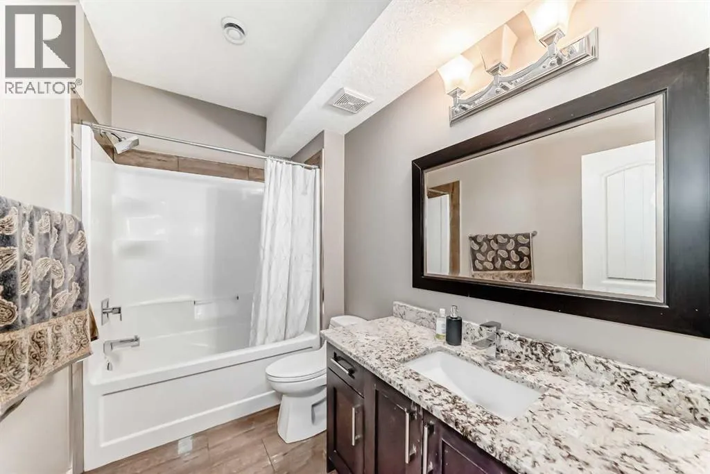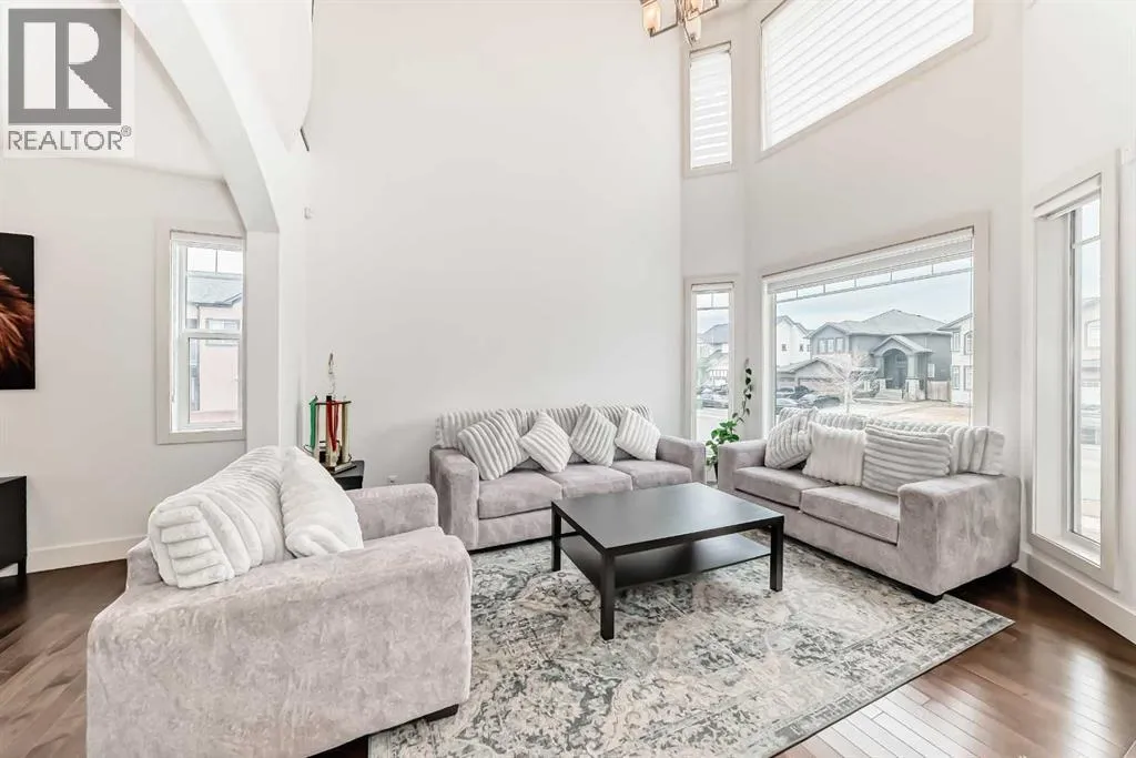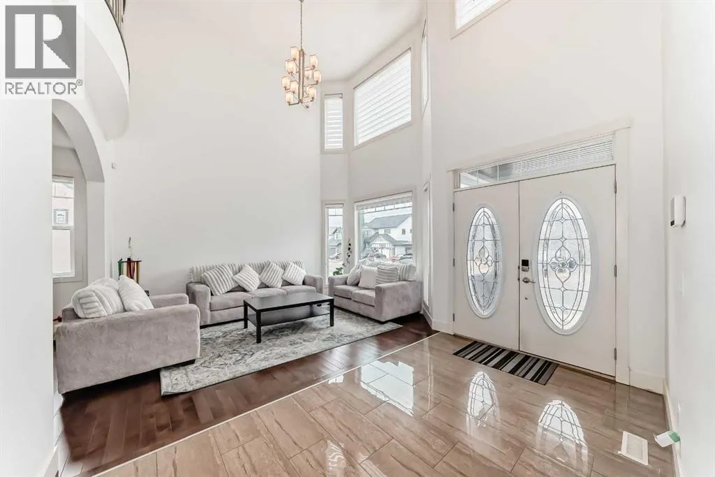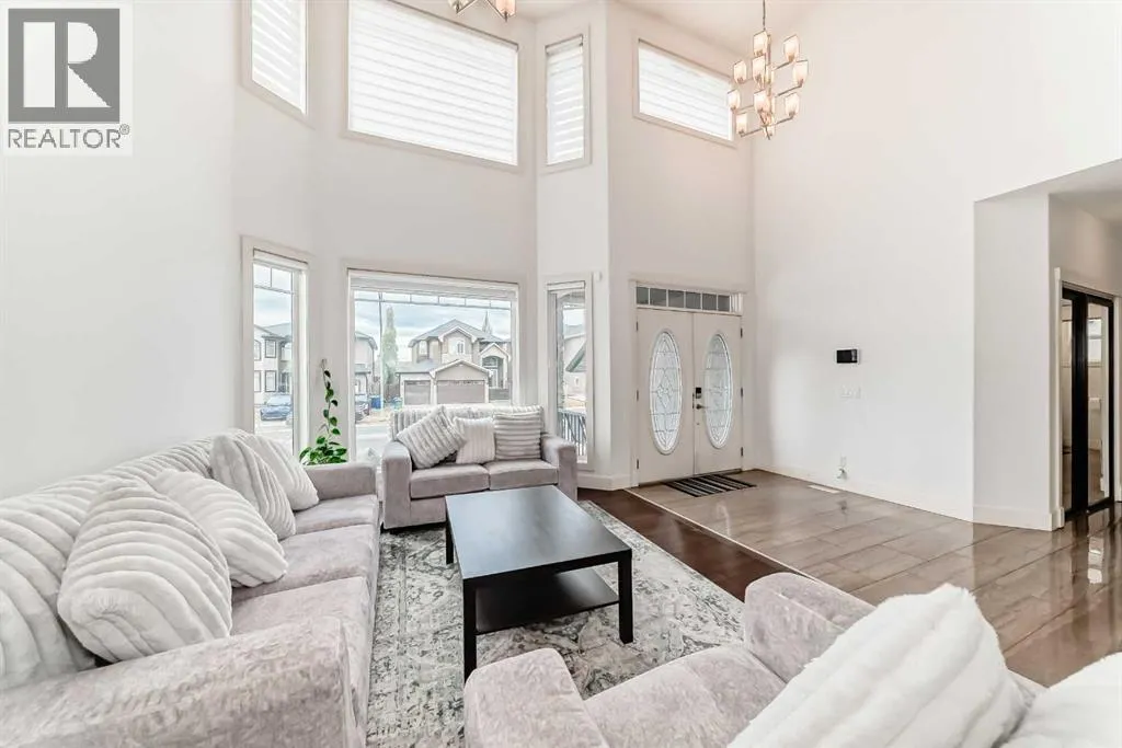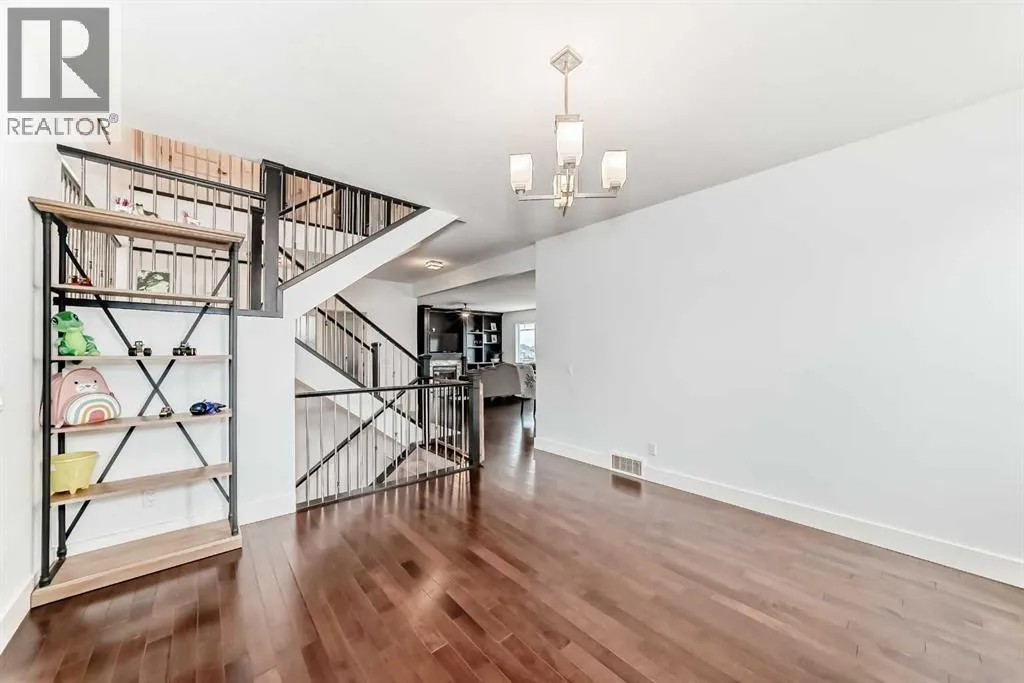 This is a wonderful opportunity to own a spacious home in the highly sought-after Kinniburgh community in Chestermere. With over 4,600+ sq ft of living space, a walkout basement, and a warm, inviting layout, this house is ready to become your family's haven. From the moment one steps through the foyer, the home reveals its character. An open, bright ambiance tempered by a gracious 9-foot ceiling and an open-concept layout that softly guides the eye toward generous windows, allowing abundant natural light to wash the interior. The main level elegantly balances reception spaces with everyday livability. A den offers a quiet retreat for study or work, while a half-bath serves guests with discreet practicality. The heart of the home lies in the expansive kitchen, where a substantial island anchors the space, storage is abundant, and quartz countertops gleam beneath a stylish backsplash and contemporary cabinetry. The living and dining areas flow seamlessly from the kitchen, forming an ideal stage for gatherings that feel effortless and intimate in equal measure.Ascending to the upper level, one discovers a sanctuary of repose. The master bedroom stands as a cavernous retreat, complete with a walk-in closet and a private four-piece ensuite, a haven designed for daily renewal. The level continues with 3 additional well-proportioned bedrooms, a full four-piece bathroom, and a bonus room that offers flexible space for relaxation.. A convenient laundry area completes this floor, aligning comfort with practicality.The journey continues downstairs, where the fully finished WALKOUT basement awaits. Here, two more bedrooms, a full kitchen and a full bathroom provide ample accommodation for guests or family members seeking privacy, while a separate side entrance enhances the suiteâs (ILLEGAL) versatility for multi-generational living or rental opportunities. (id:27476)