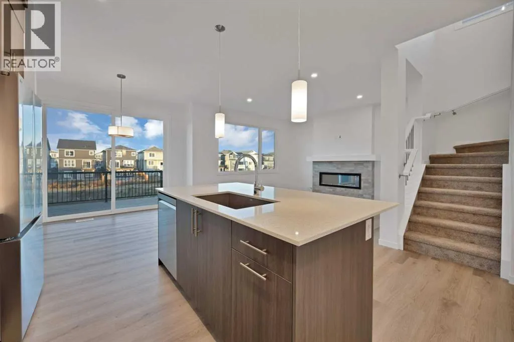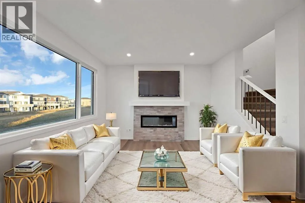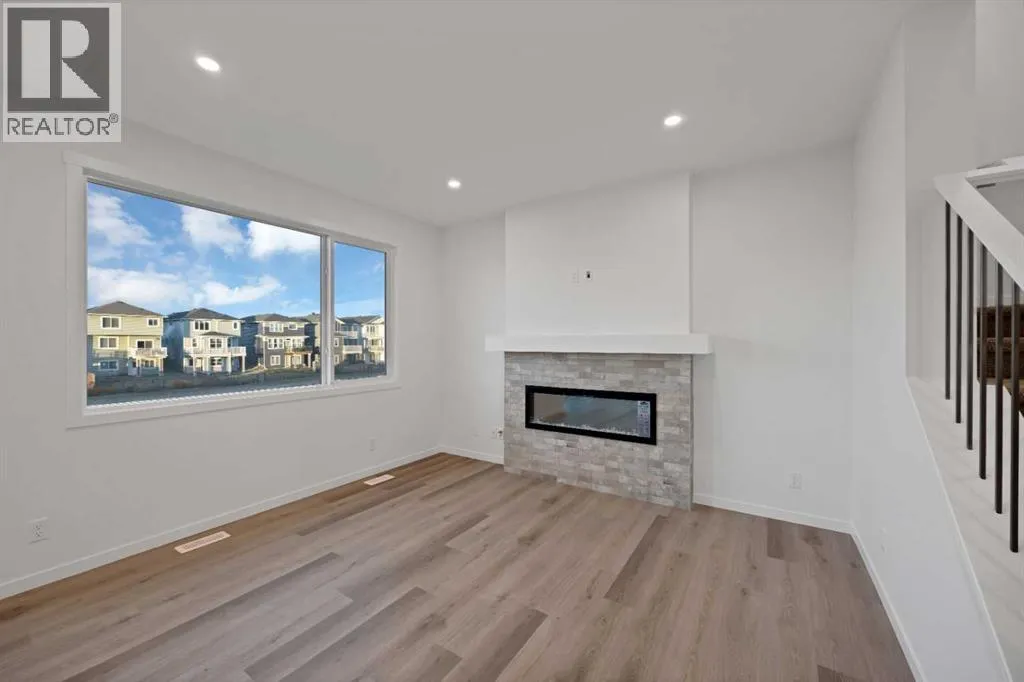 **Reduction for quick sale**Welcome home to this stunning walkout duplex that perfectly blends modern elegance with functional design. This brand-new construction offers 1,575 square feet of meticulously crafted living space with an attached double front garage, set on a generous 3,579 square foot walkout lot that backs onto a beautiful greenspace with a pond. The main floor welcomes you with a spacious living area featuring an elegant electric fireplace, while a walkthrough pantry connects the mudroom to the gourmet kitchen. Here, stainless steel appliances, including a gas stove and chimney hood fan, shine under recessed lighting. The open-concept layout seamlessly integrates the kitchen, great room, and dining area, where large windows fill the space with natural light and create an inviting atmosphere for both everyday living and entertaining. Upstairs, the primary bedroom serves as a private retreat, complete with a luxurious four-piece ensuite and a sprawling walk-in closet that provides ample storage for your wardrobe essentials. Enjoy serene views of the pond and green space, with no adjoining backyard to interrupt the scenery. Two additional spacious bedrooms offer large windows framing picturesque views of the surrounding landscape. A conveniently located laundry room, equipped with a front-load washer and dryer, adds both comfort and practicality to your daily routine. (id:27476)